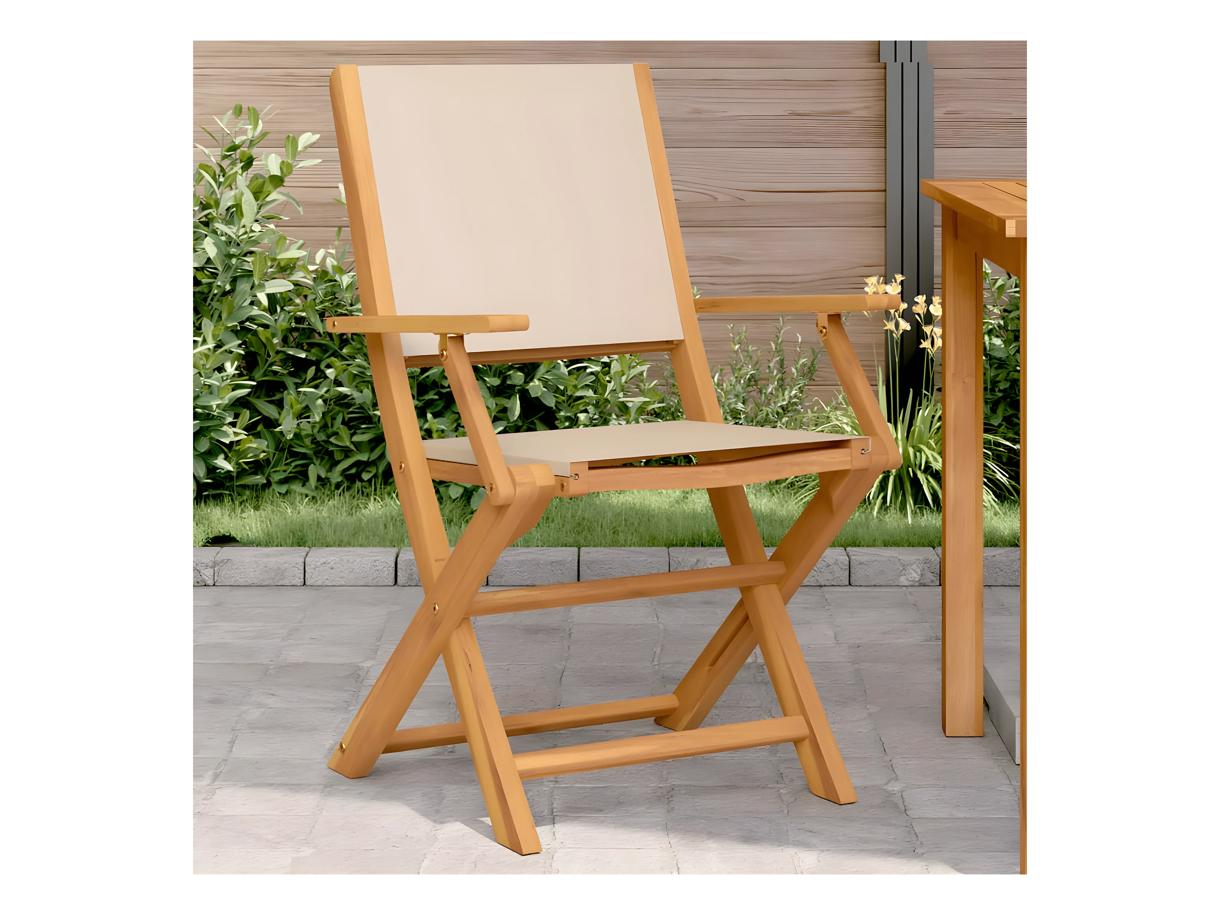 Lot de 2 Chaises de jardin beige bois d'acacia massif et tissu FR68618