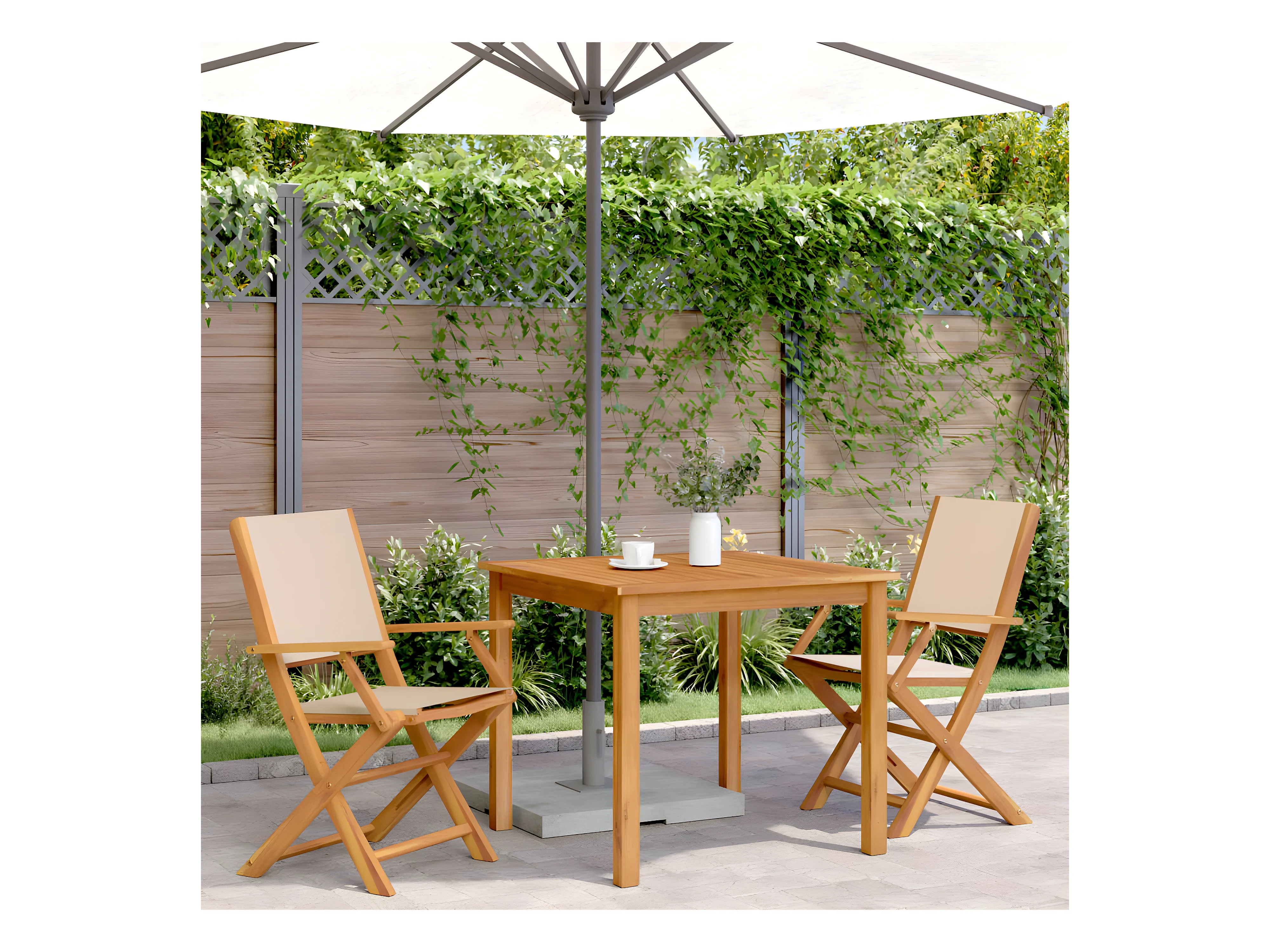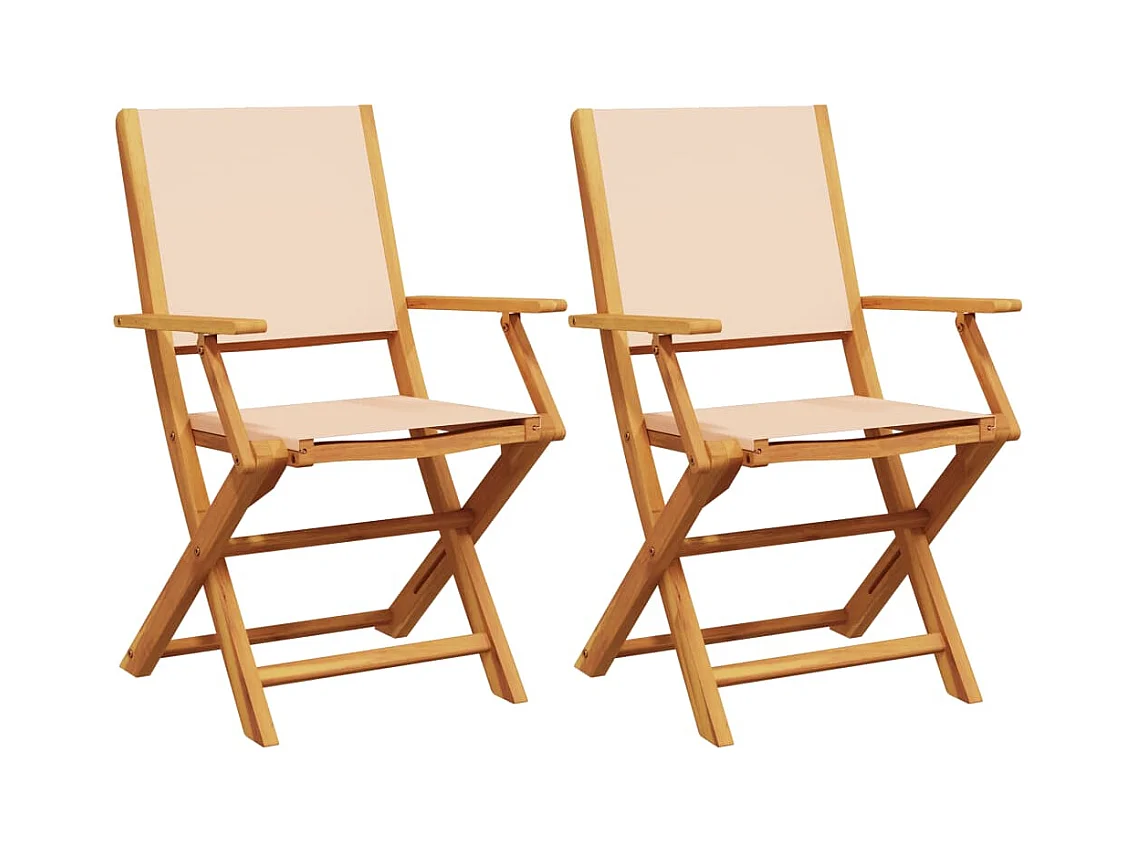 Lot de 2 Chaises de jardin beige bois d'acacia massif et tissu FR62282