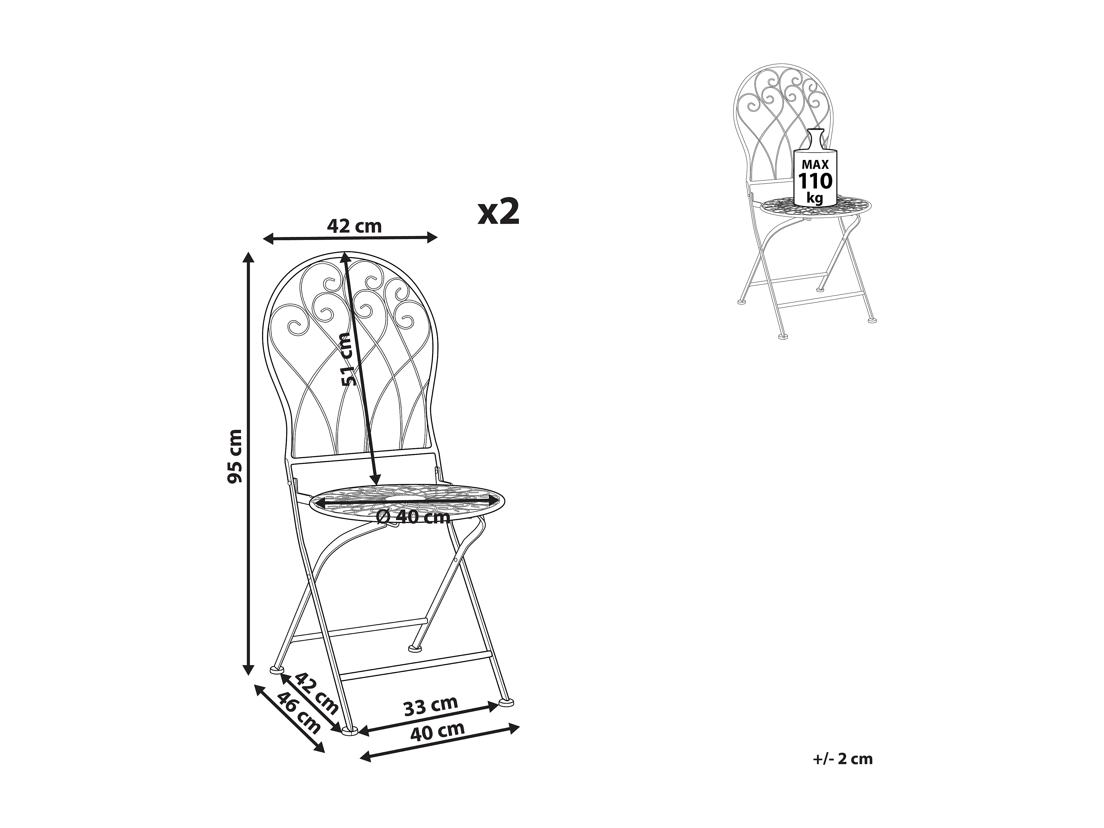Lot de 2 chaises de jardin BIVIO Pliant Métal Blanc cassé