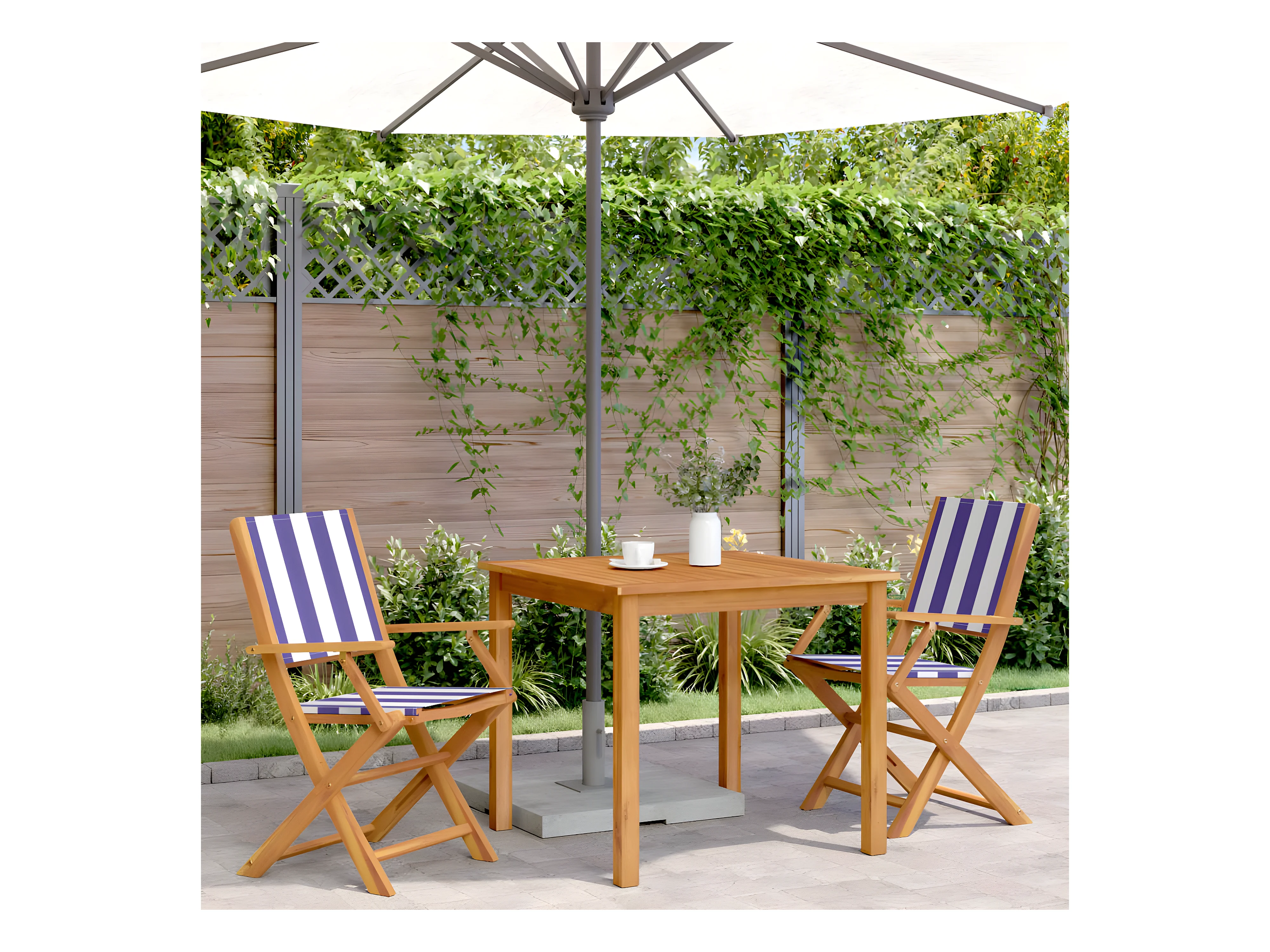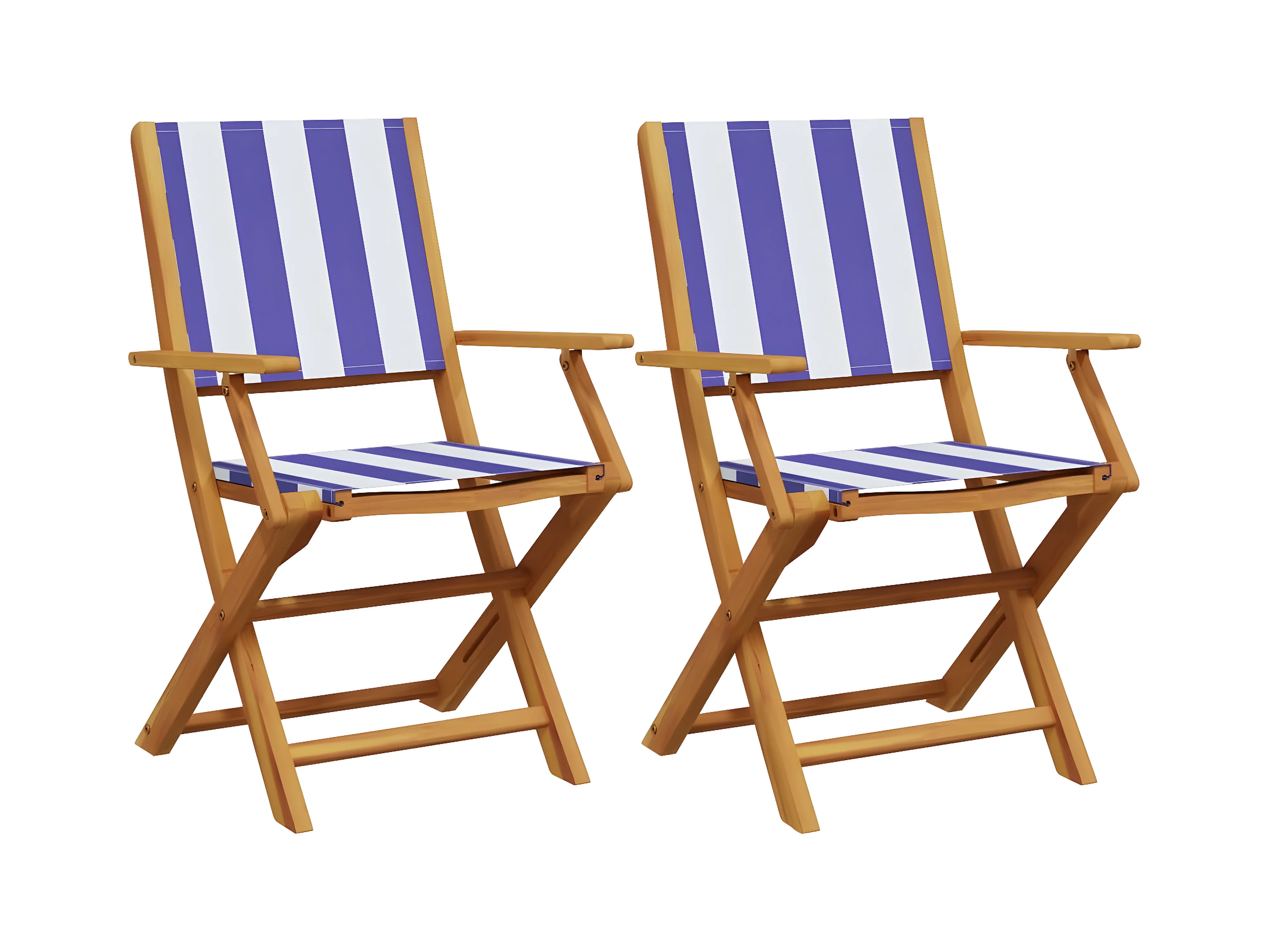 Lot de 2 Chaises de jardin bleu/blanc bois acacia massif tissu FR43778