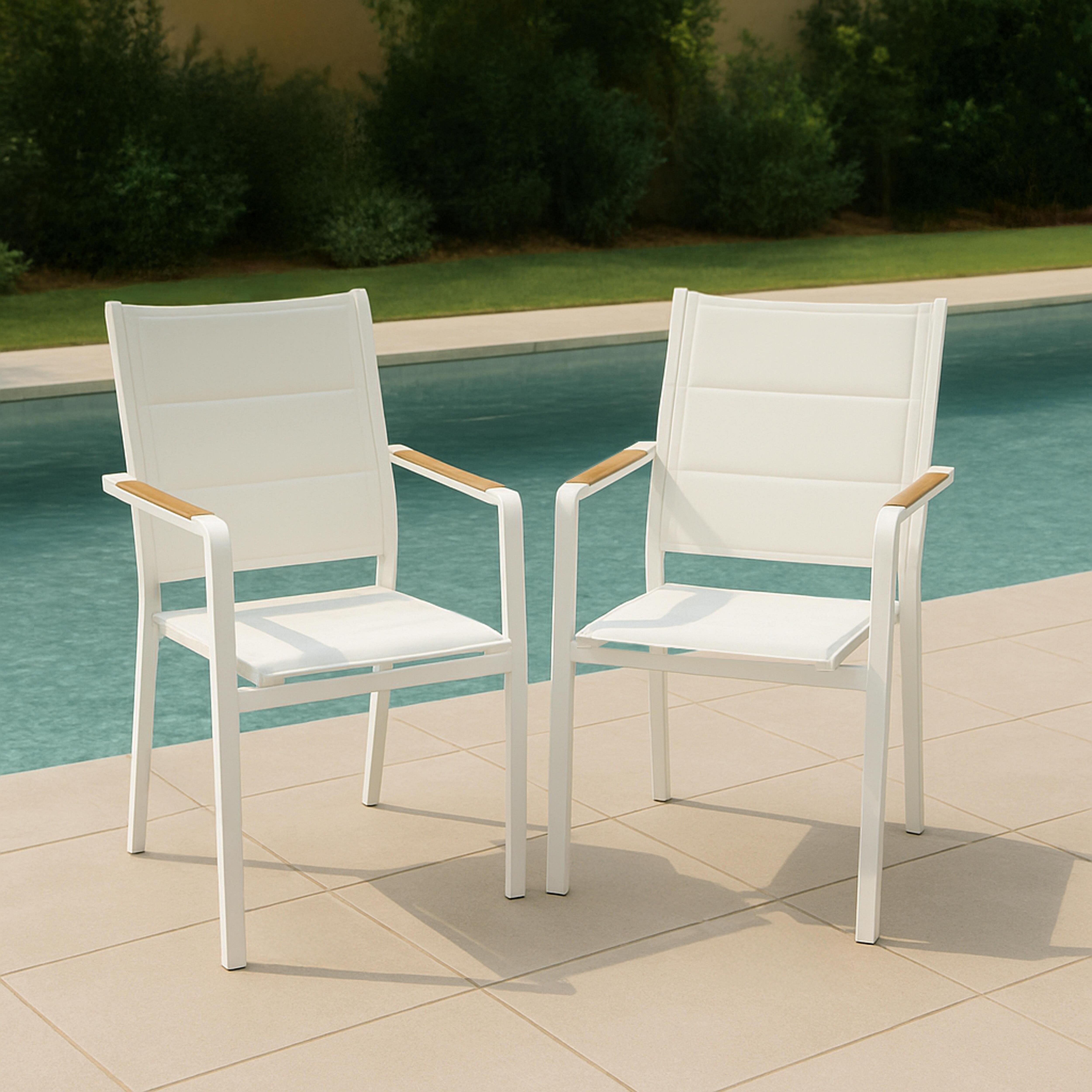 Lot de 2 chaises de jardin en aluminium et textilène blanc