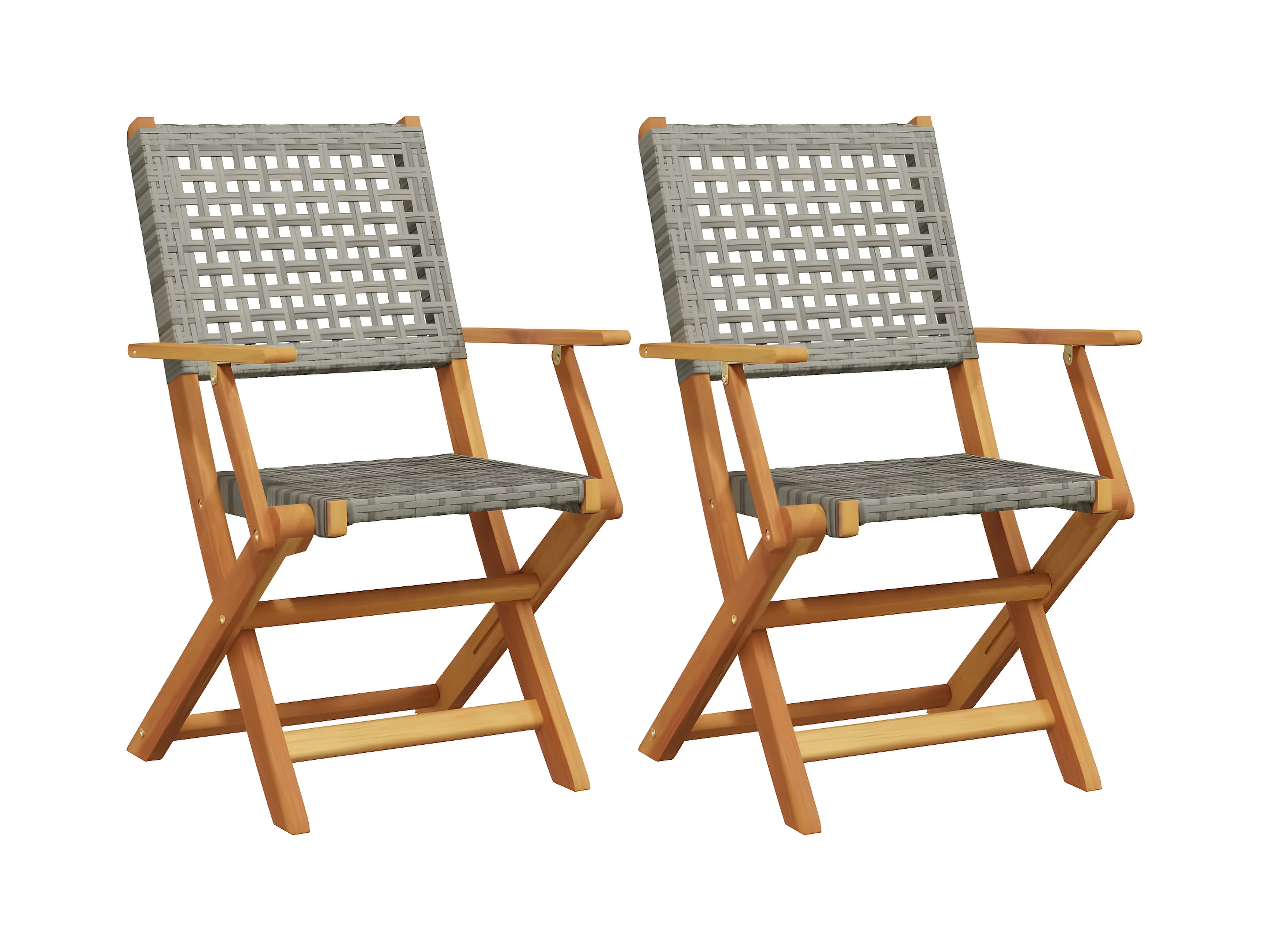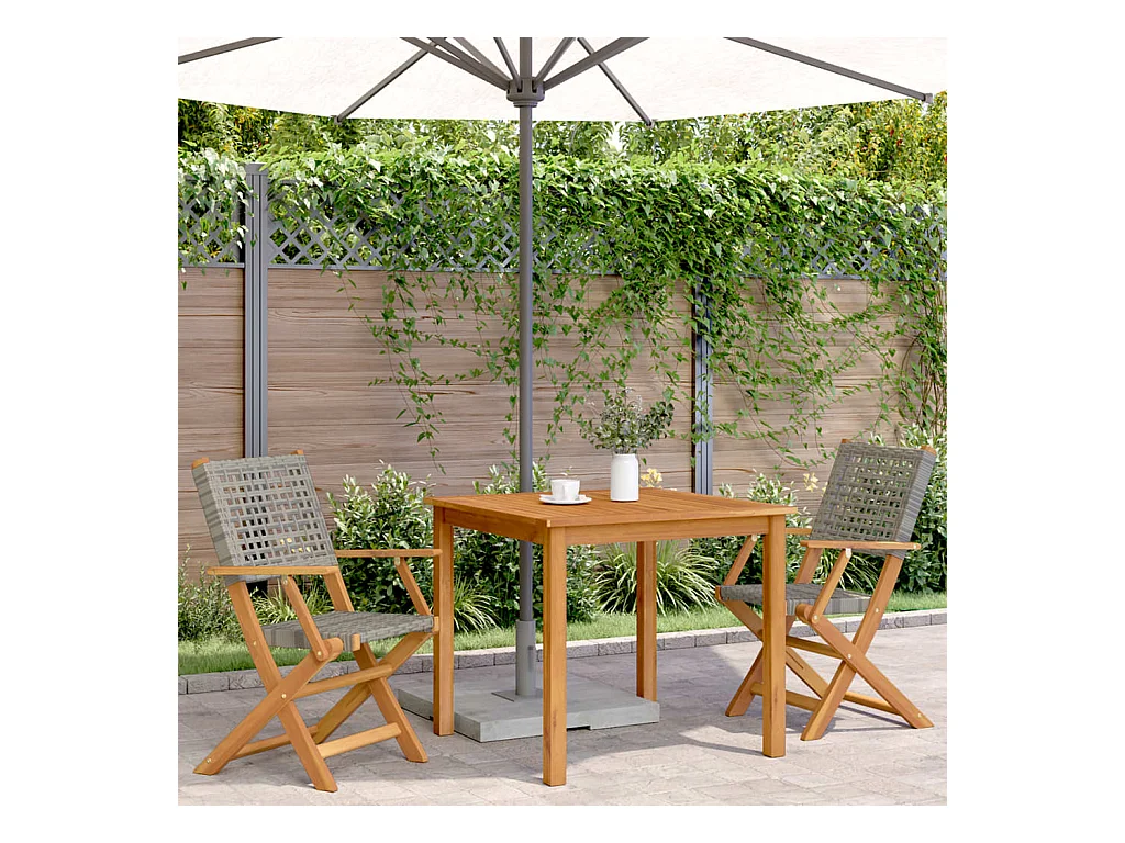 Lot de 2 Chaises de jardin gris bois massif d'acacia et rotin FR34925