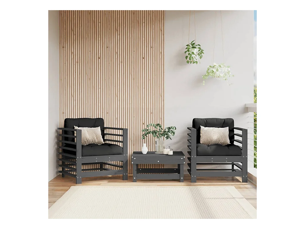 Lot de 2 Chaises de jardin gris bois massif de pin FR86898