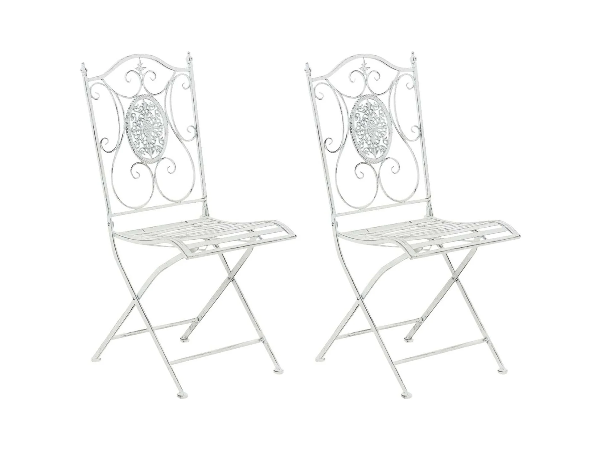 Lot de 2 Chaises de jardin - Métal - Blanc antique - Sibell