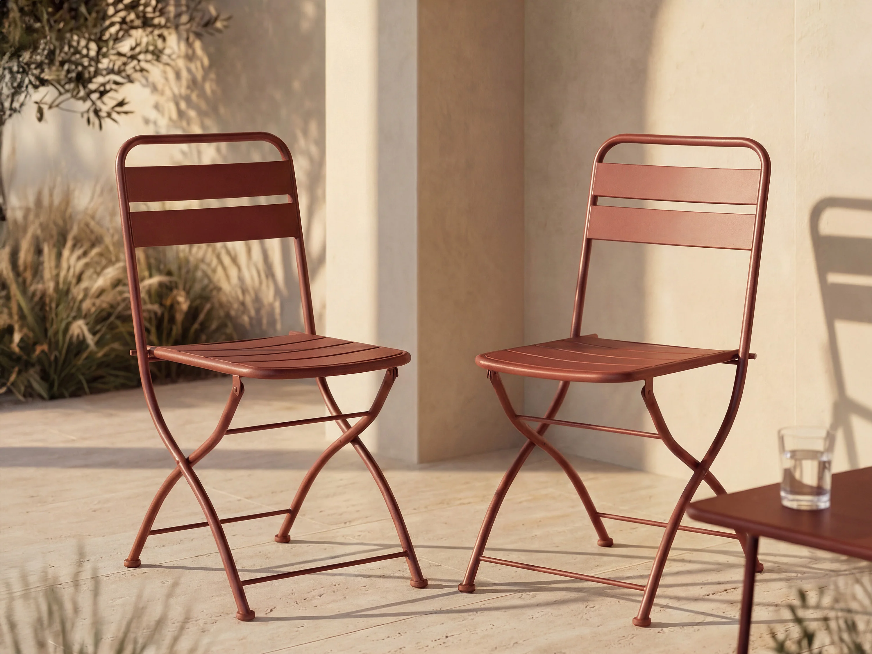 Lot de 2 chaises de jardin pliantes en métal - Terracotta - MIRMANDE de MYLIA