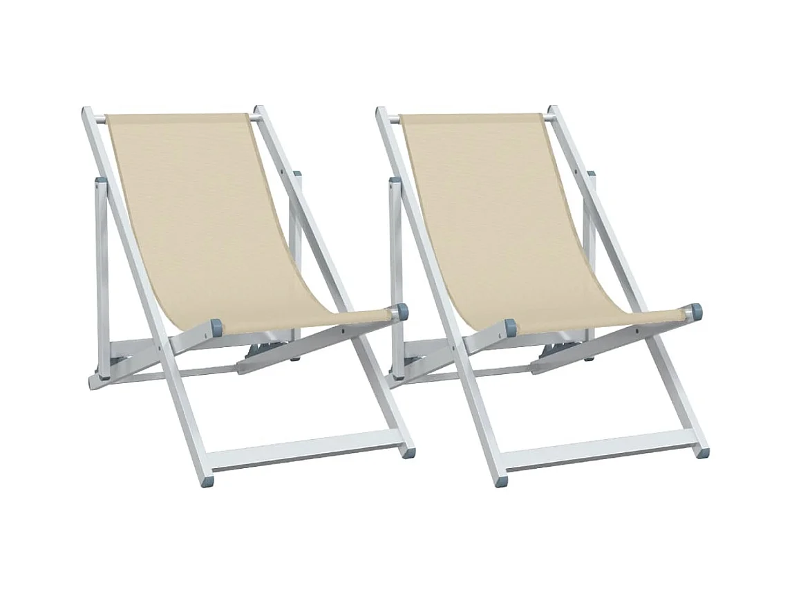 Lot de 2 Chaises de plage pliantes crème aluminium et textilène FR16092