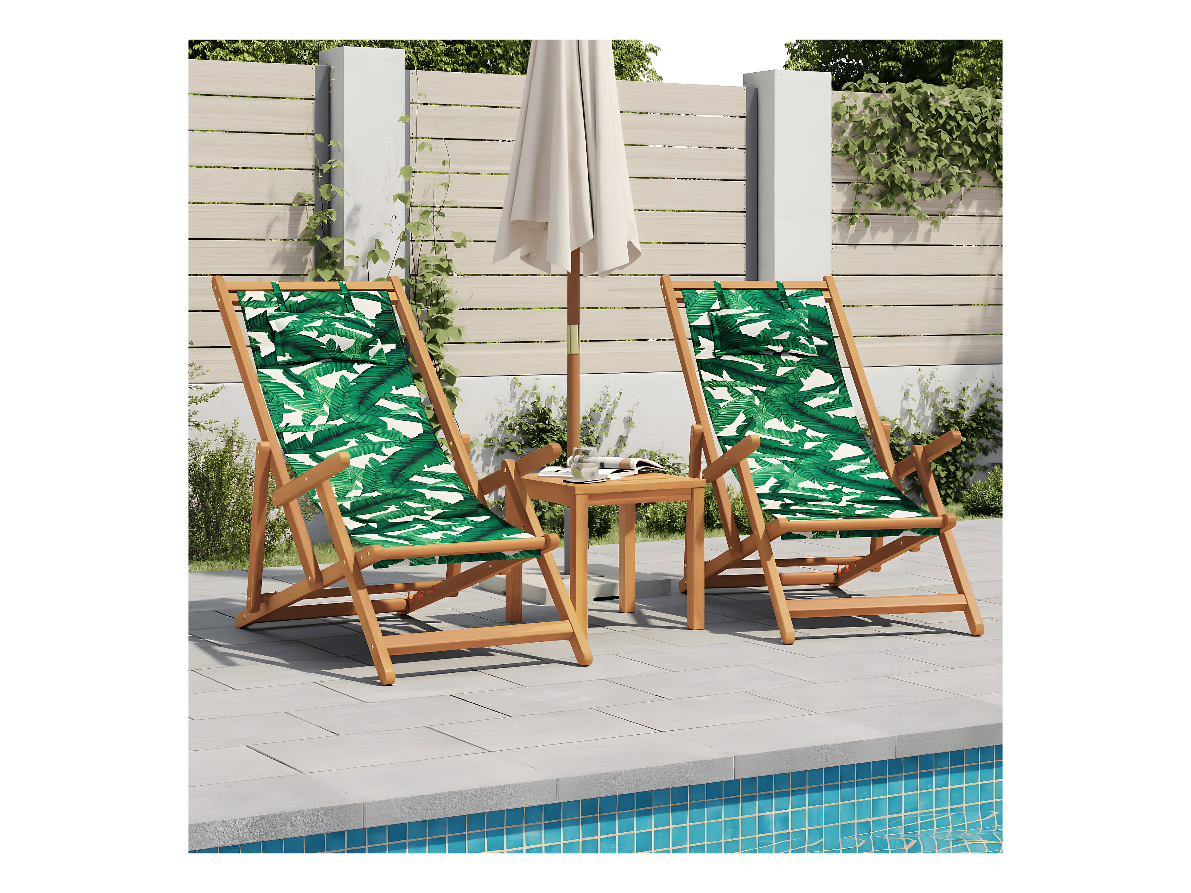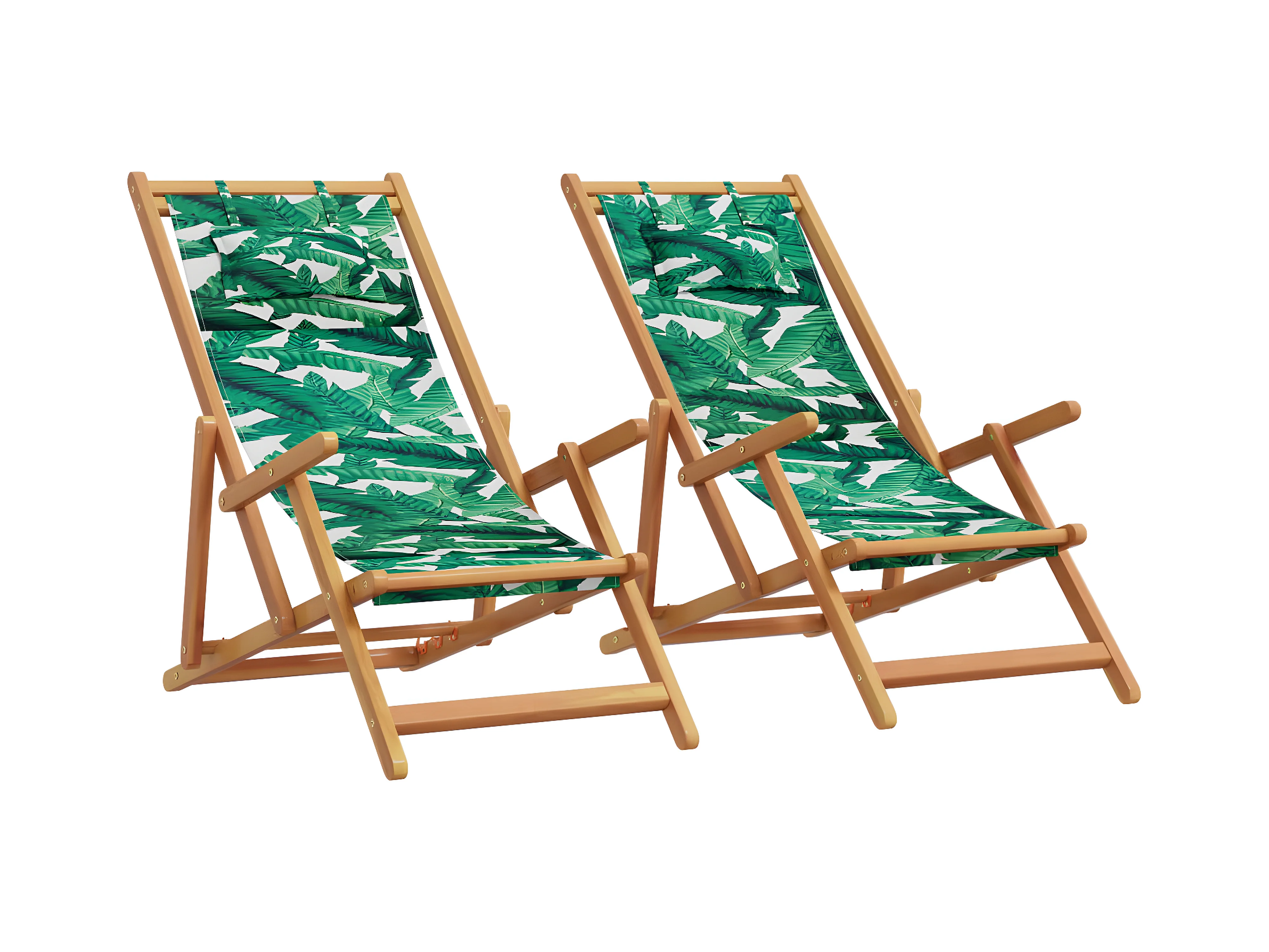 Lot de 2 Chaises de plage pliantes tissu et bois massif FR93444
