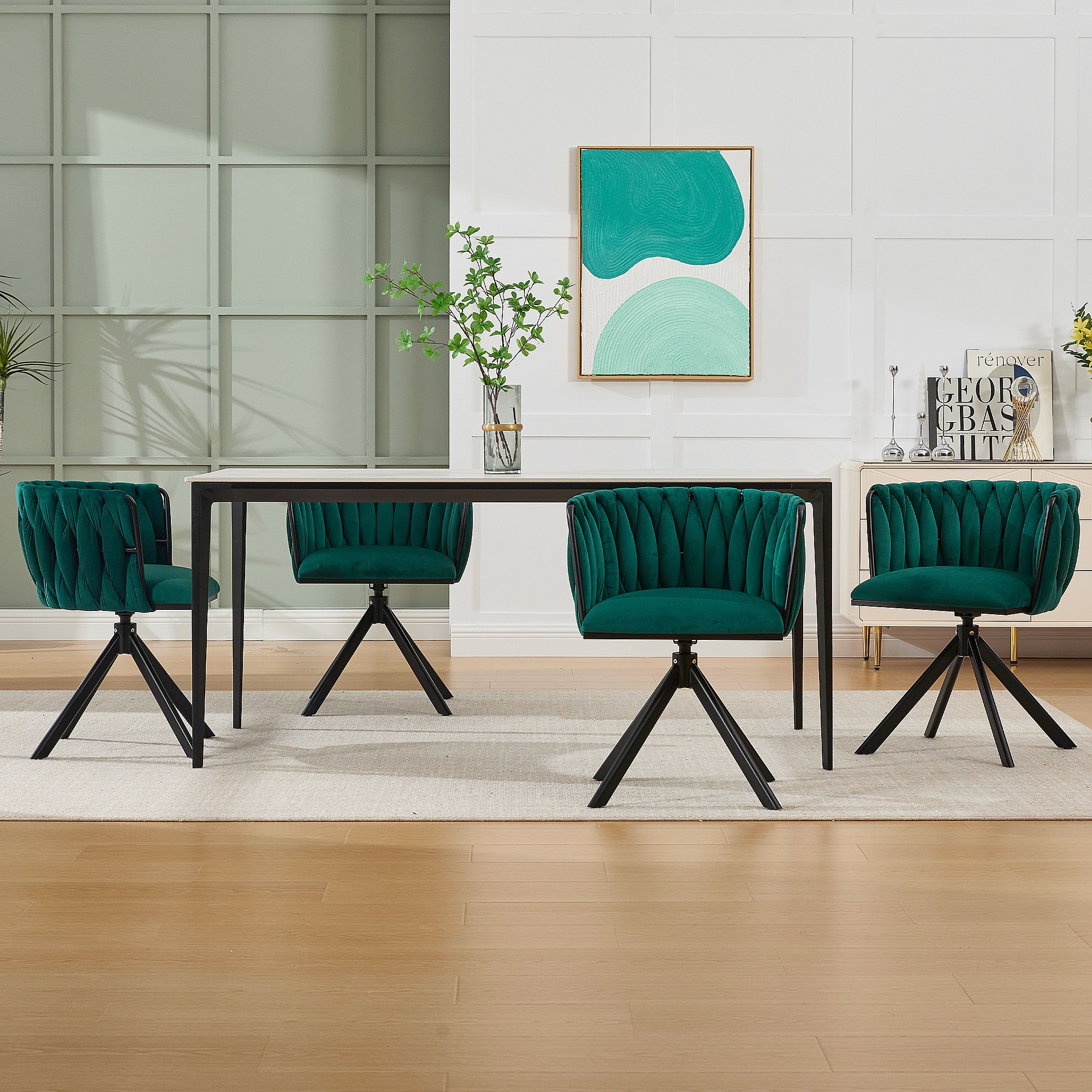 Lot de 2 chaises de salle à manger à hauteur réglable - Fauteuil pivotant avec pieds réglables noirs - velours vert
