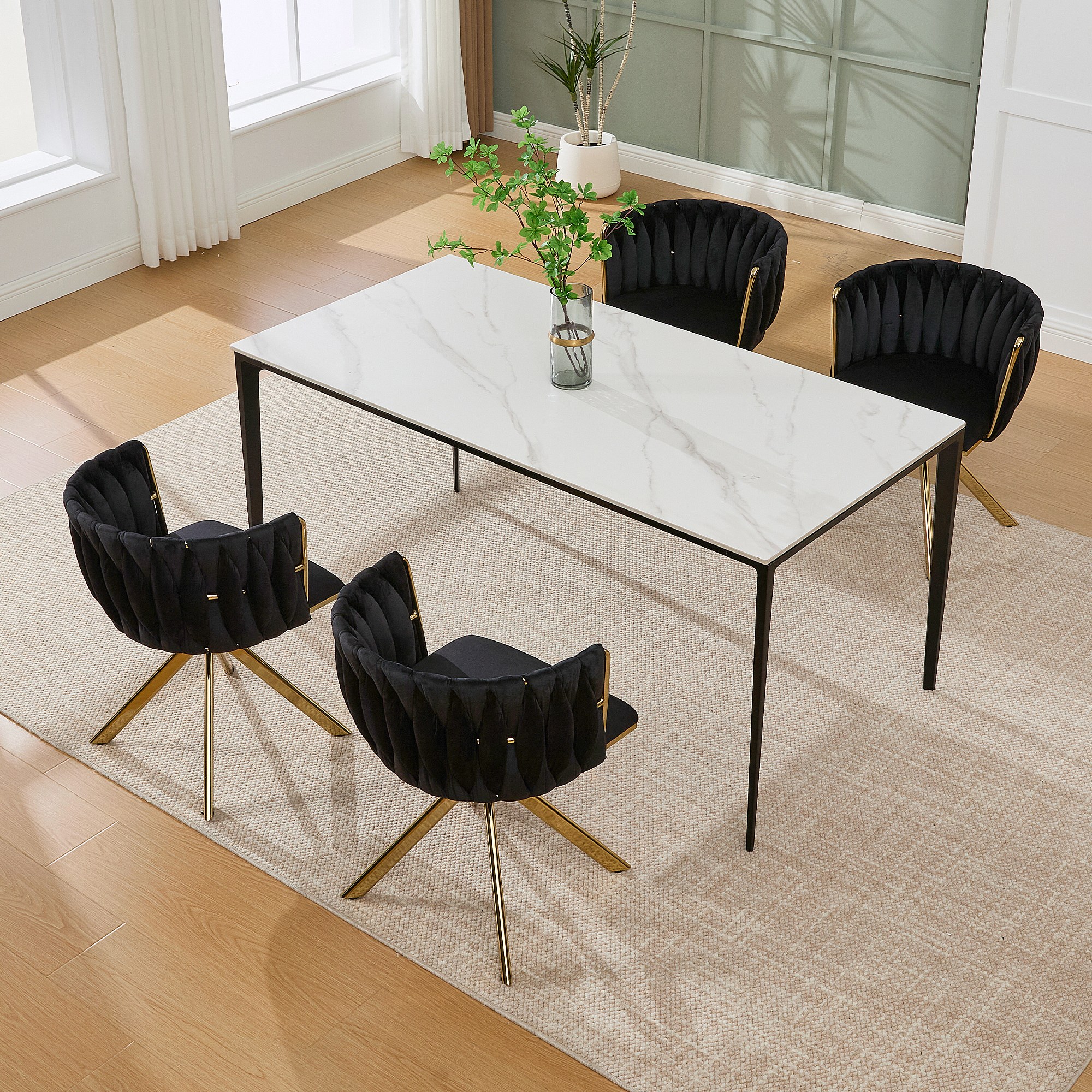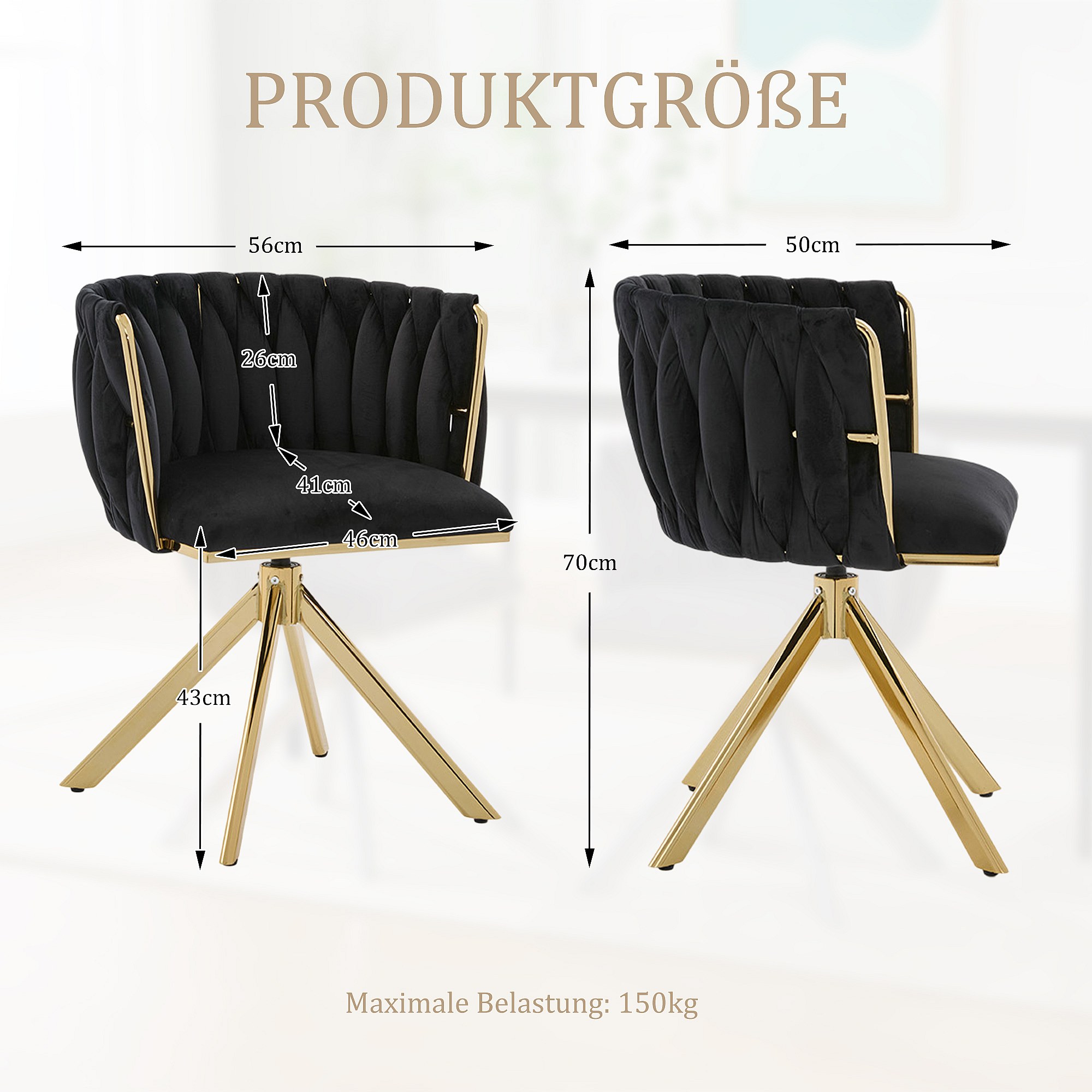 Lot de 2 chaises de salle à manger à hauteur réglable - Fauteuil pivotant et pieds réglables dorés - velours noir