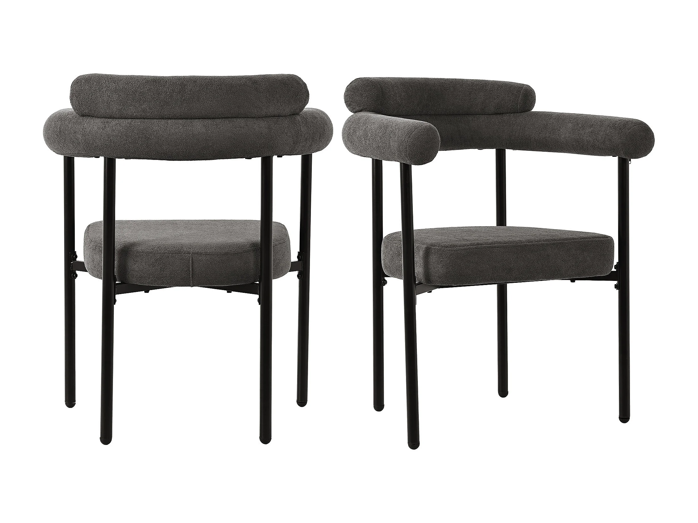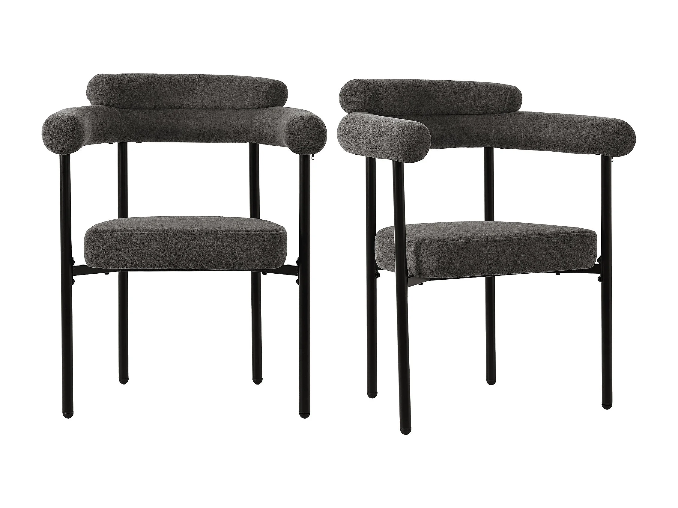 Lot de 2 chaises de salle à manger avec dossier en boucle et accoudoirs - tissu peluche gris foncé