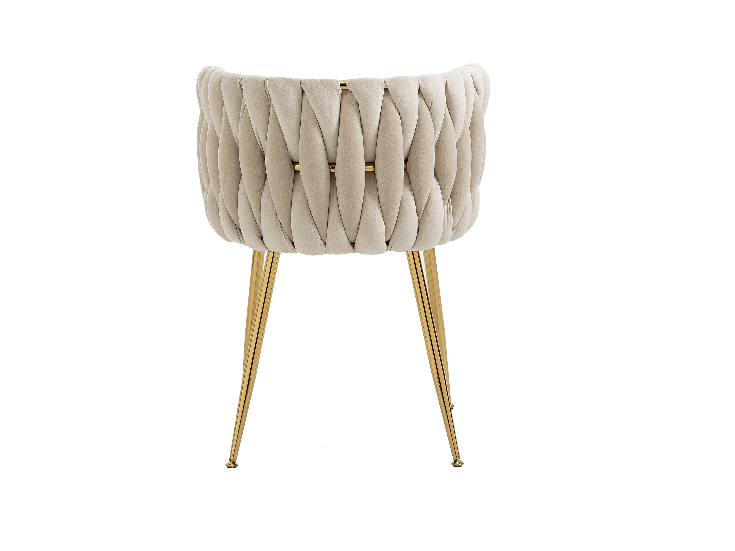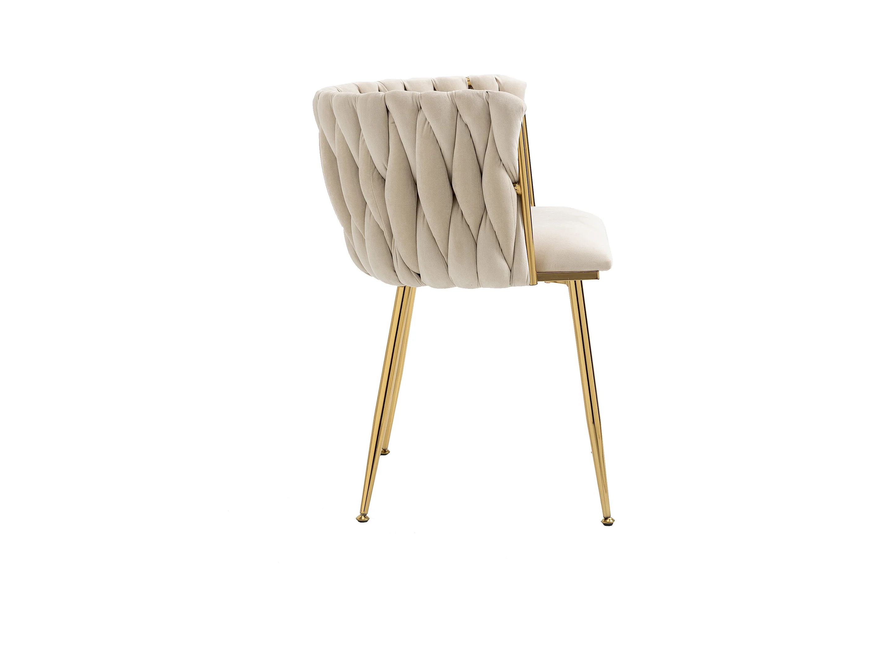 Lot de 2 chaises en velours ivoire - dossier ajouré tressé et pieds dorés - Idéales pour intérieur chic et contemporain
