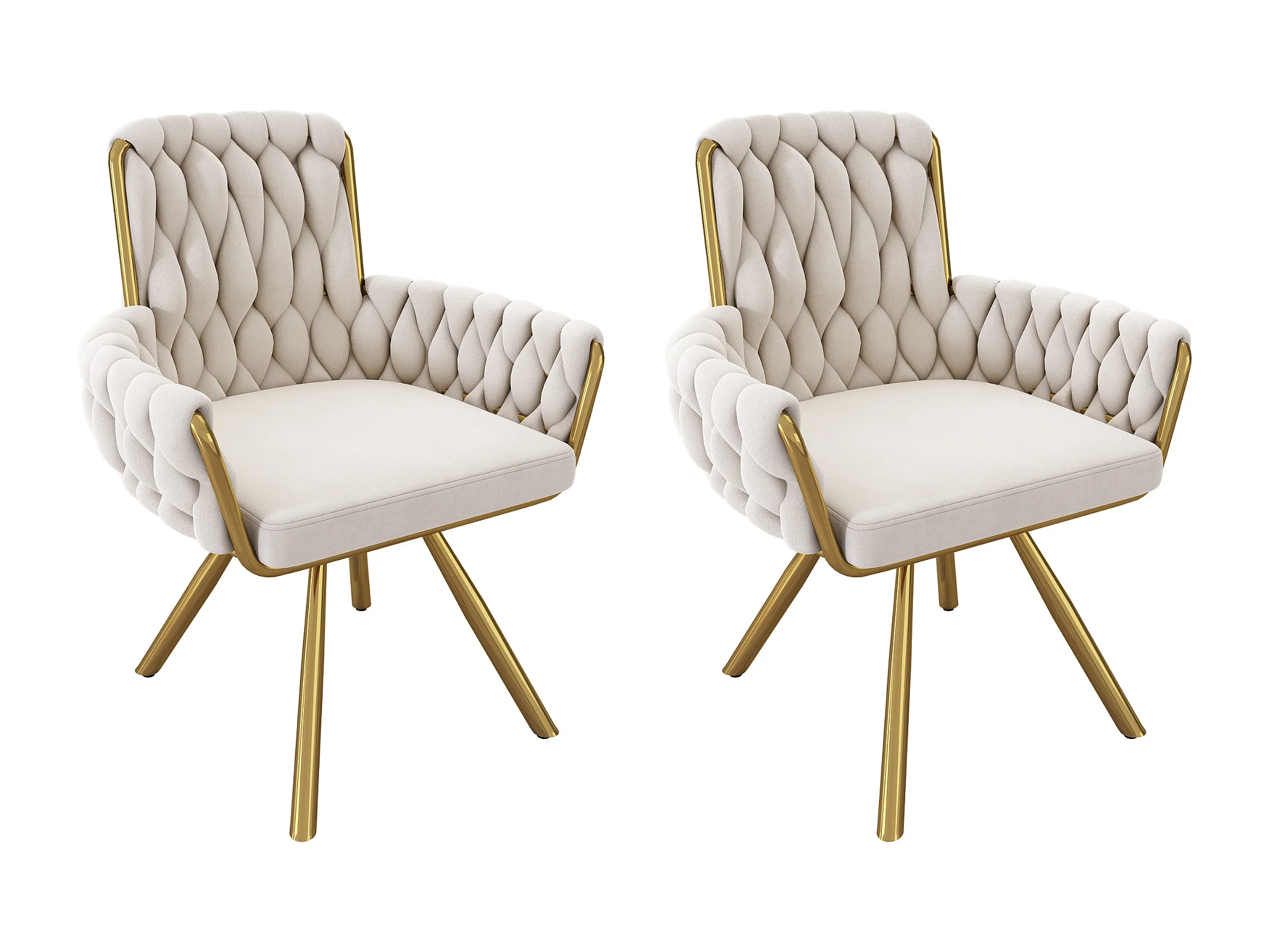 Lot de 2 chaises de salle à manger avec motif losange, fauteuil pivotant avec 4 pieds métalliques, en velours beige (L64.77 x l63.5 x H50.8 cm)