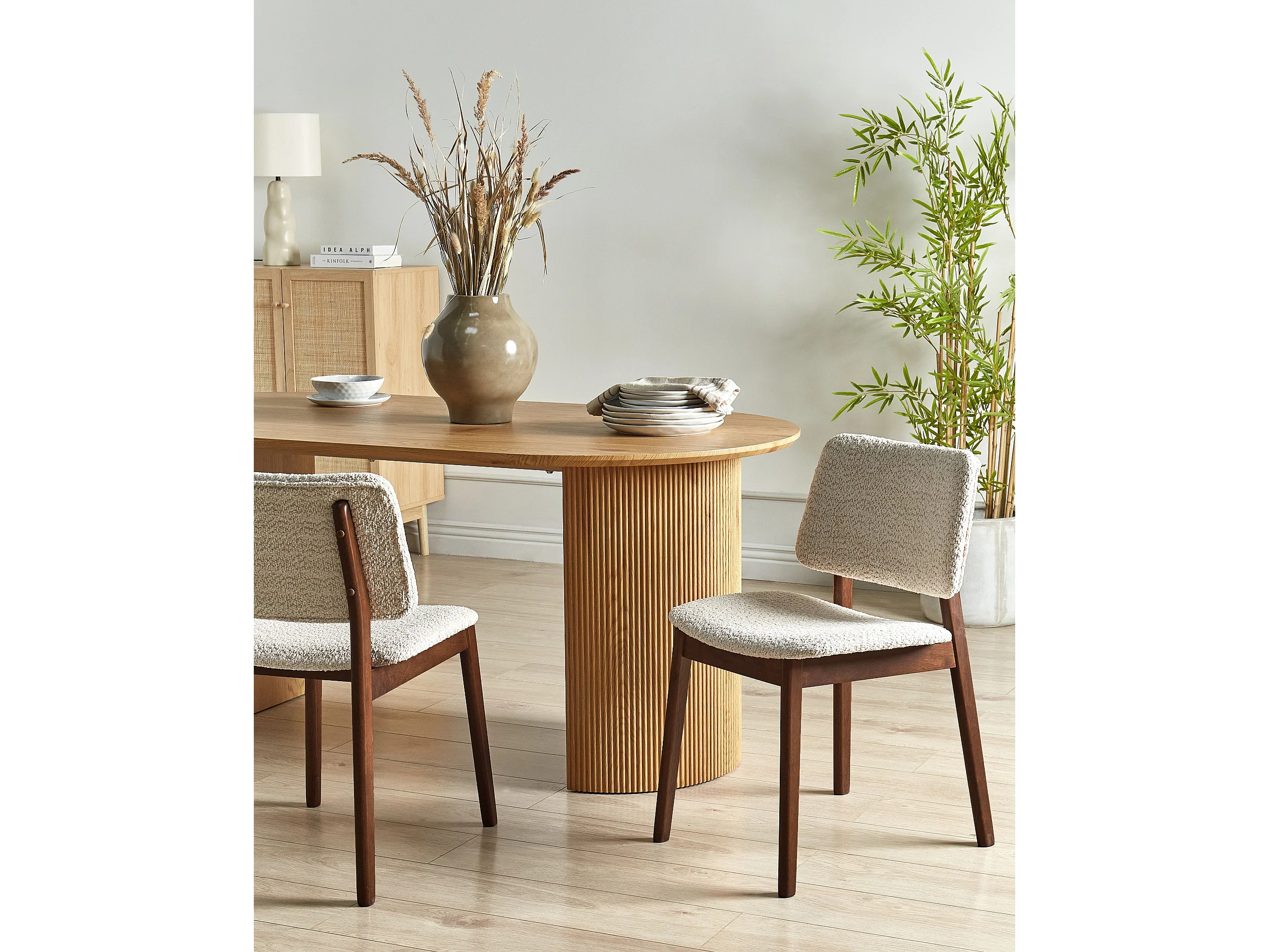 Lot de 2 chaises de salle à manger BLANE Bouclé Marron foncé/beige