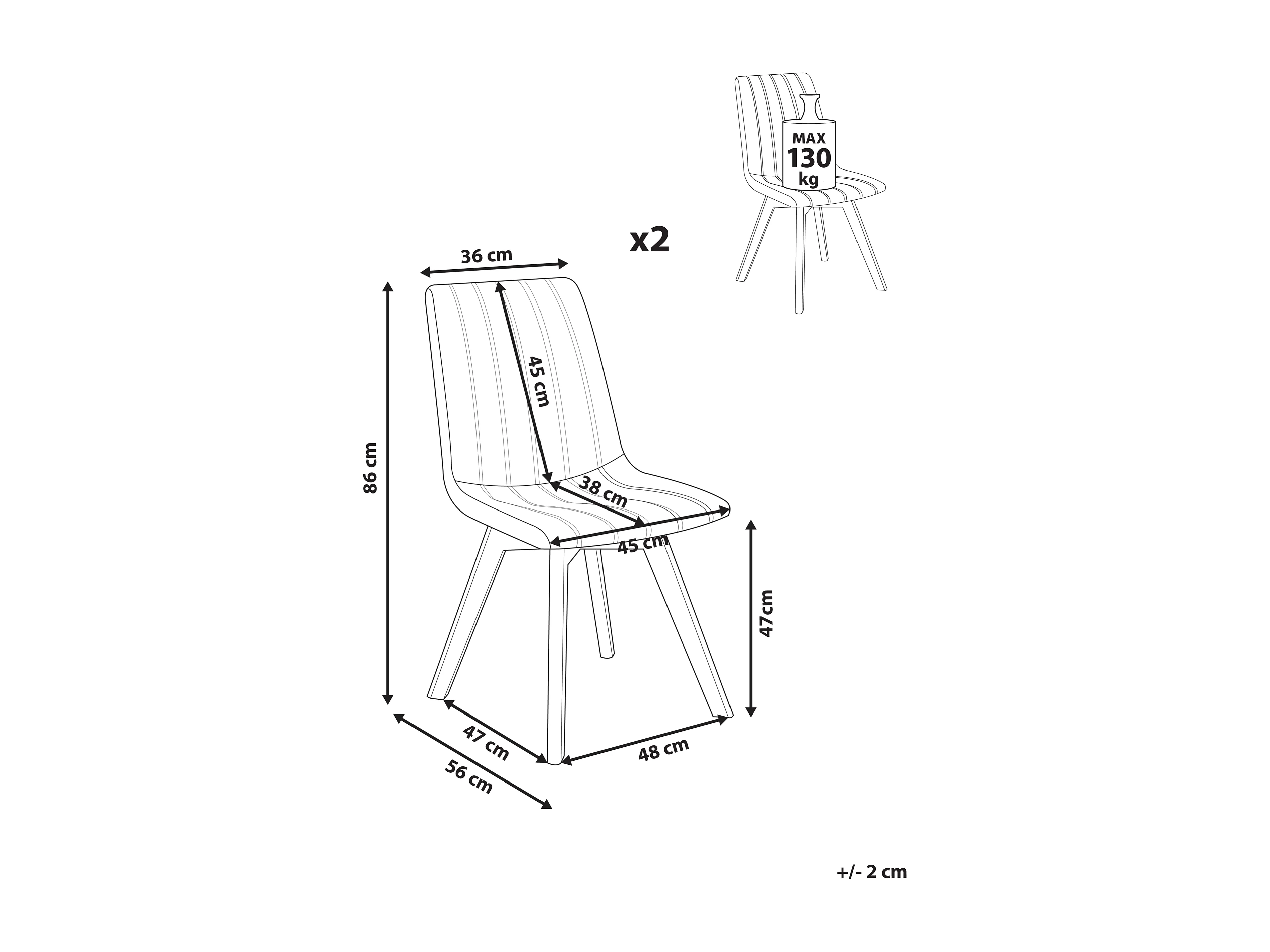 Lot de 2 chaises de salle à manger CALGARY Tissu Gris clair
