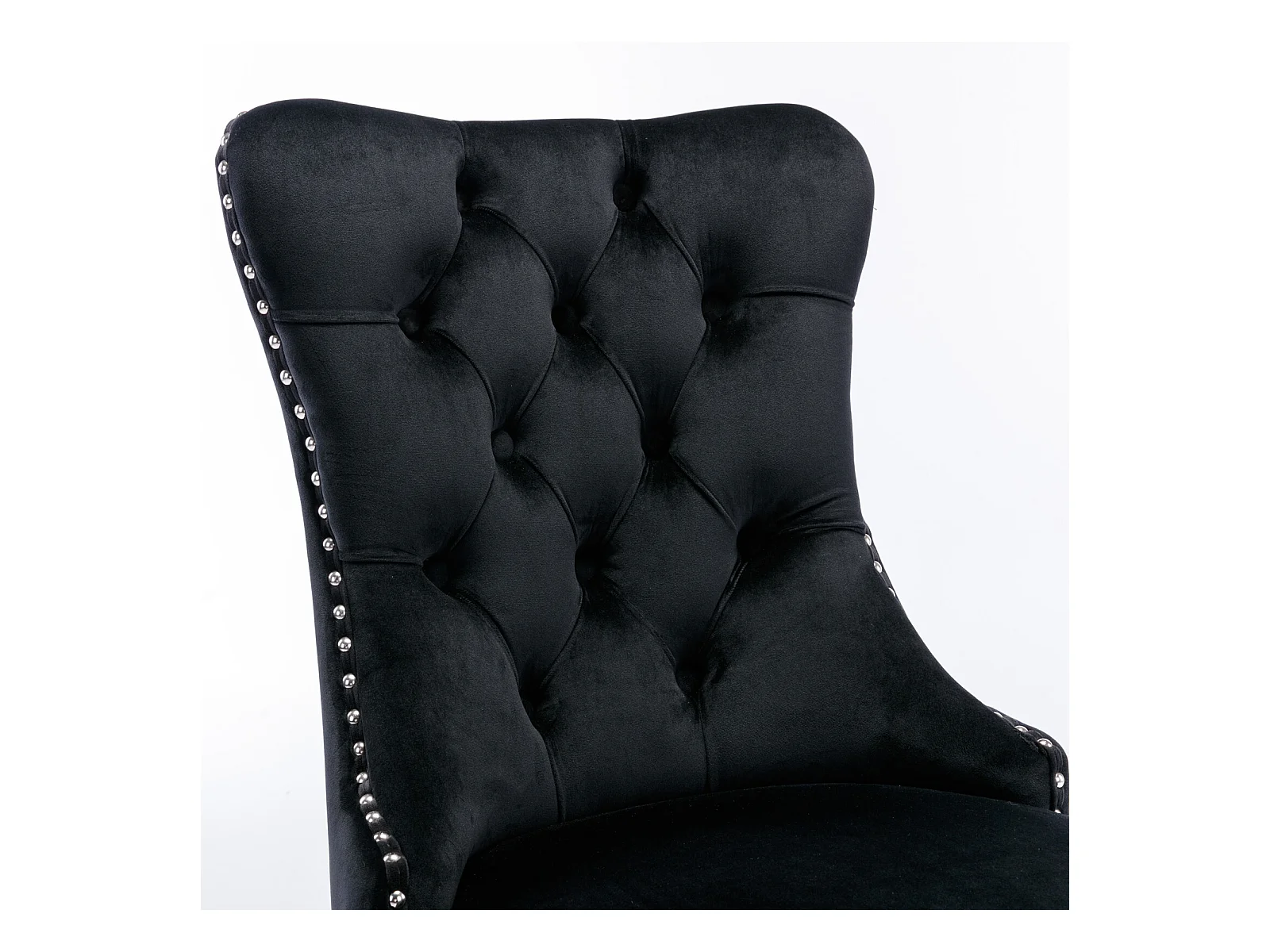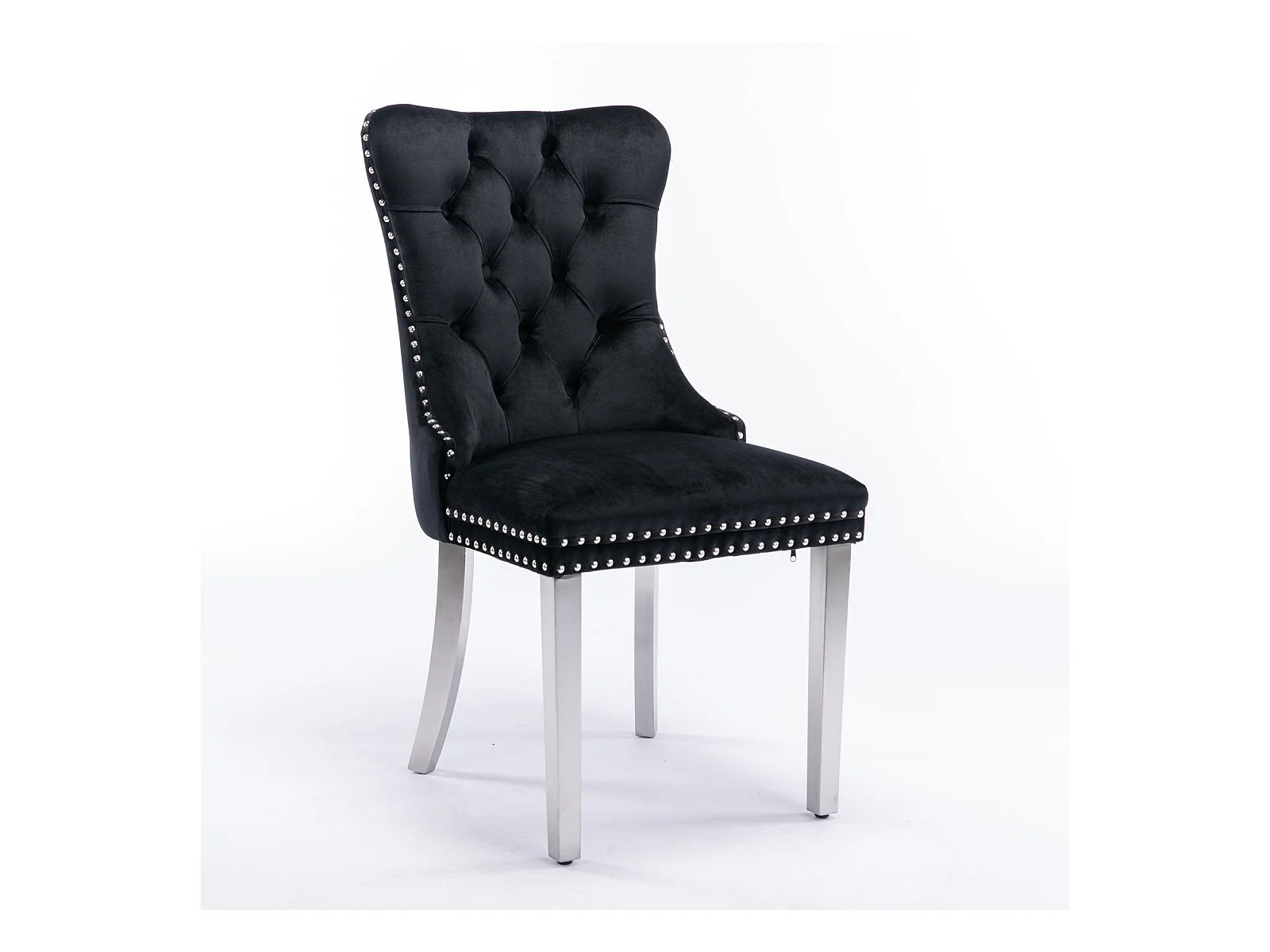 Lot de 2 chaises de salle à manger - Chaises avec dossier rembourré et pieds en acier inoxydable argent - avec garniture cloutée - velours noir