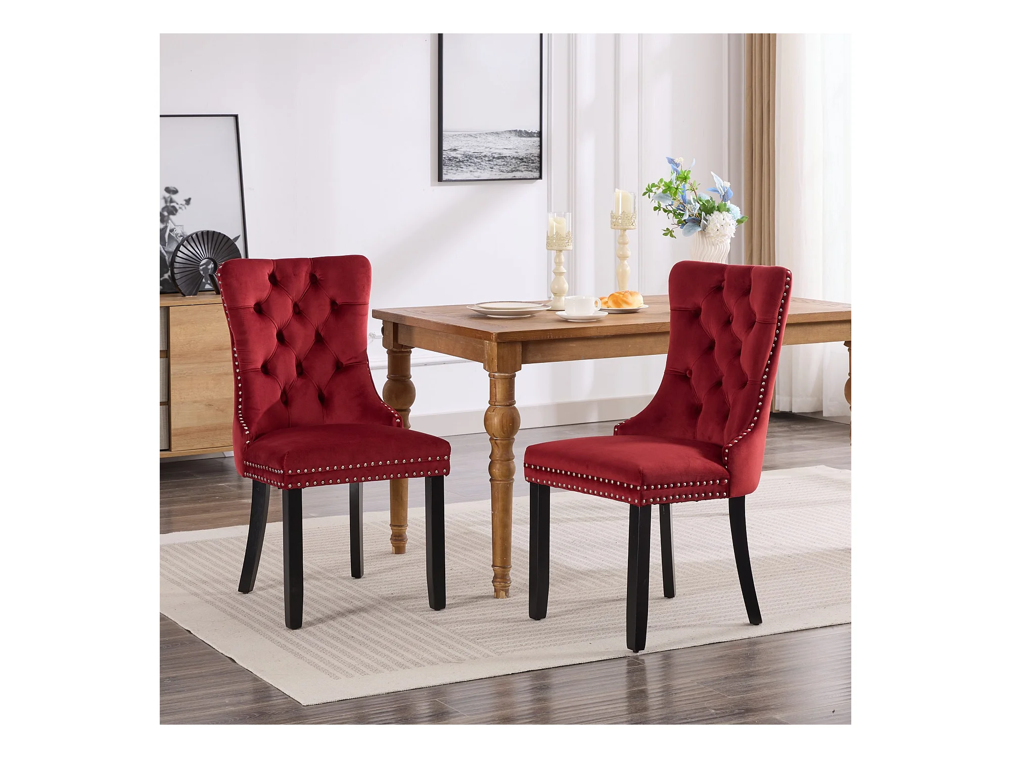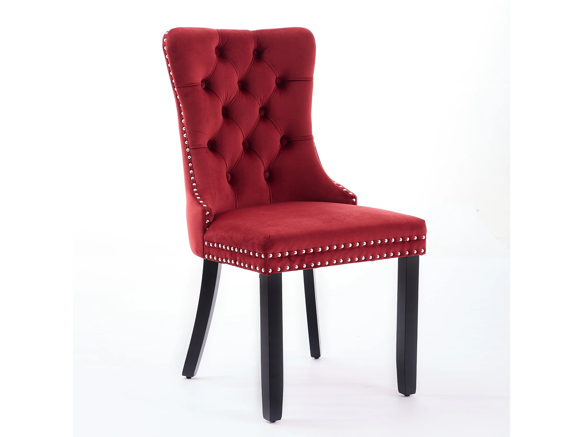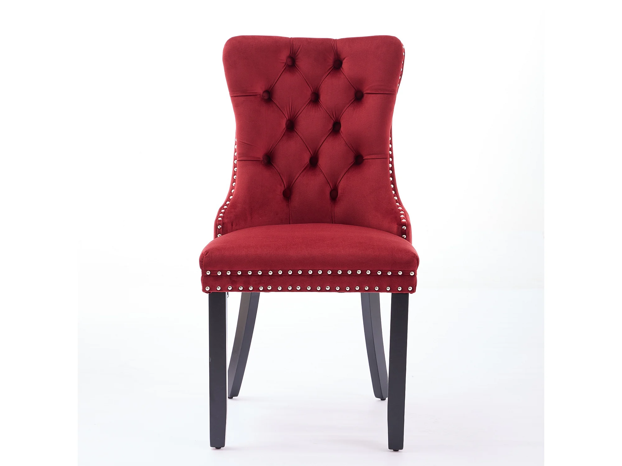 Lot de 2 chaises de salle à manger - Chaises avec dossier rembourré, pieds en bois et garniture cloutée - velours bordeaux