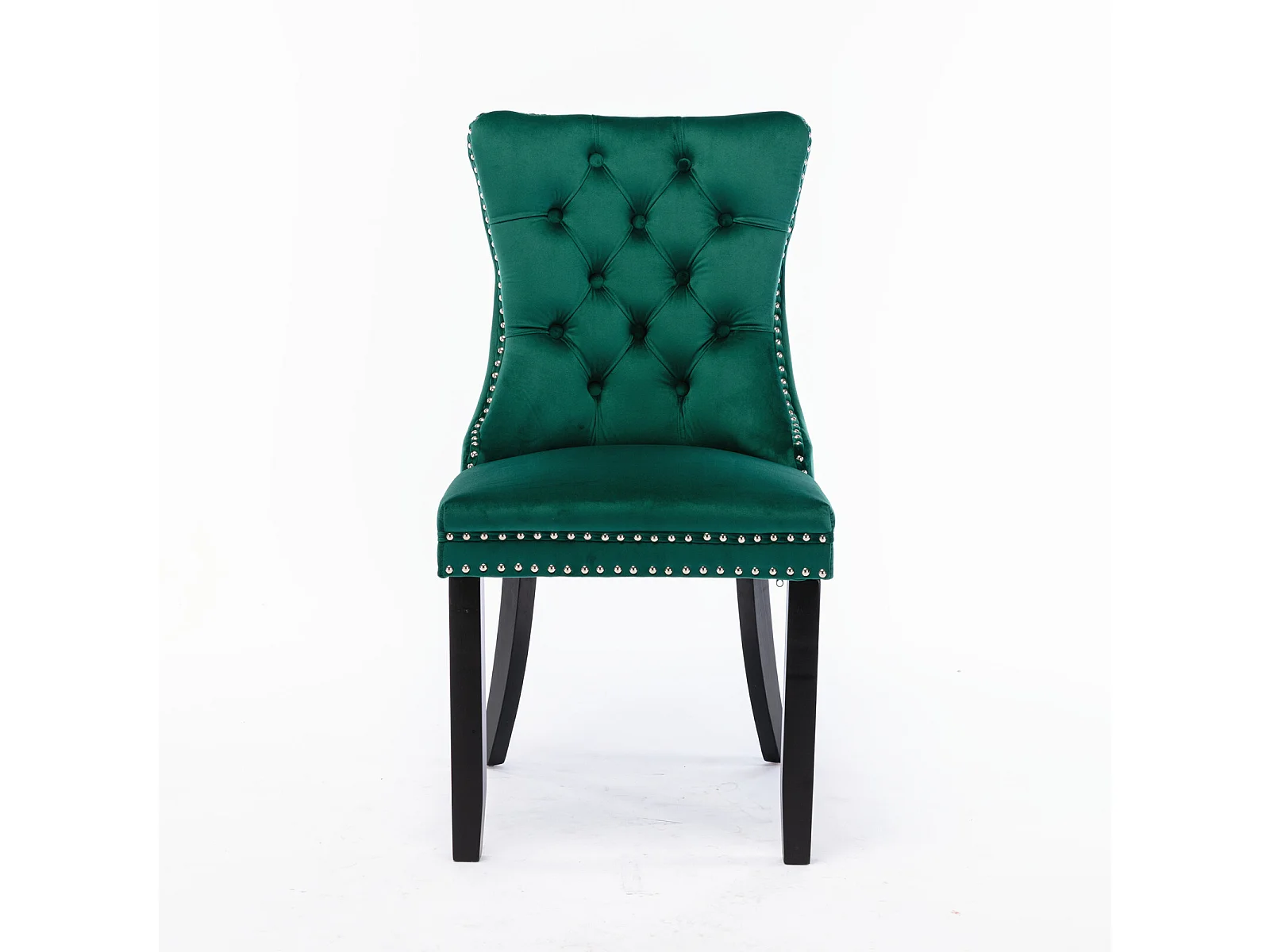 Lot de 2 chaises de salle à manger - Chaises avec dossier rembourré, pieds en bois et garniture cloutée - velours vert