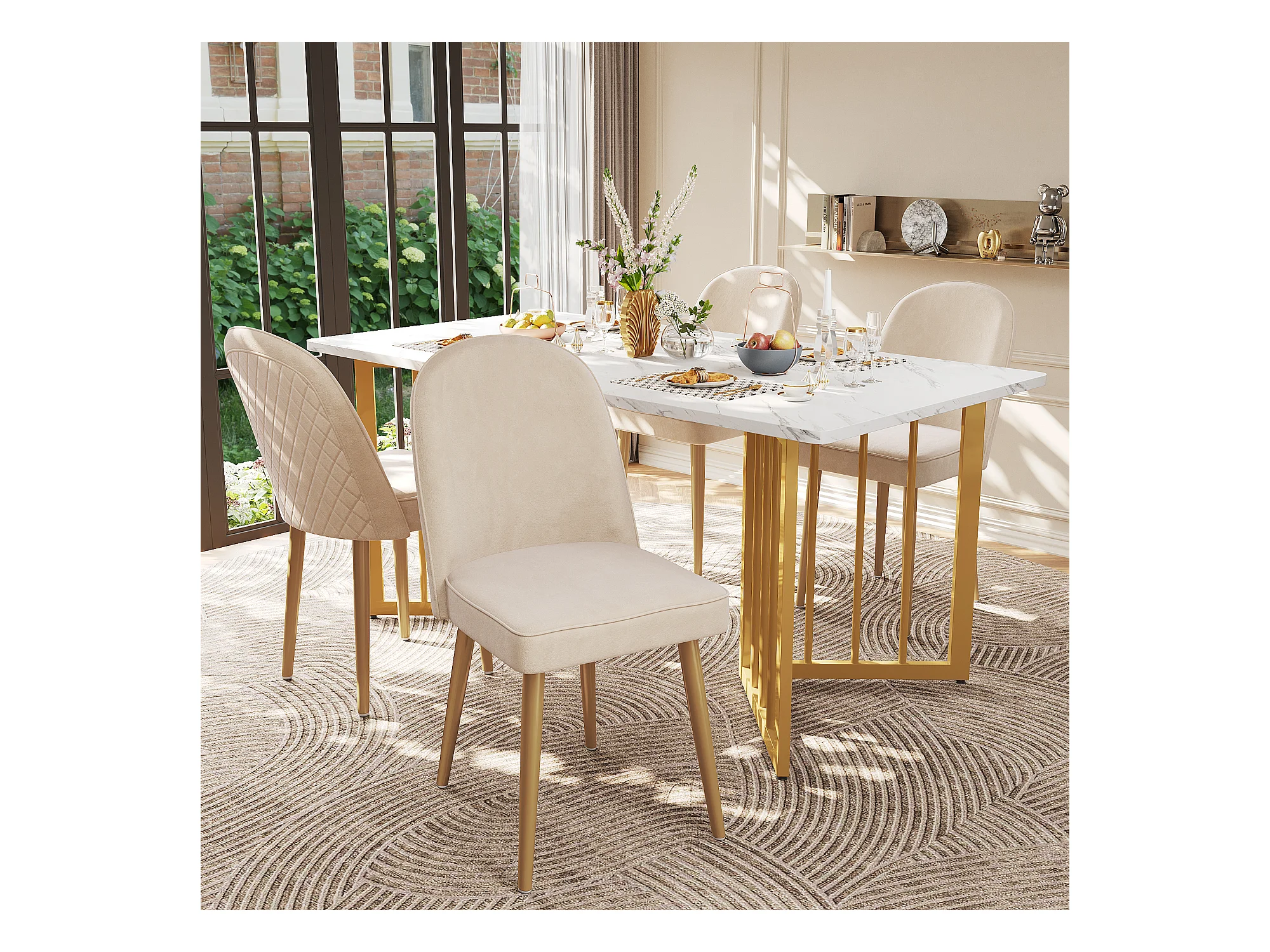 Lot de 2 chaises de salle à manger - Chaises de salle à manger avec dossier et pieds en métal doré - pieds antidérapants - velours beige