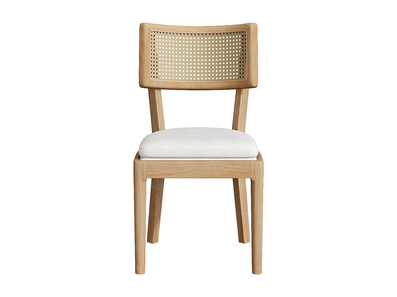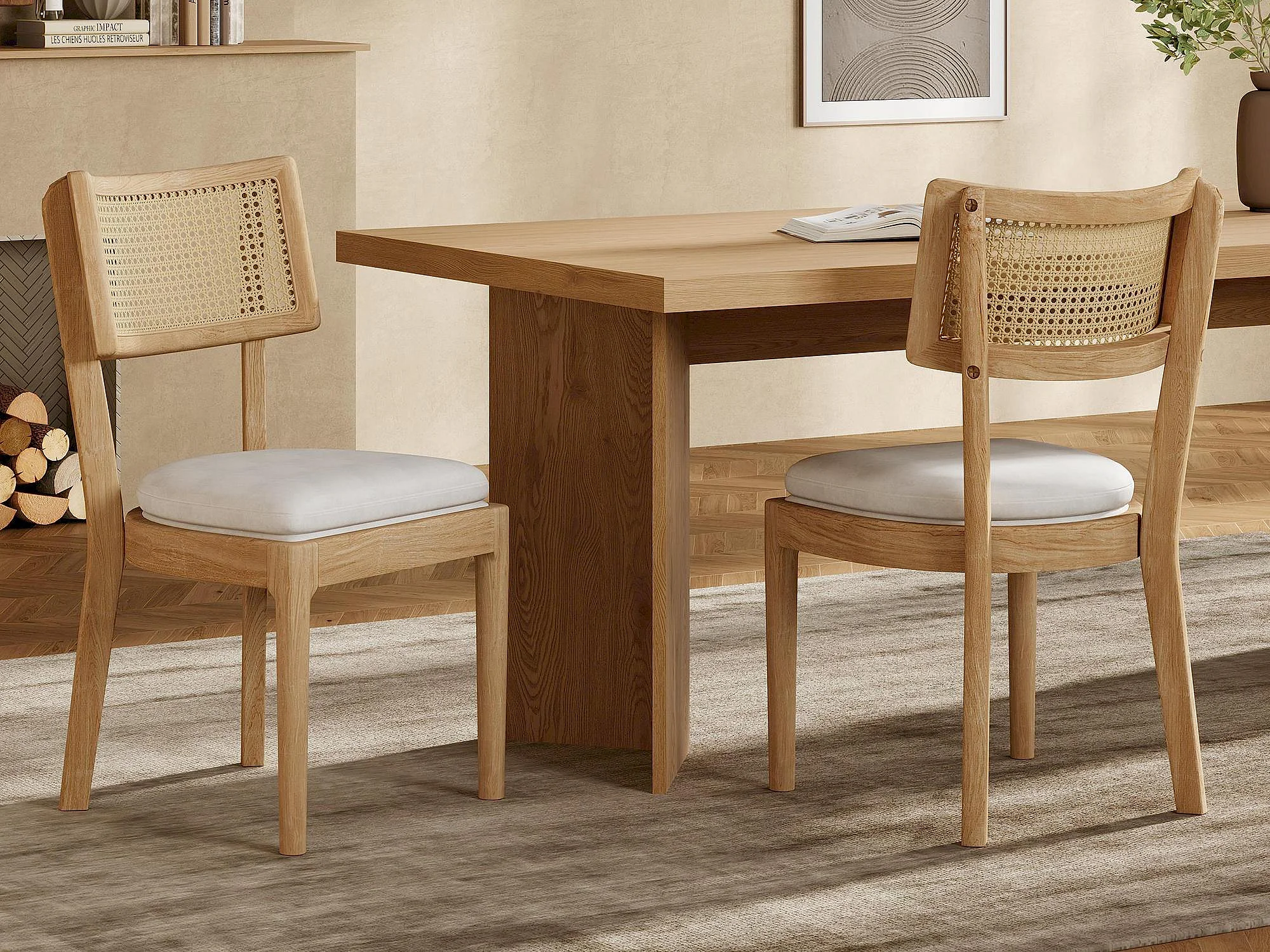 Lot de 2 chaises de salle à manger - Dossier en rotin - coussin de siège en lin - Bois massif - Naturel