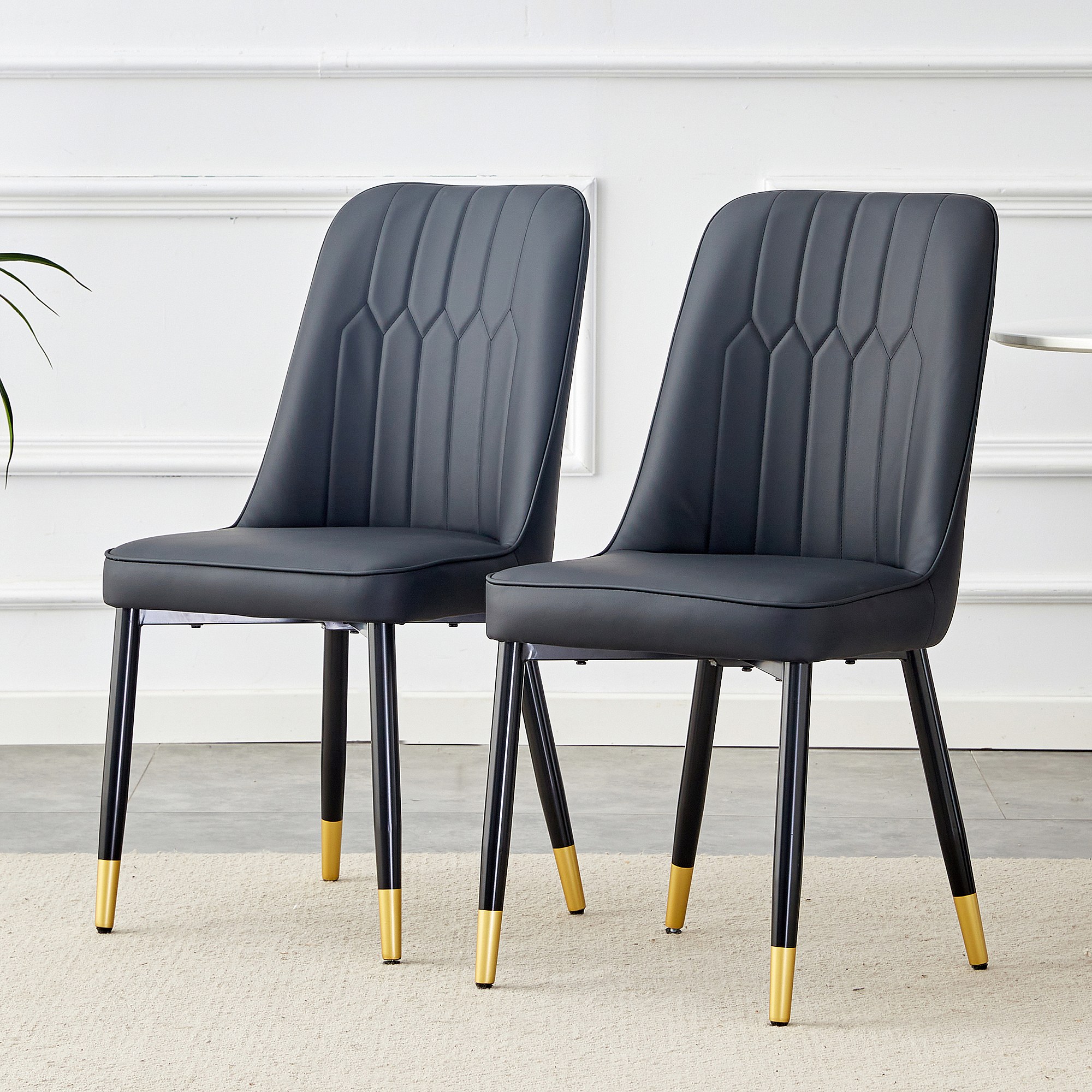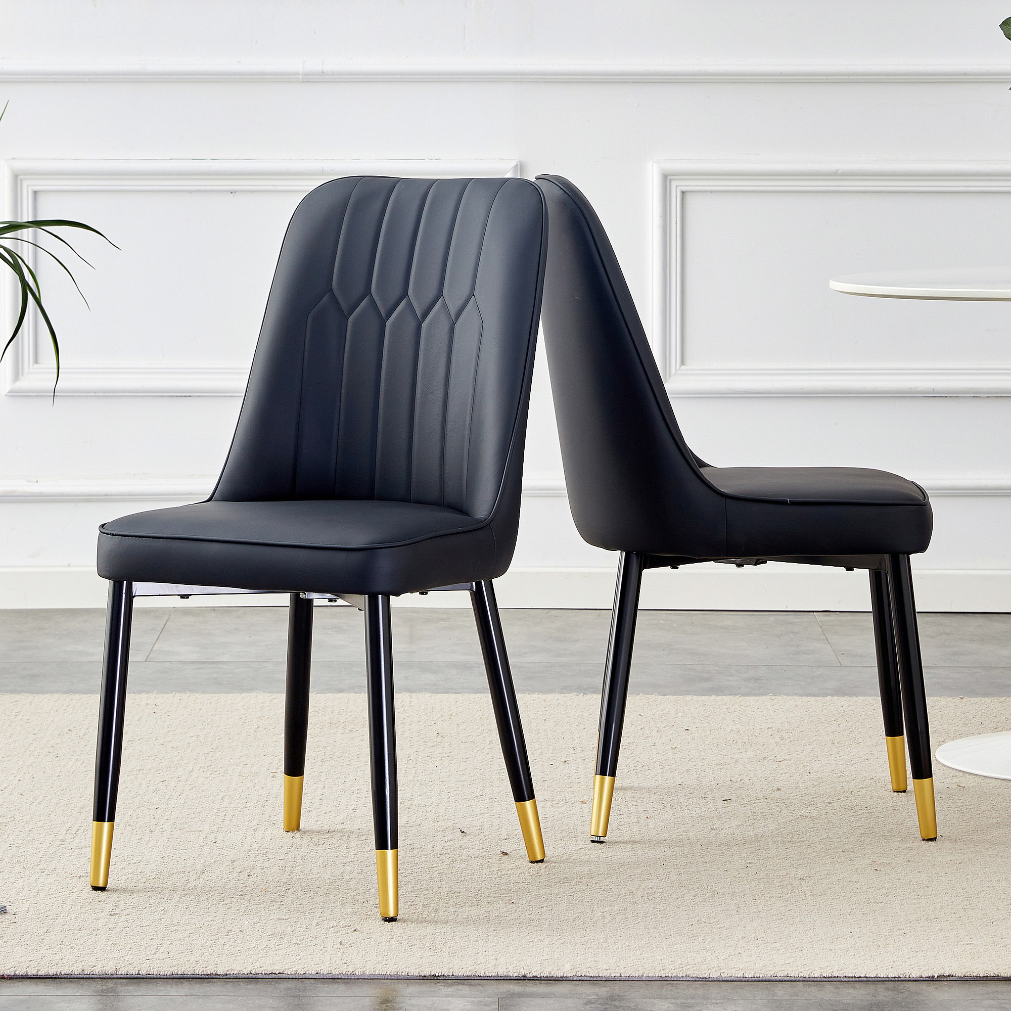 Lot de 2 chaises de salle à manger en PU avec dossier rembourré et pieds en métal - Noir