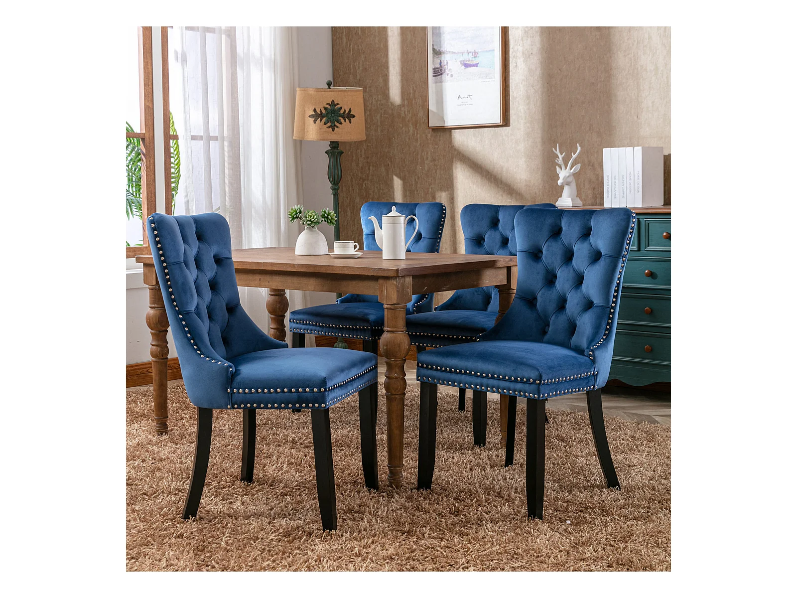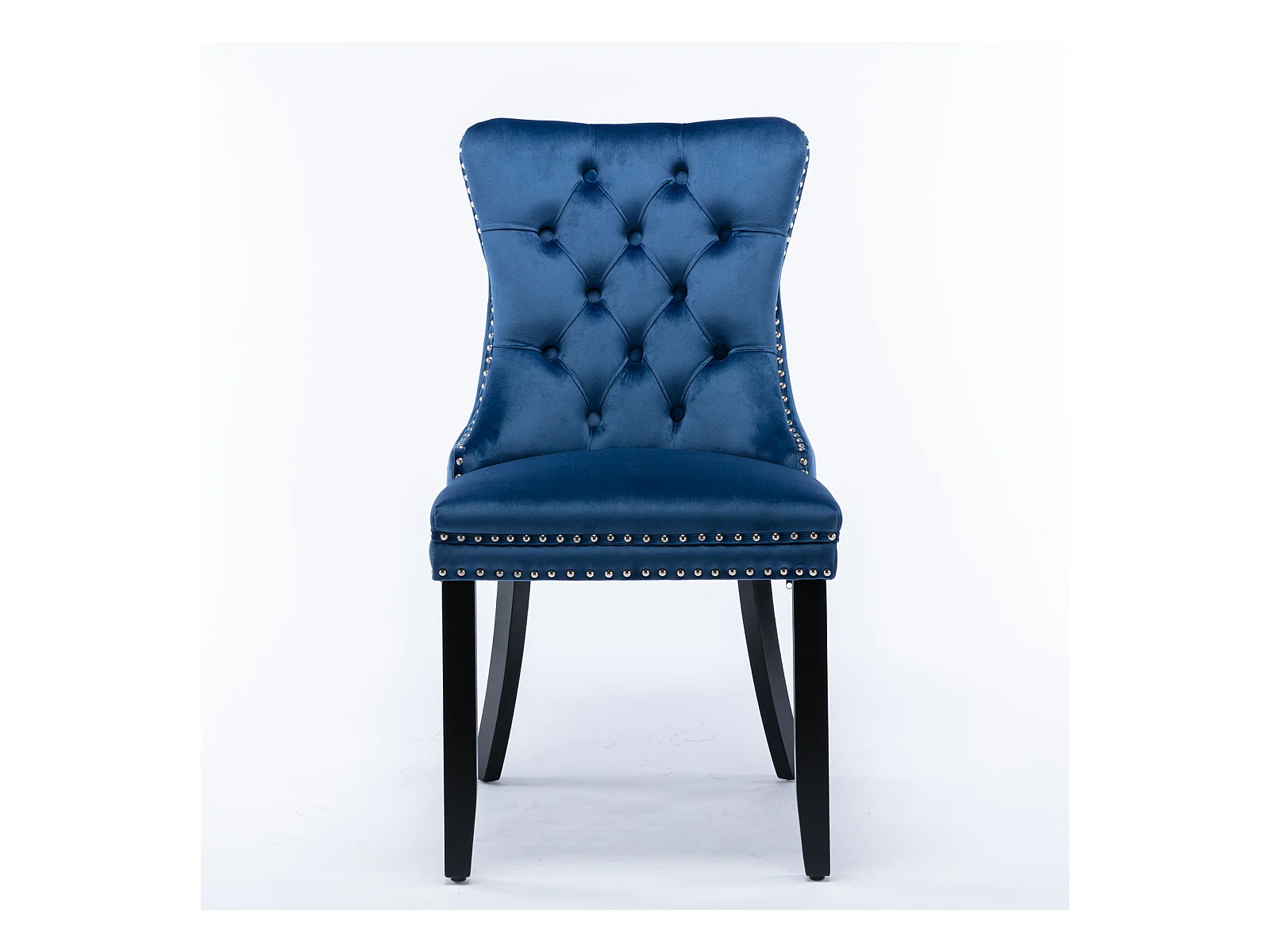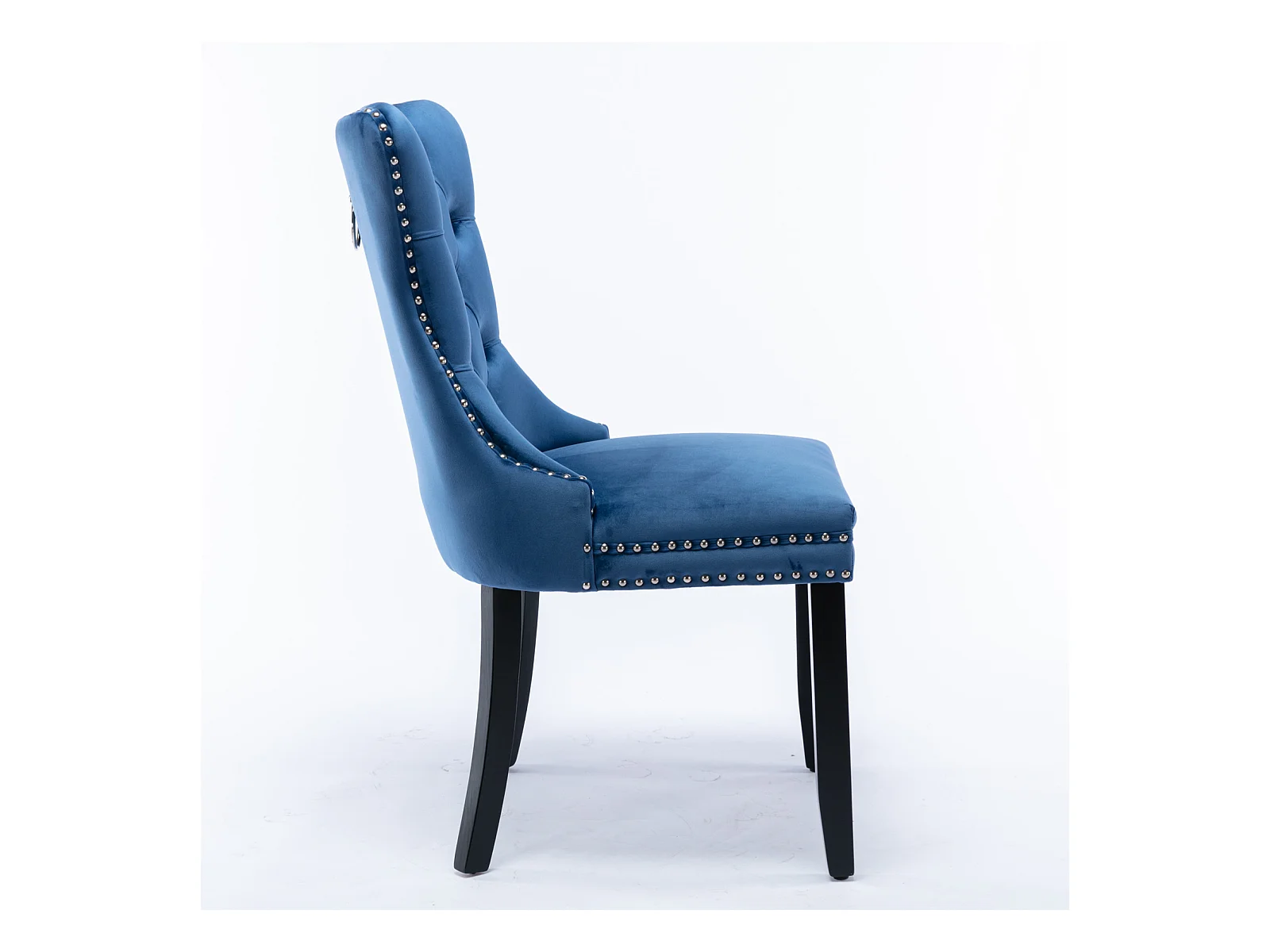 Lot de 2 chaises de salle à manger en velours bleu avec garniture cloutée et dossier rembourré