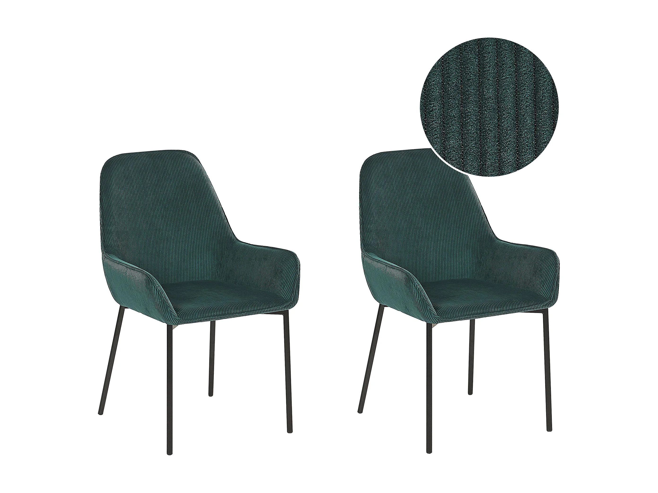 Lot de 2 chaises de salle à manger LOVERNA Velours côtelé Vert foncé