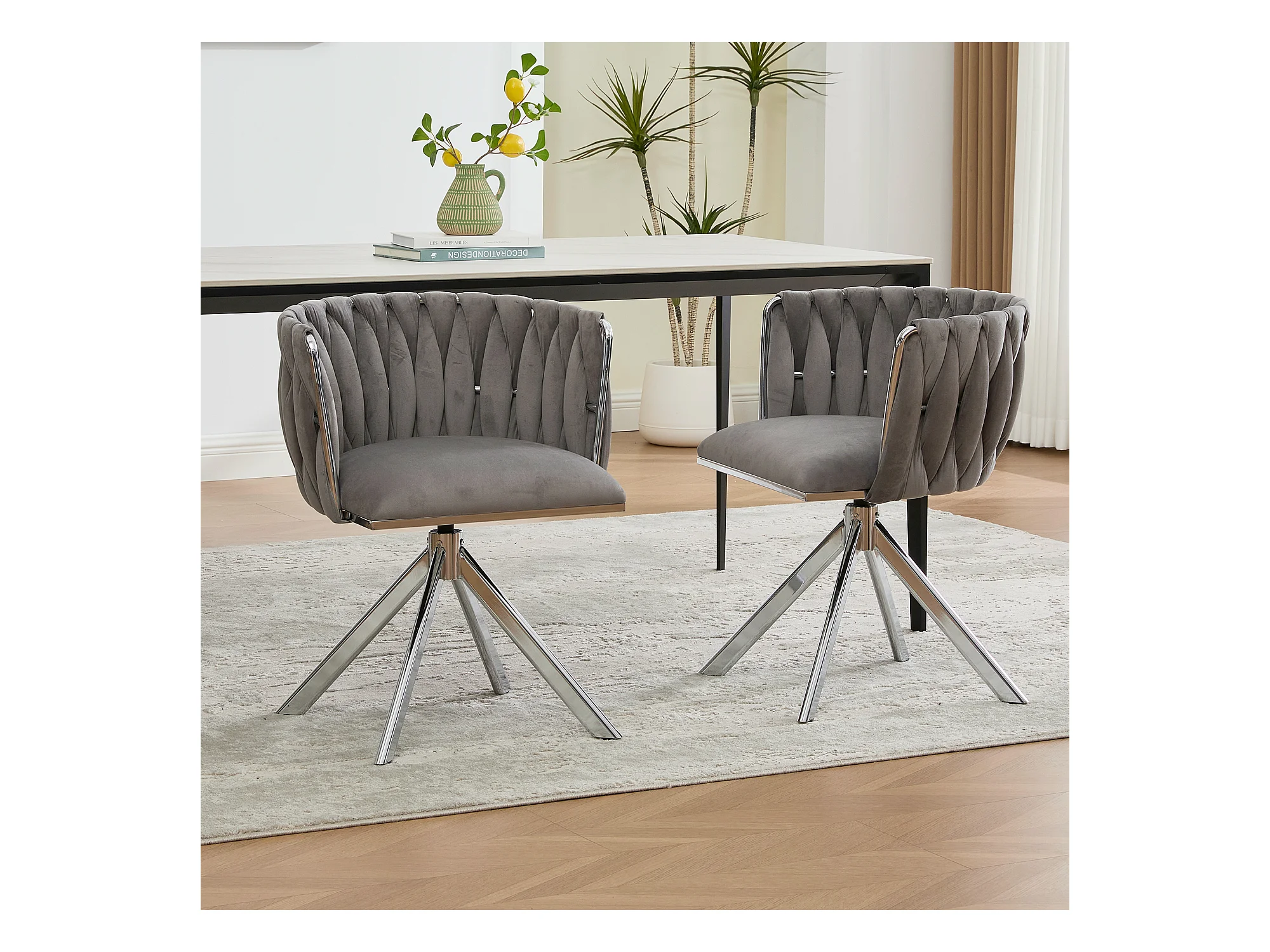 Lot de 2 chaises de salle à manger en velours gris avec fonction pivotante et pieds en métal argenté
