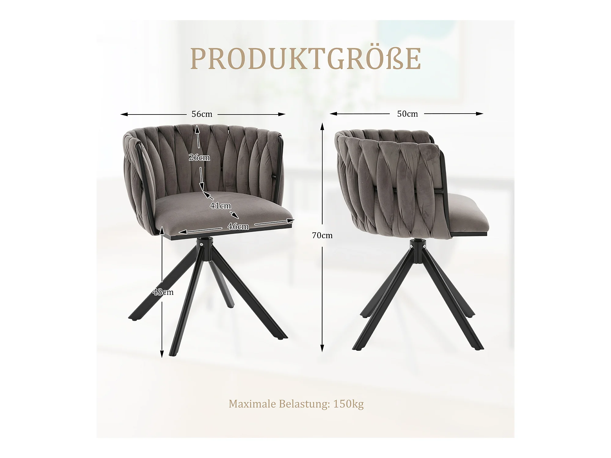 Lot de 2 chaises avec structure en métal - 56 x 50 x 70 cm - rotation à 180°- pieds noirs - velours - gris
