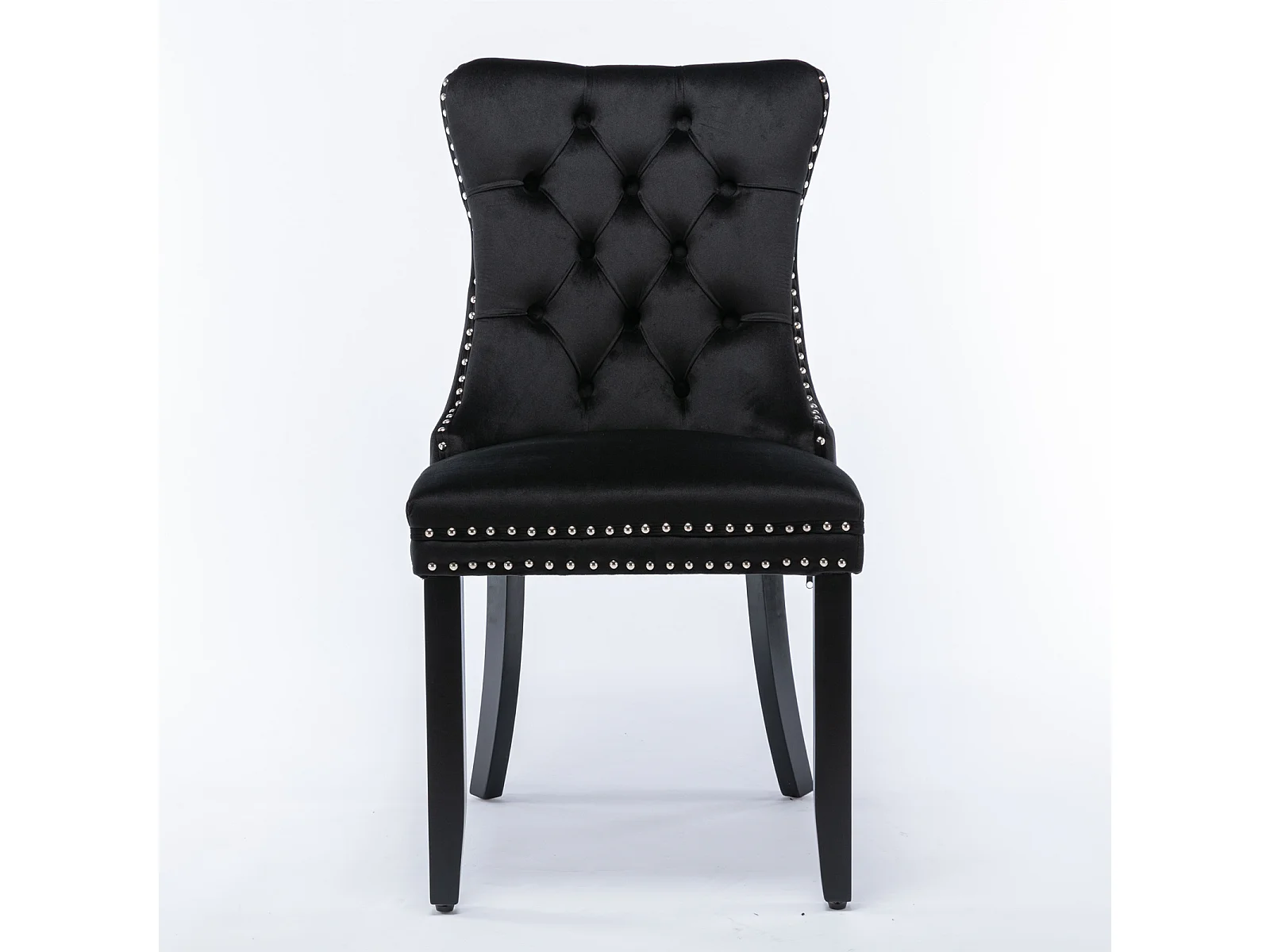 Lot de 2 chaises de salle à manger en velours noir avec garniture cloutée et dossier rembourré