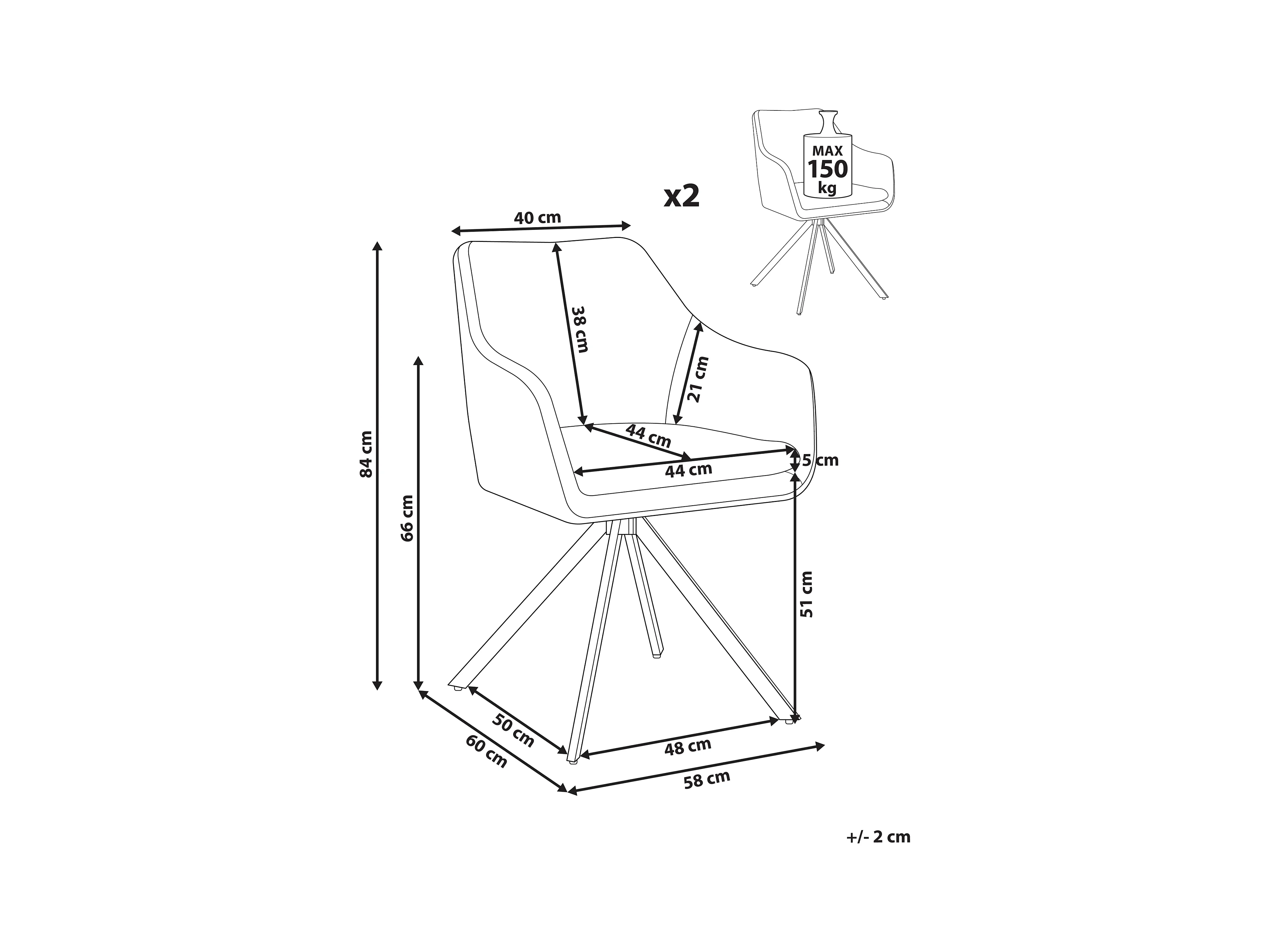 Lot de 2 chaises de salle à manger LUMAN – Tissu beige & pied en acier noir rotatif