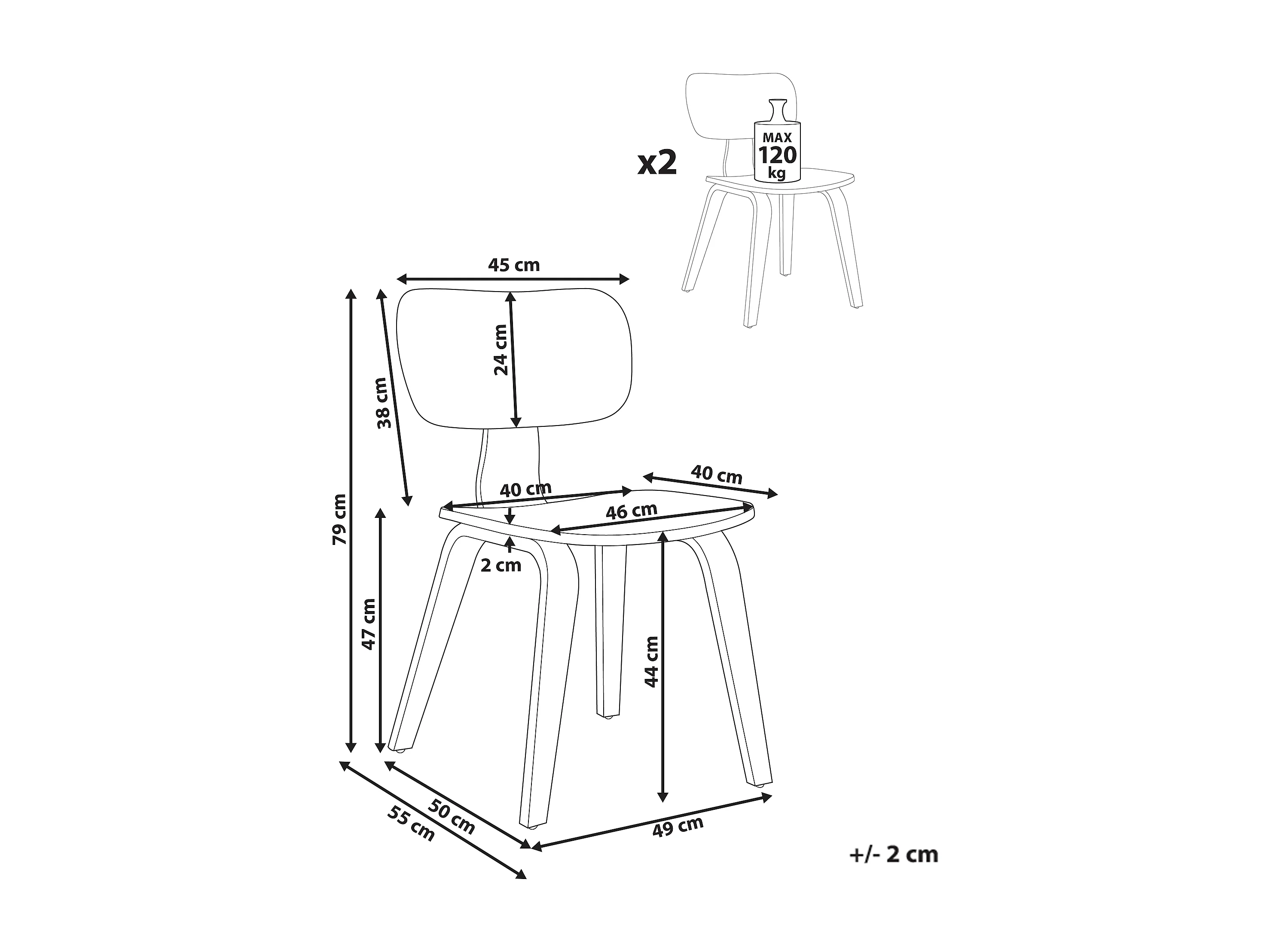 Lot de 2 chaises de salle à manger LUCINDA Bois Marron clair