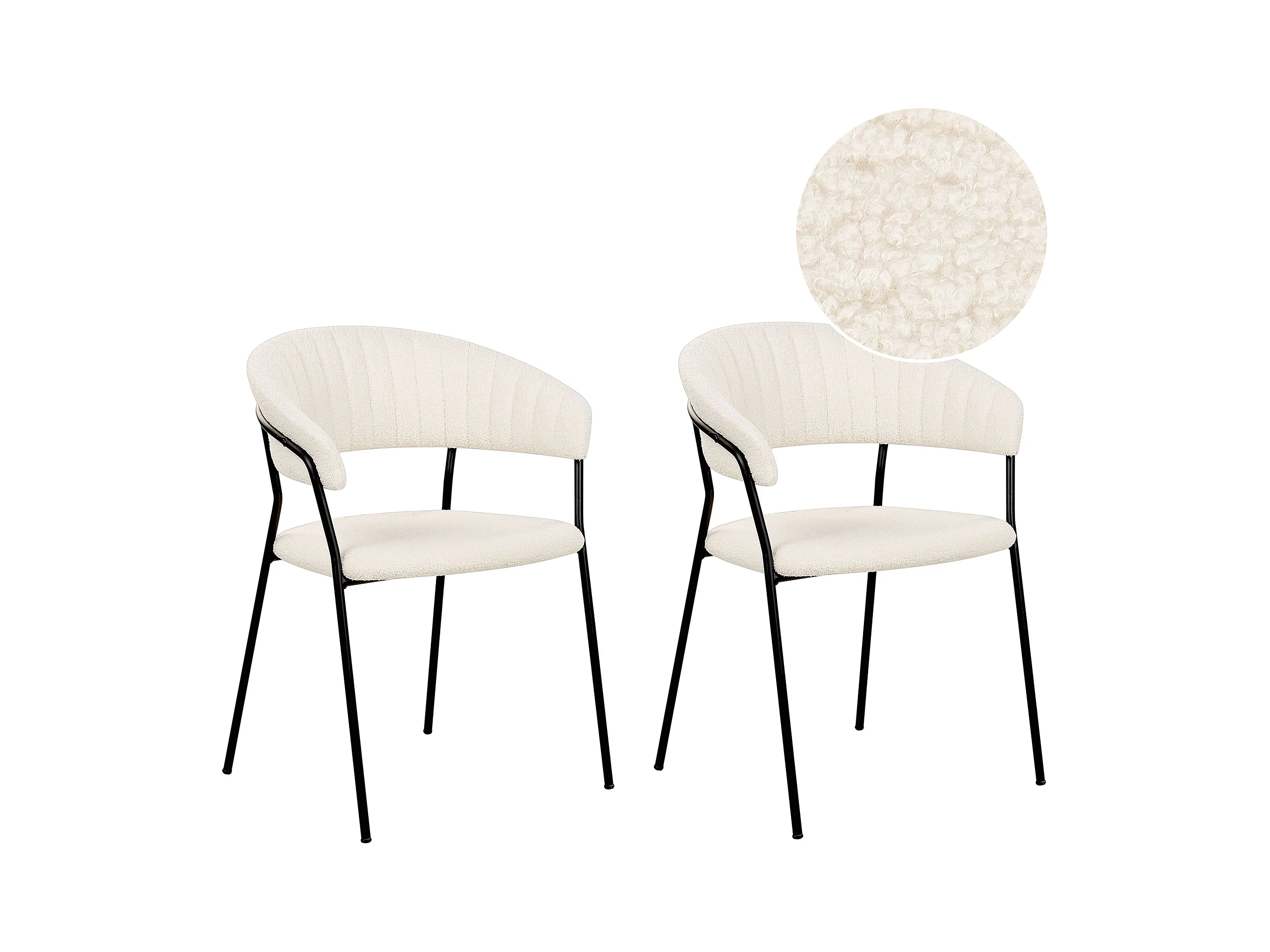 Lot de 2 chaises de salle à manger MARIPOSA Bouclé Blanc cassé