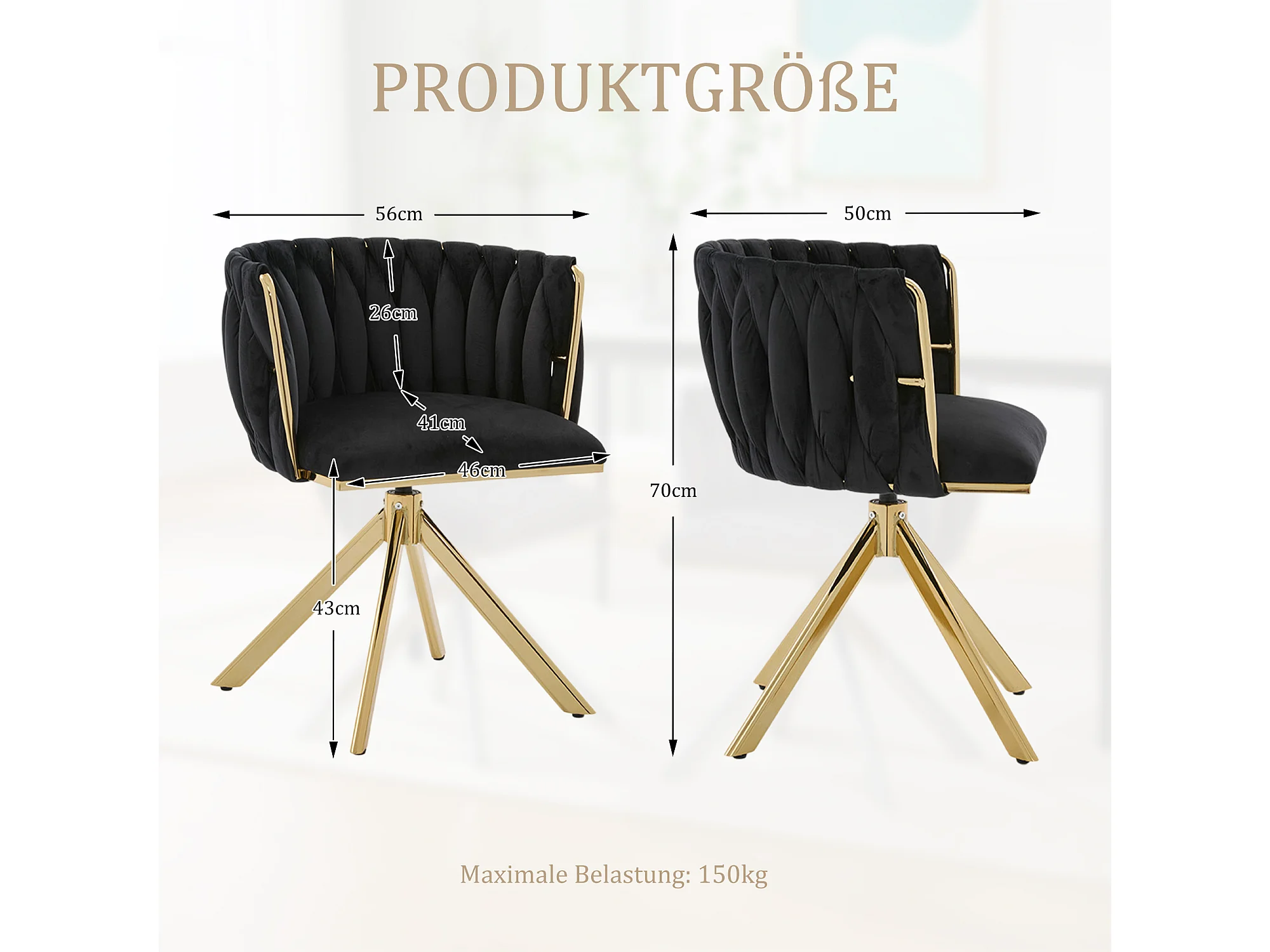 Lot de 2 chaises de salle à manger pivotantes à 180°, pour le salon, pied en métal doré, Velours noir