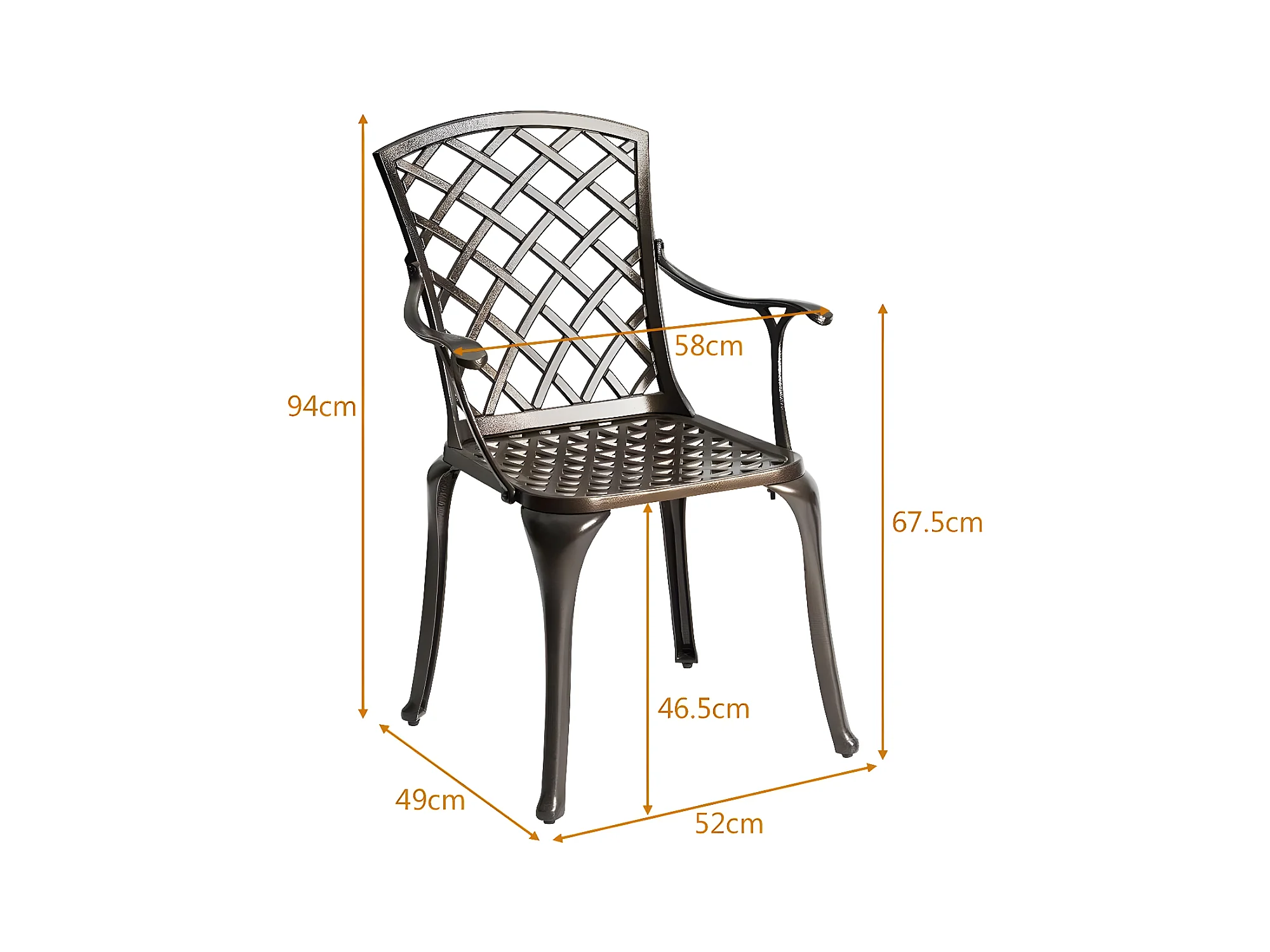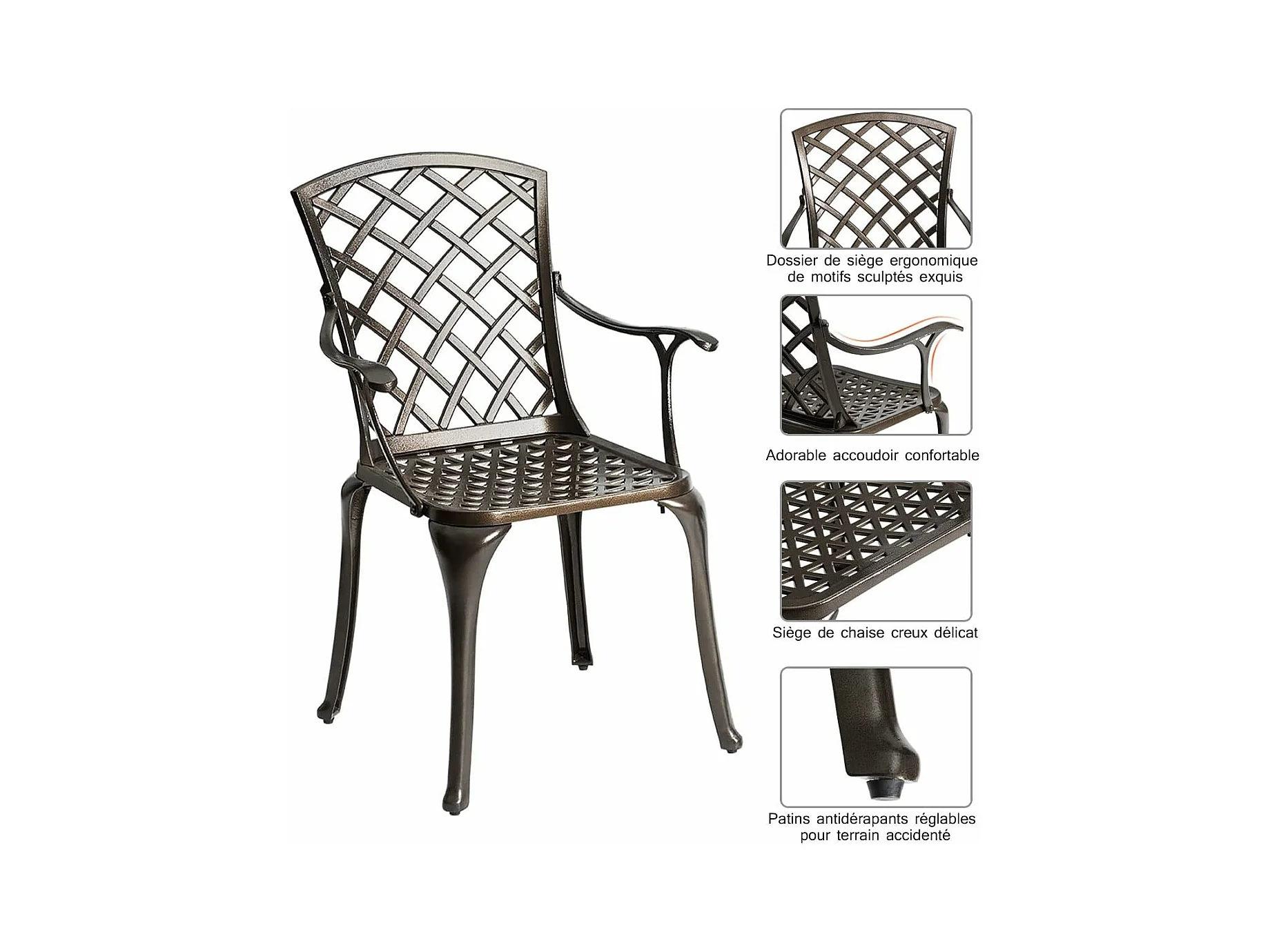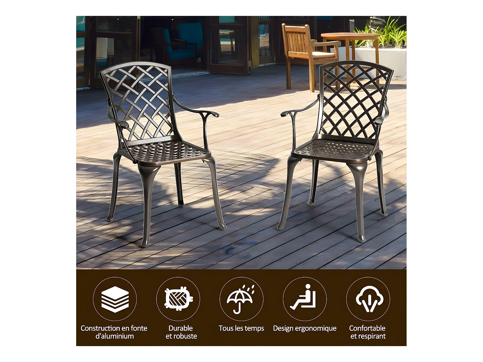 Lot de 2 chaises de salle à manger polyvalentes en fonte d'aluminium dossier/assise ajourés