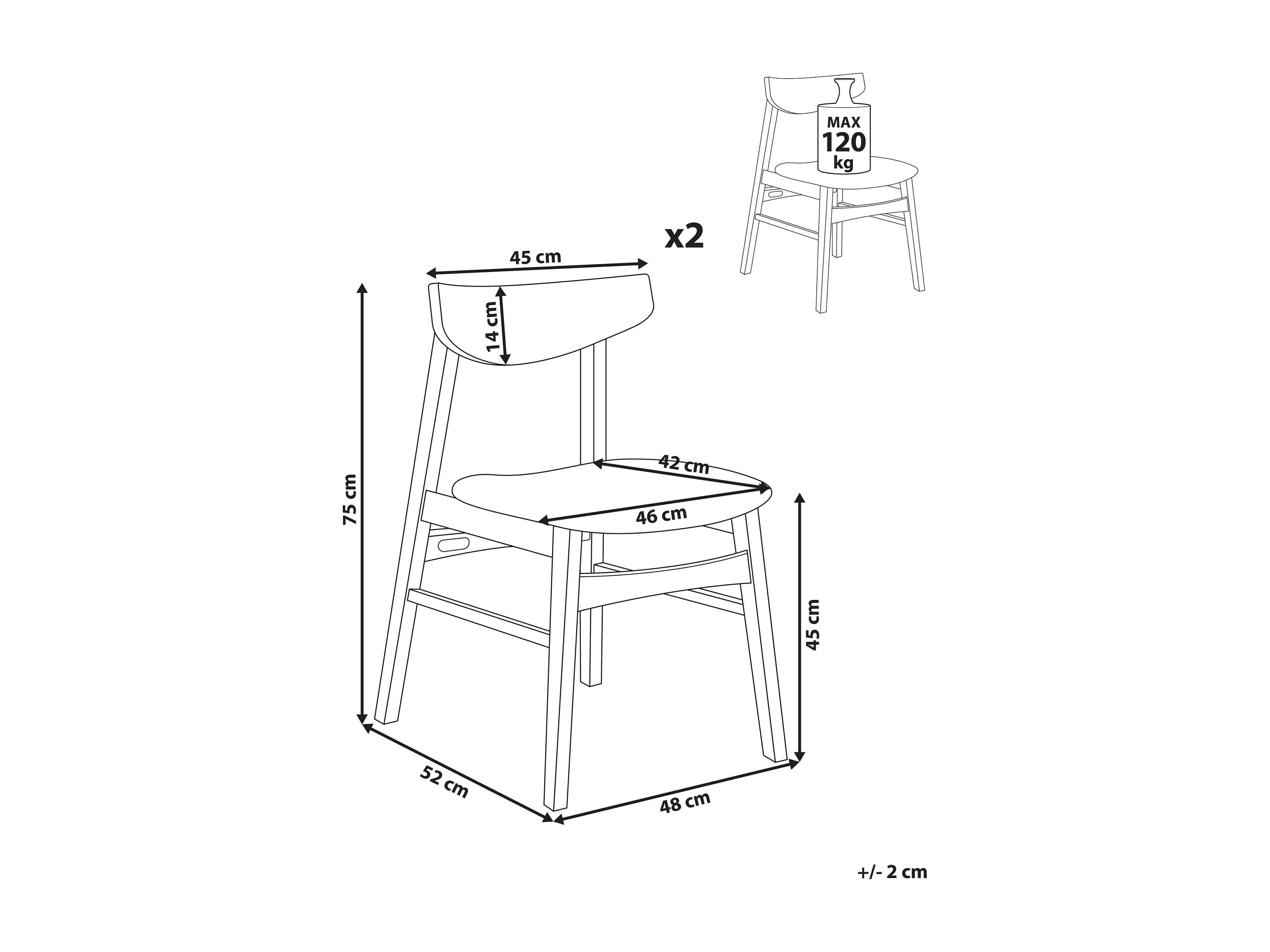 Lot de 2 chaises de salle à manger HOPE Bois Marron foncé/beige