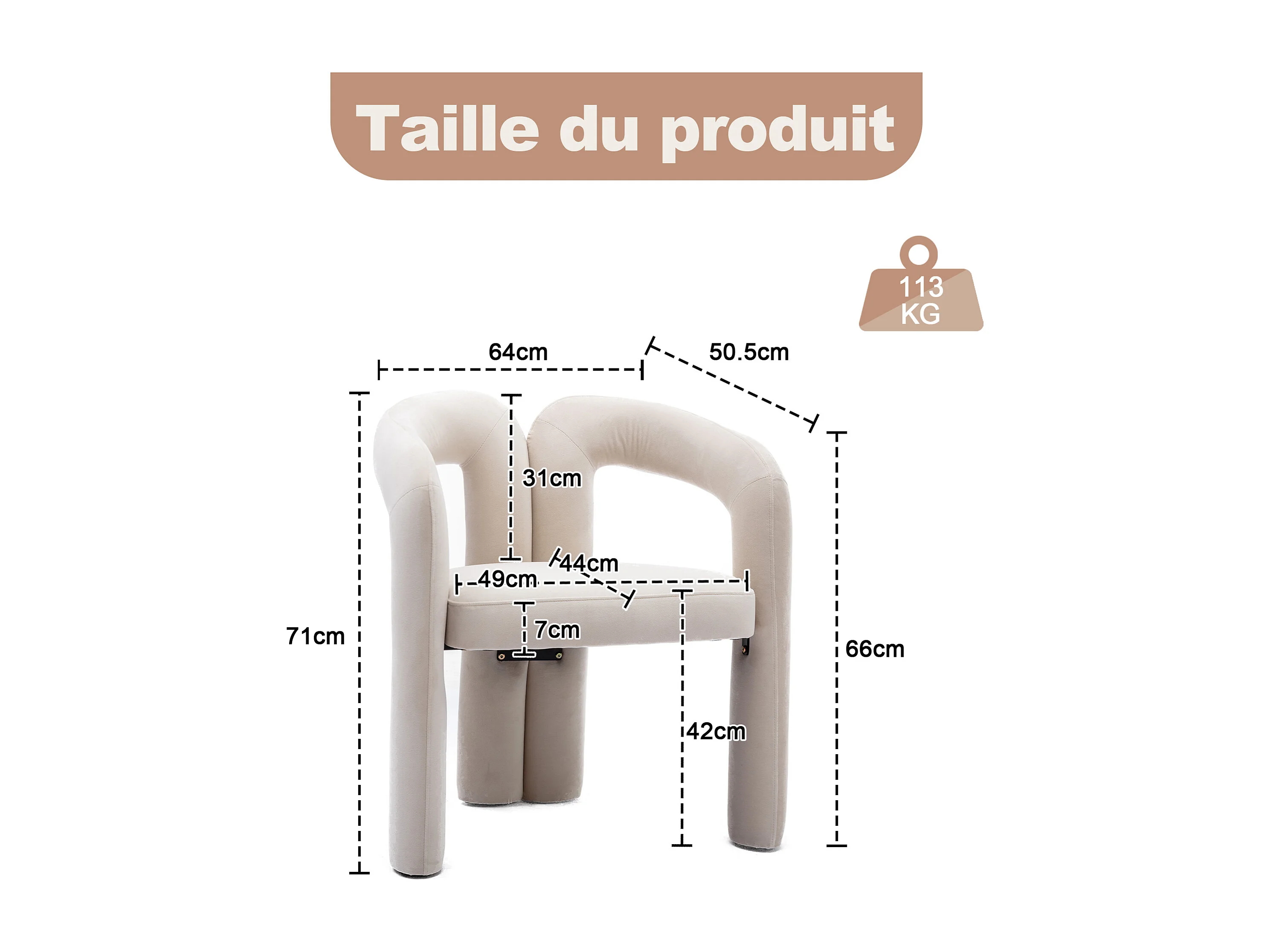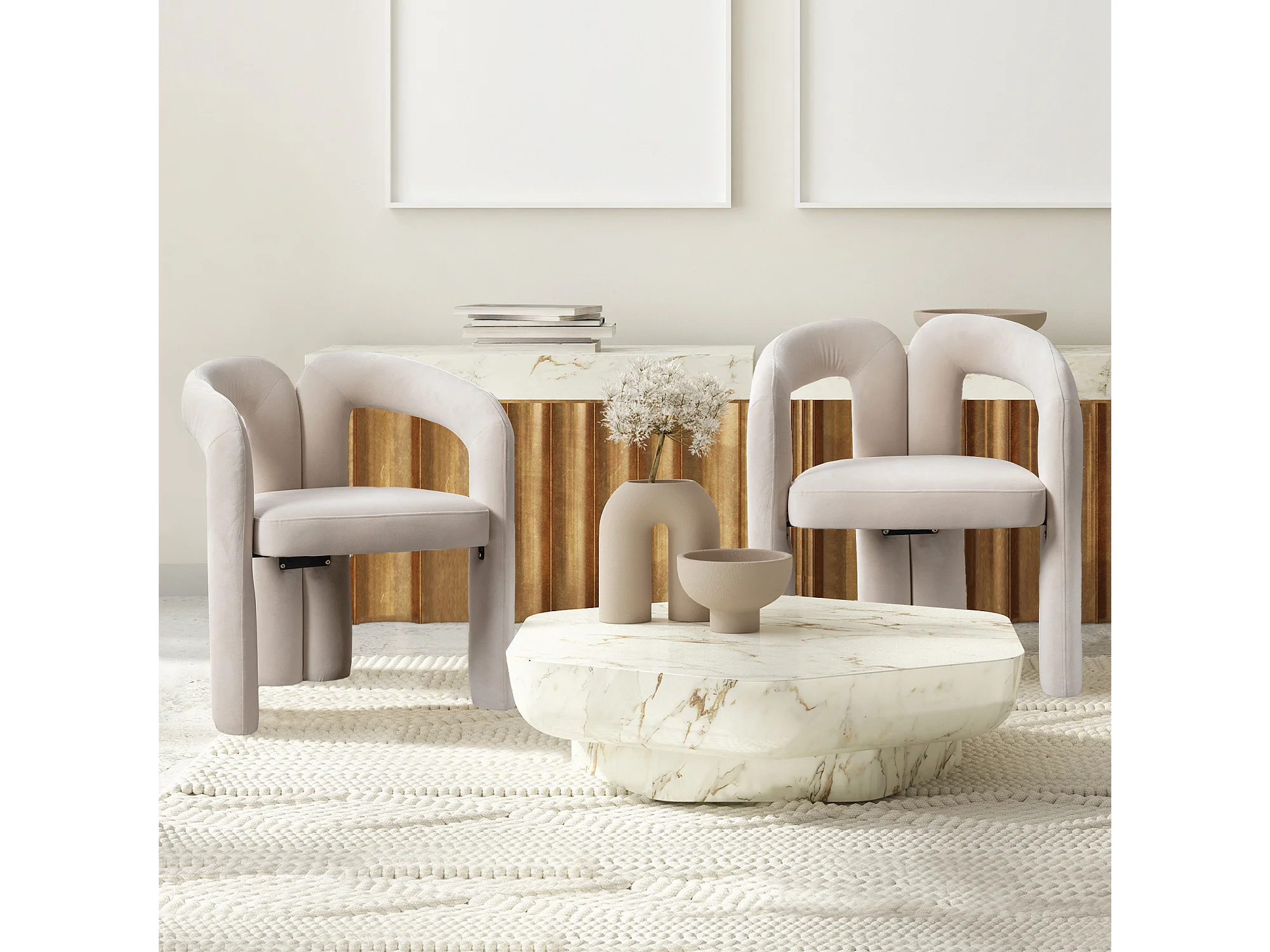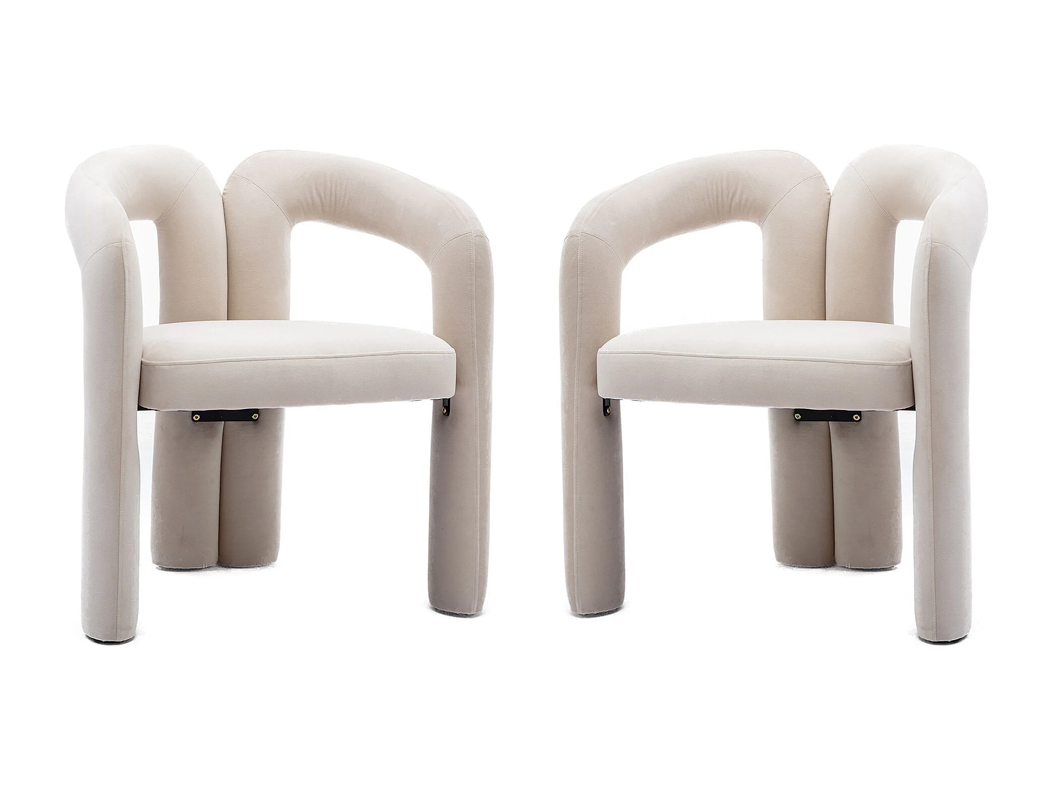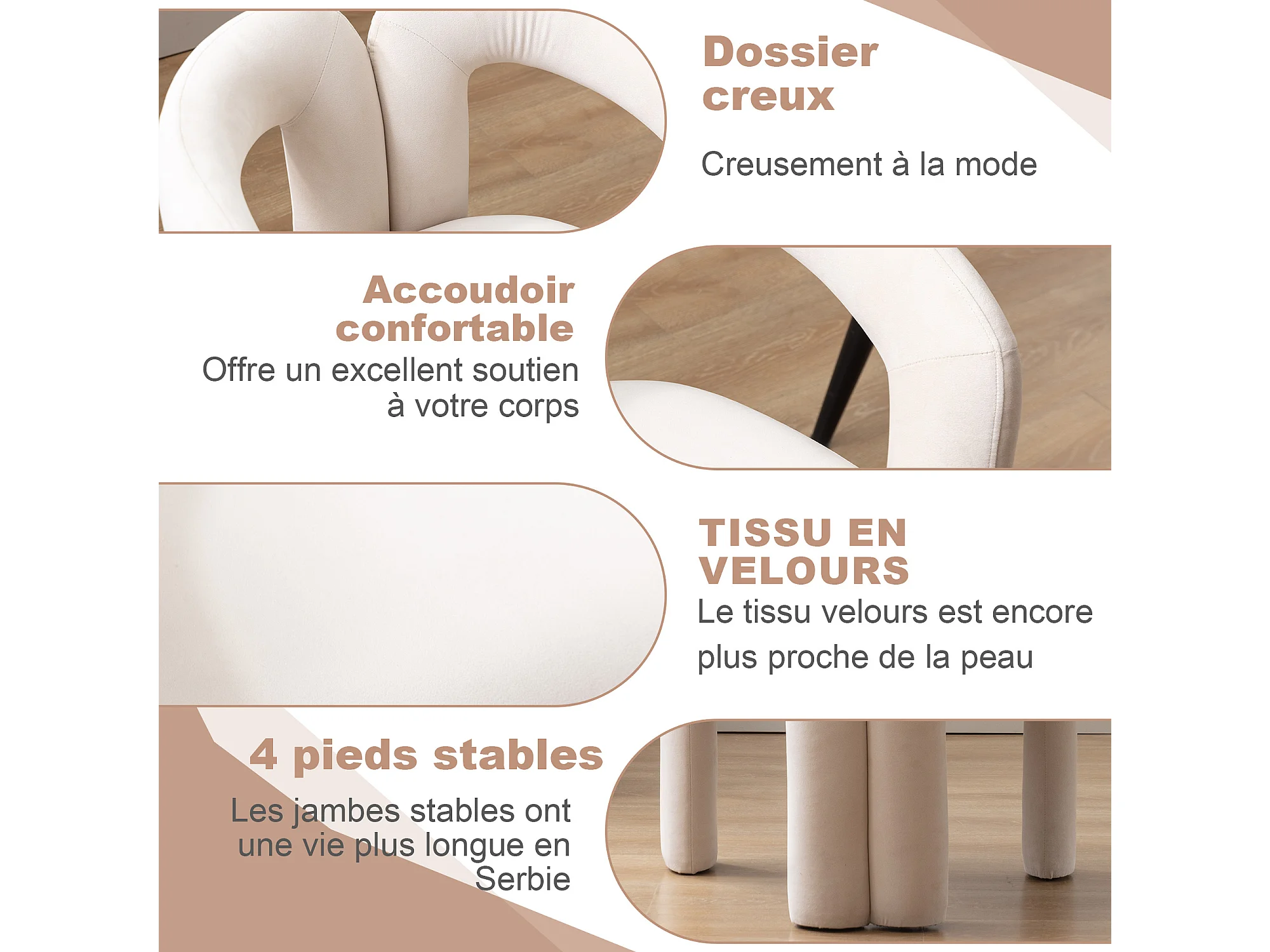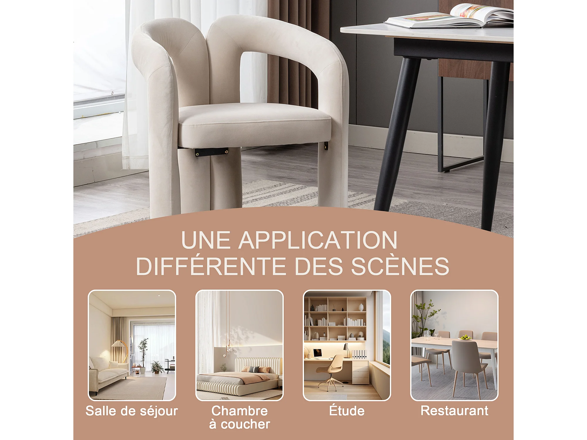 Lot de 2 chaises de salle à manger — velours beige — accoudoirs design à deux arcs - élégant et confortable