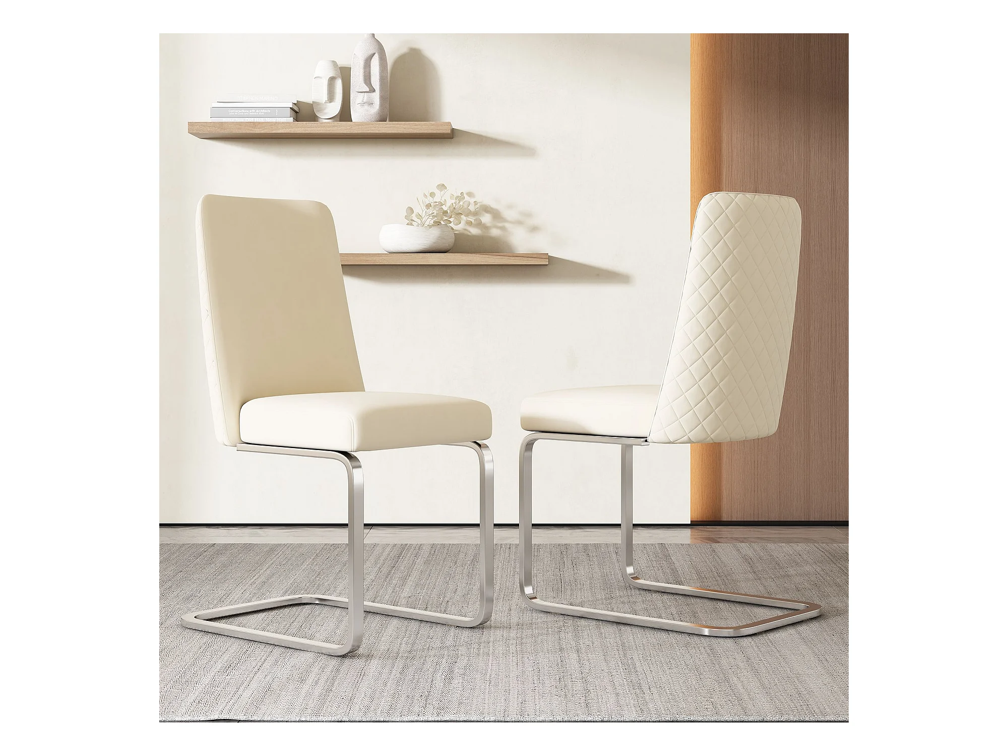 Lot de 2 chaises de salle à manger, velours beige, avec dossier matelassé, pieds argentés - design moderne