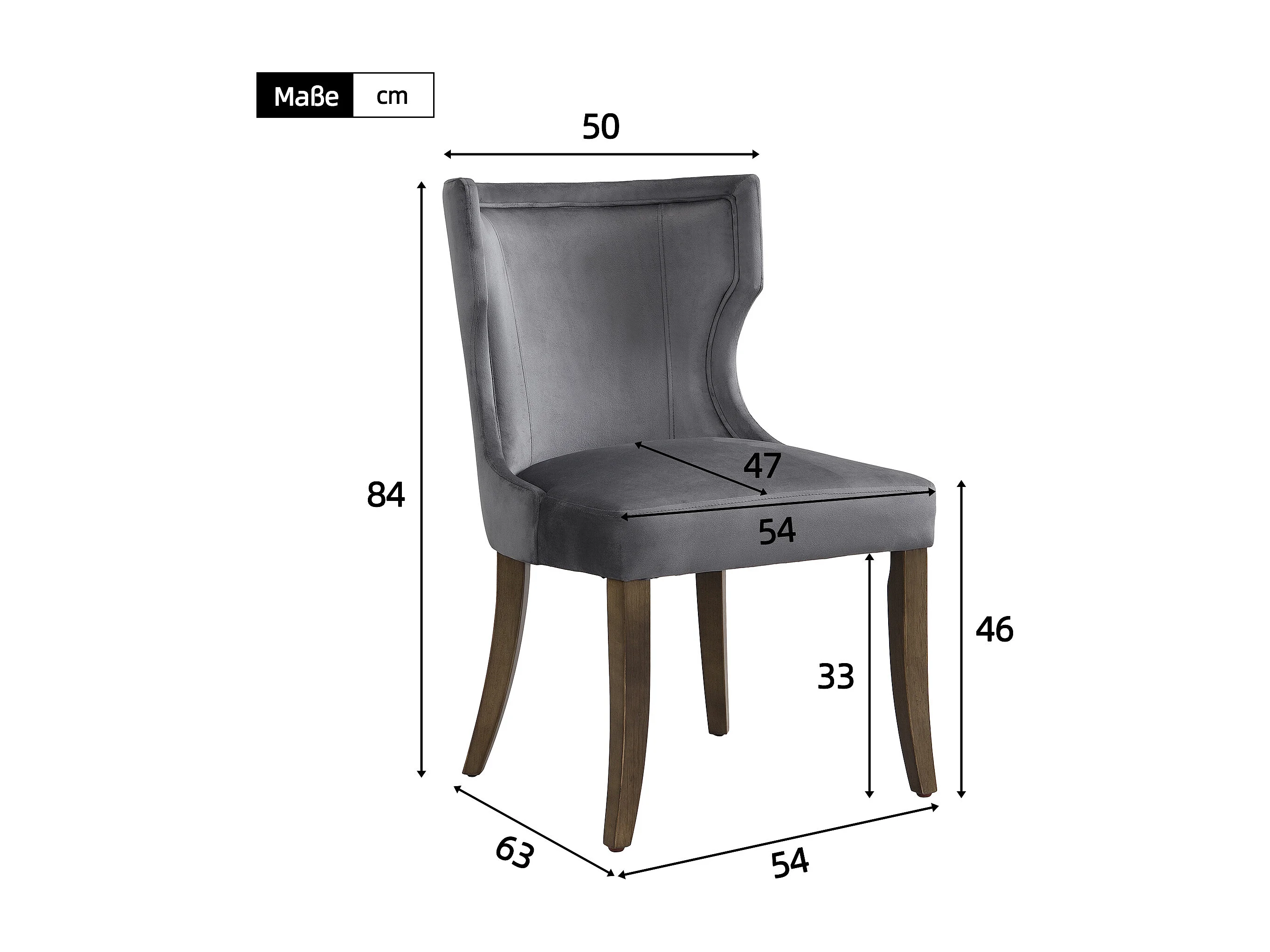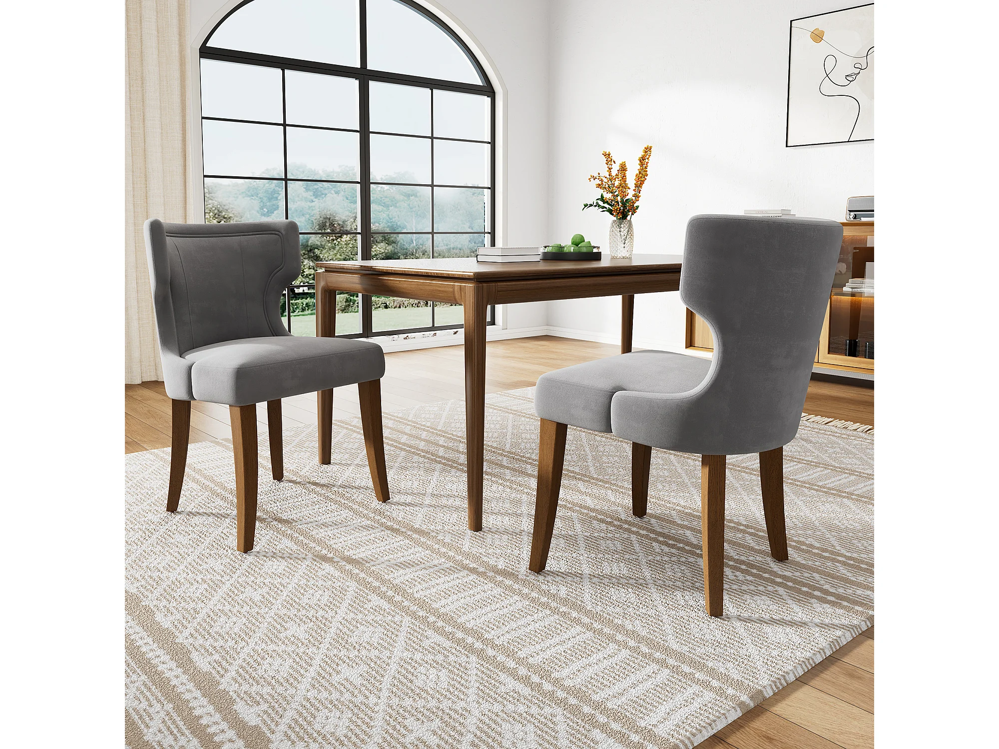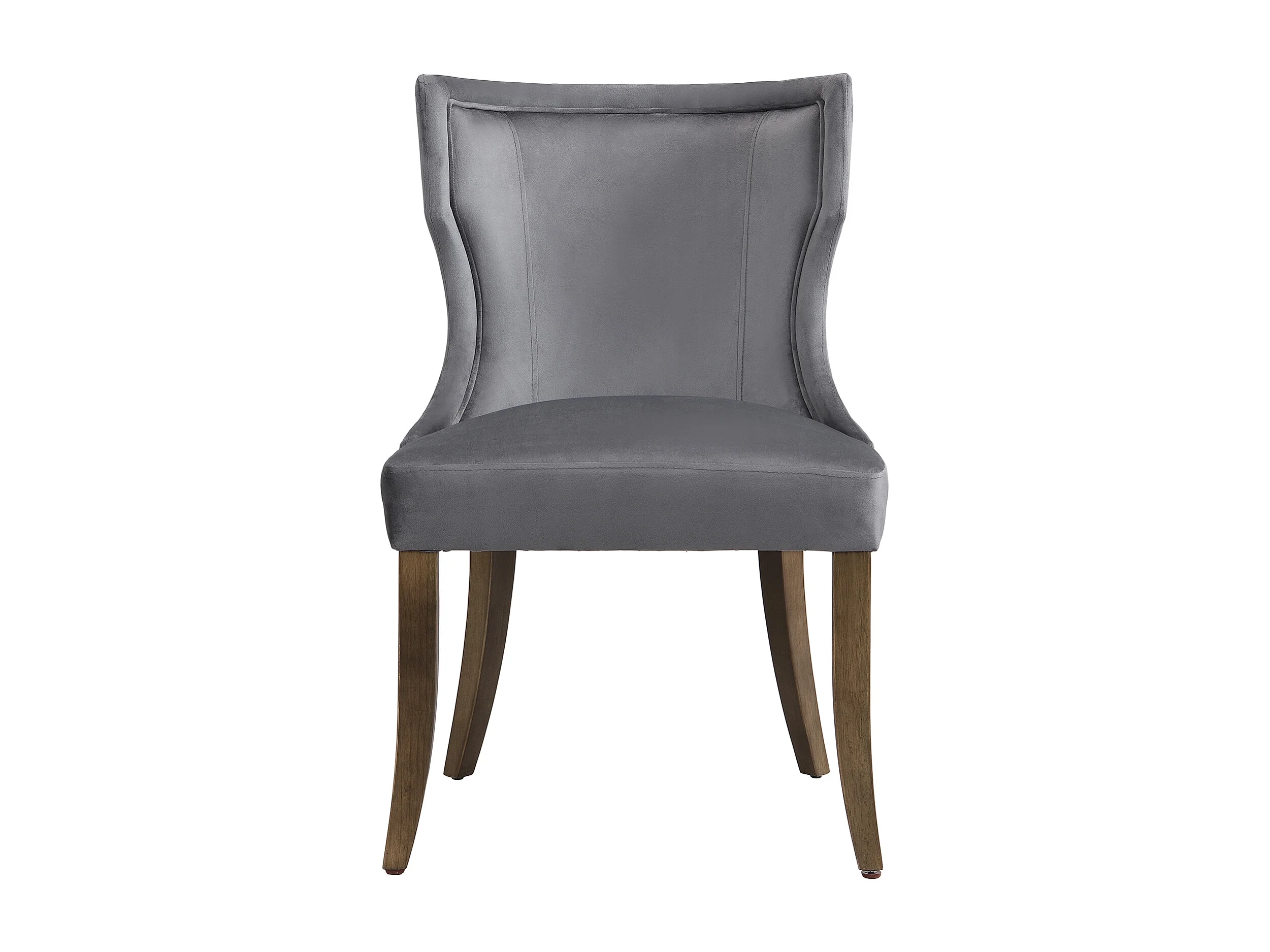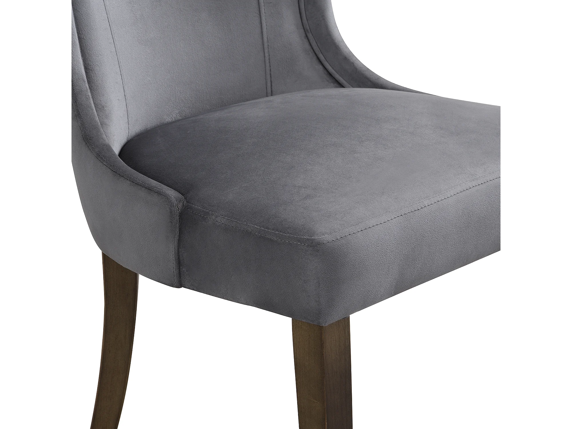 Lot de 2 chaises de cuisine, tissu en velours, pieds en bois brun, gris
