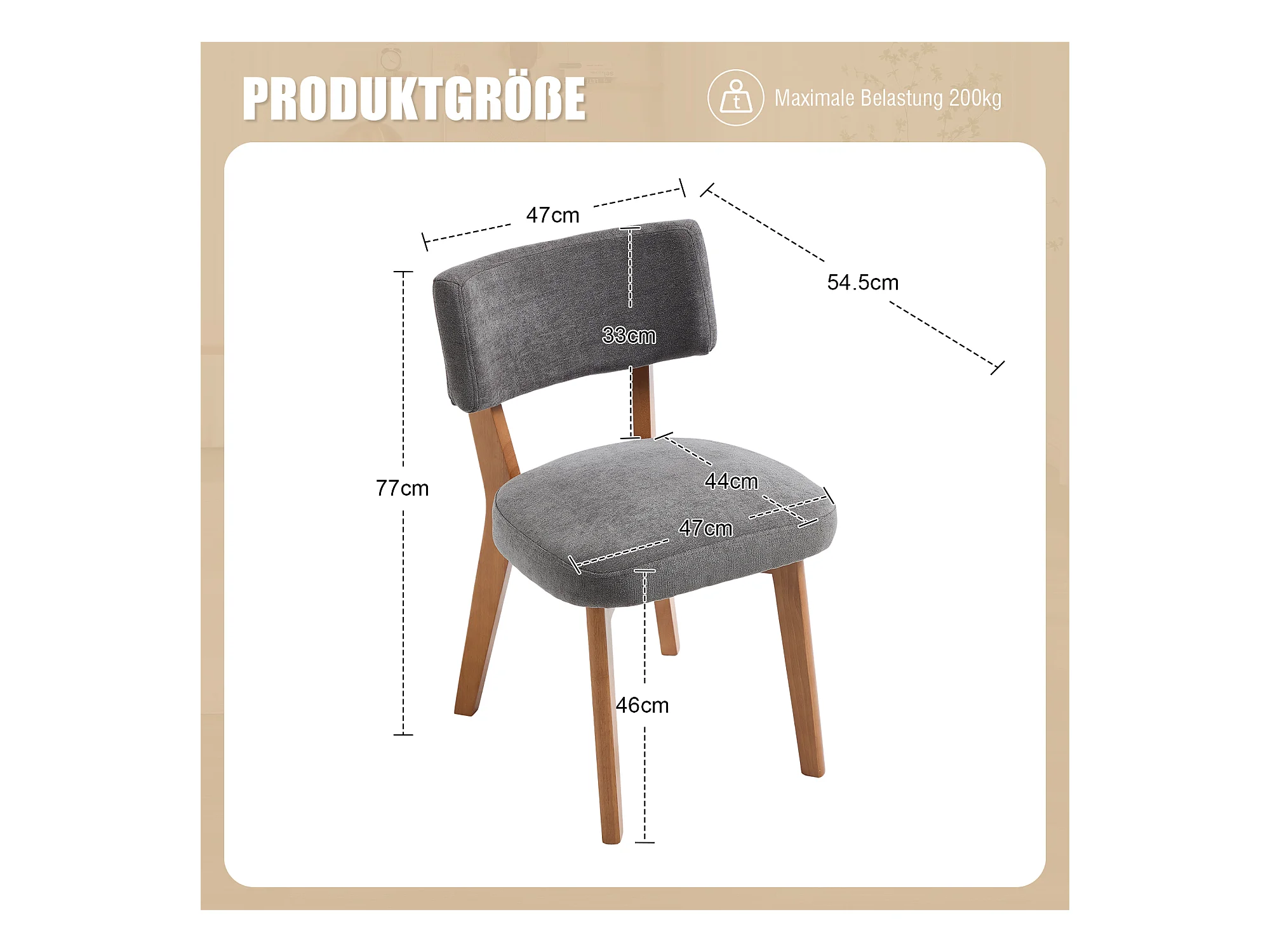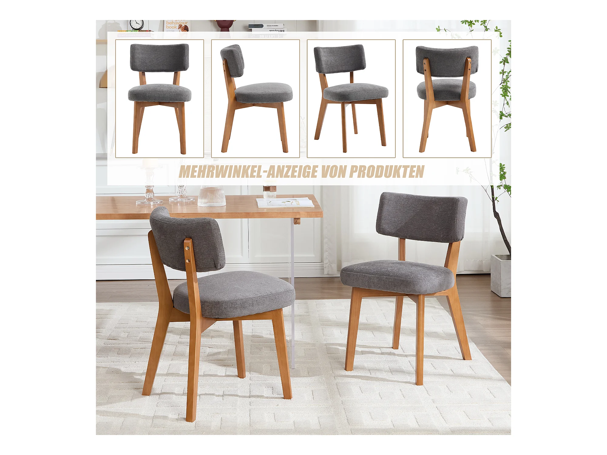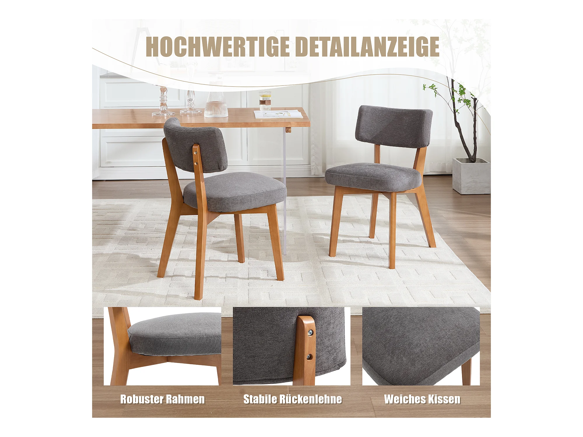 Lot de 2 chaises de cuisine avec accoudoirs, tissu en lin, pieds en bois naturel clair, gris