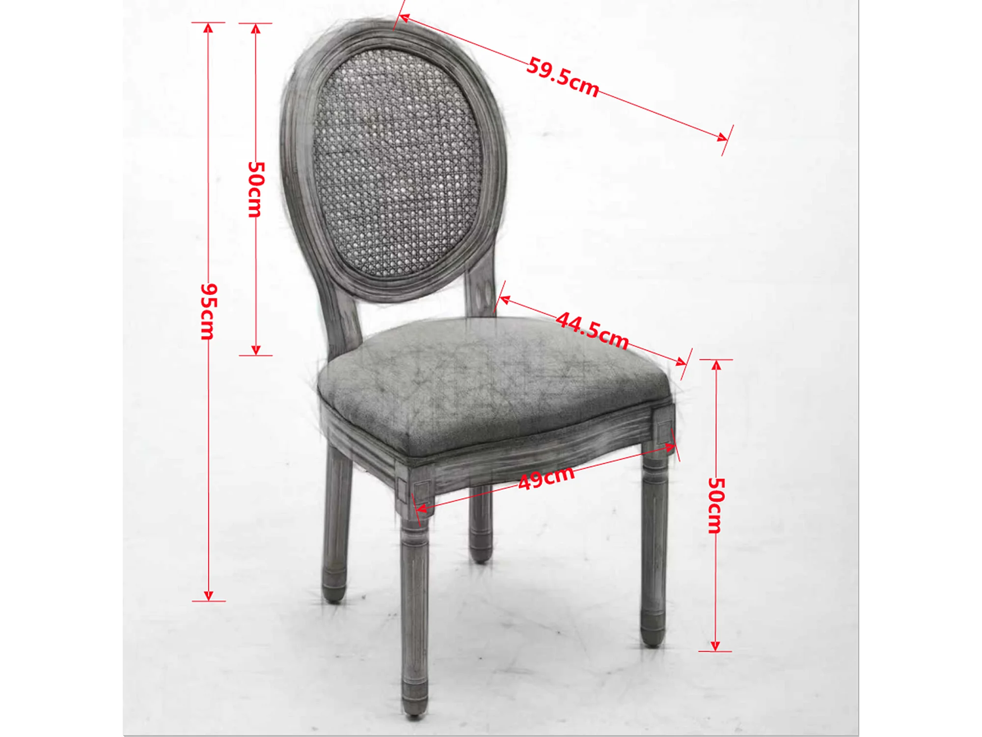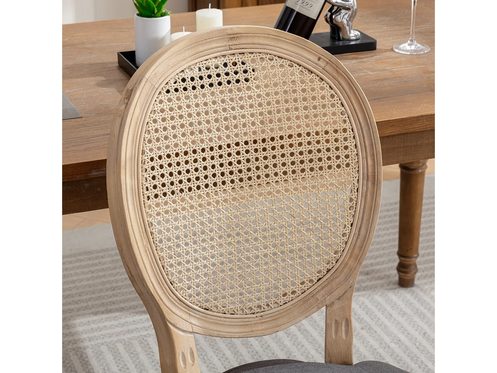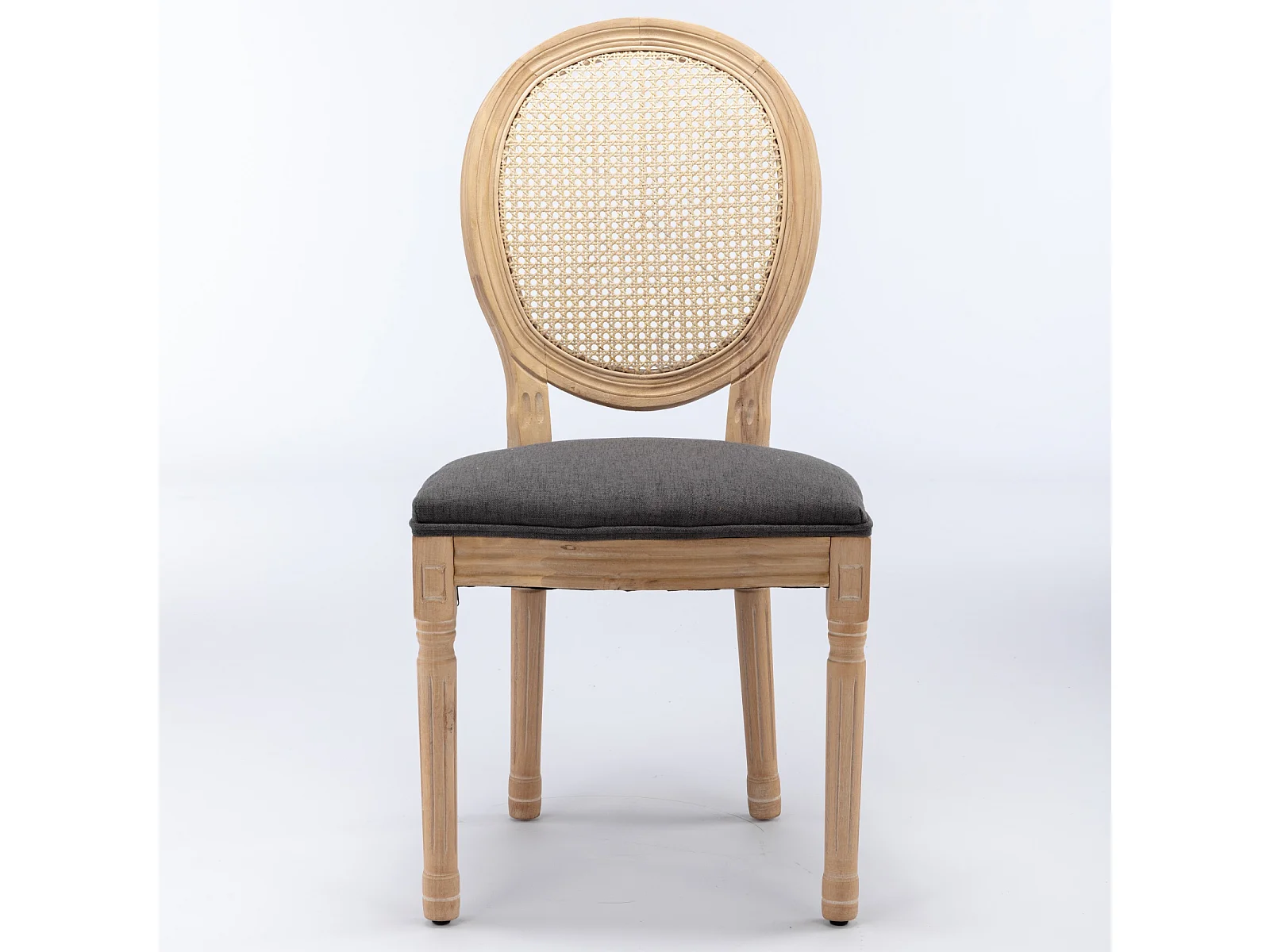 Lot de 2 chaises en bois et tissu lin - Dossier en rotin - Gris et naturel clair