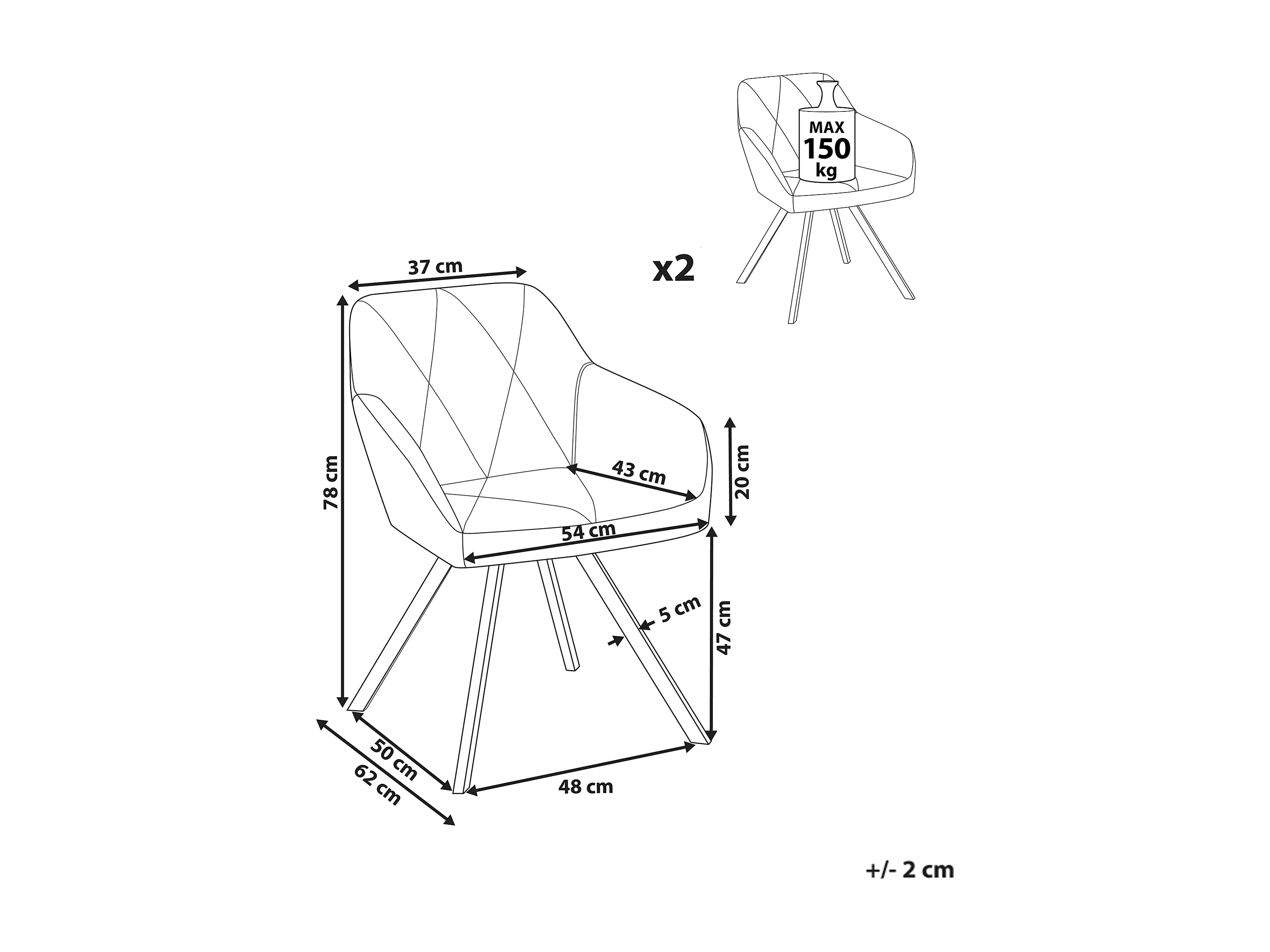 Lot de 2 chaises de salle à manger MONEE Tissu Bleu azur