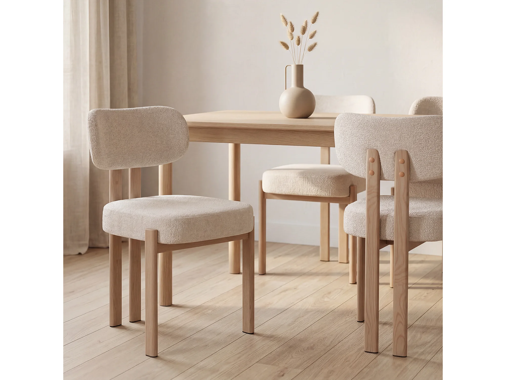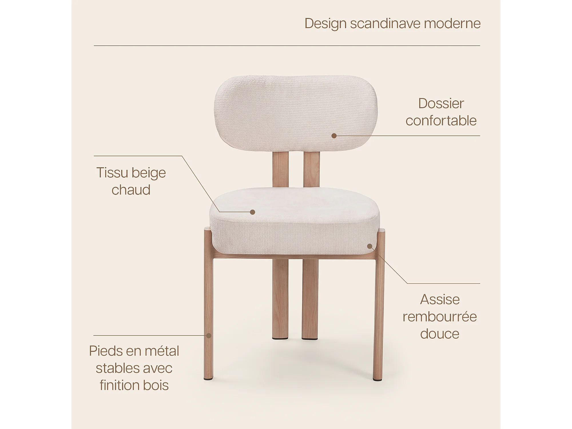 Lot de 2 chaises salle à manger - Tissu beige - Pieds effet bois chêne naturel clair - NOA