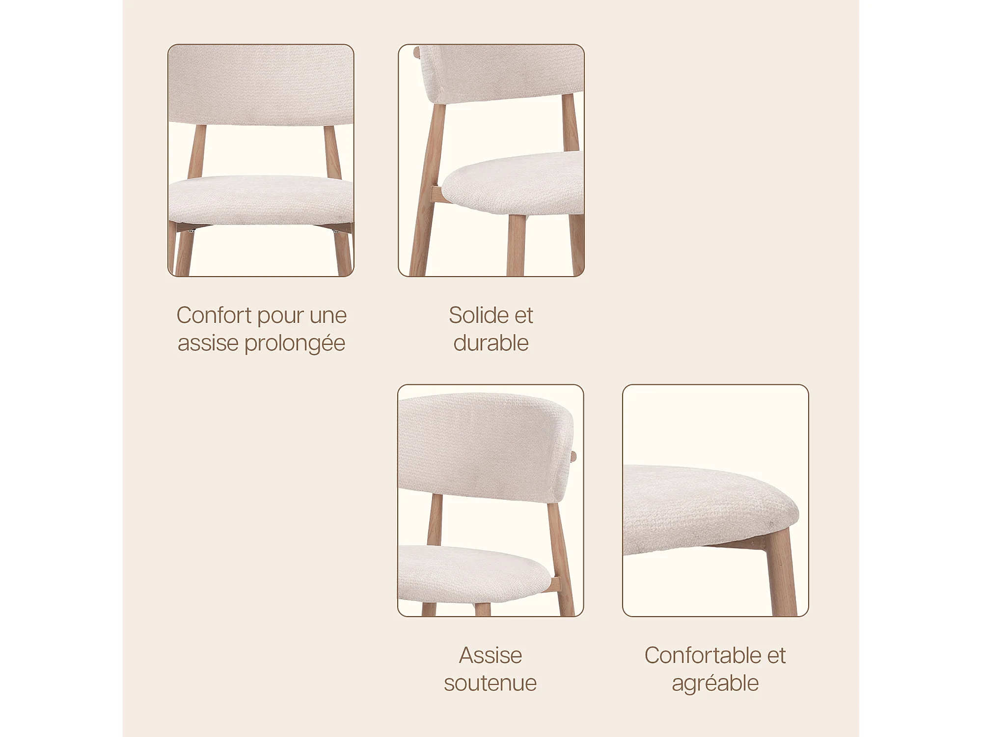 Lot de 2 chaises salle à manger - Tissu beige - Pieds effet bois chêne naturel clair - LEA