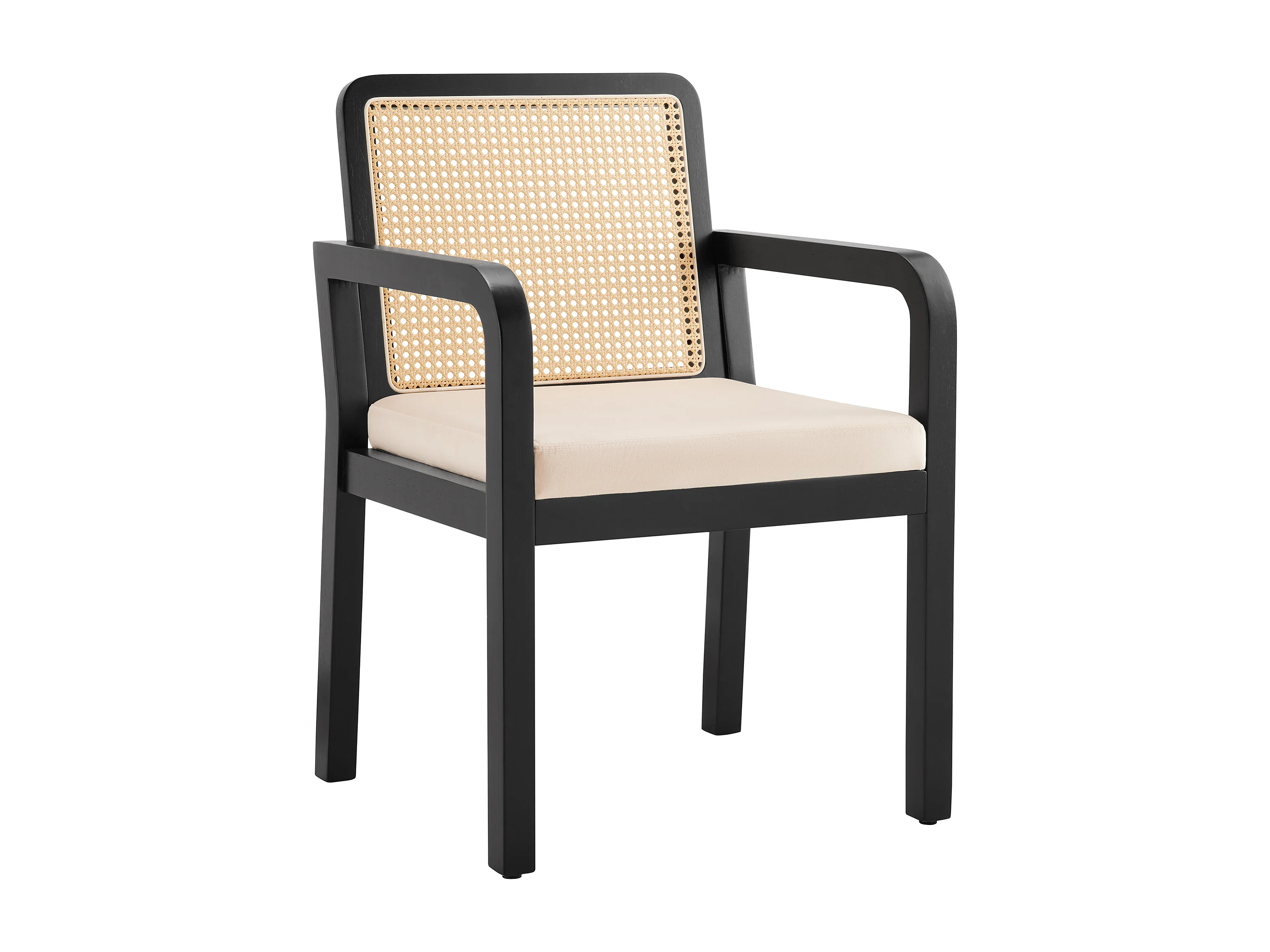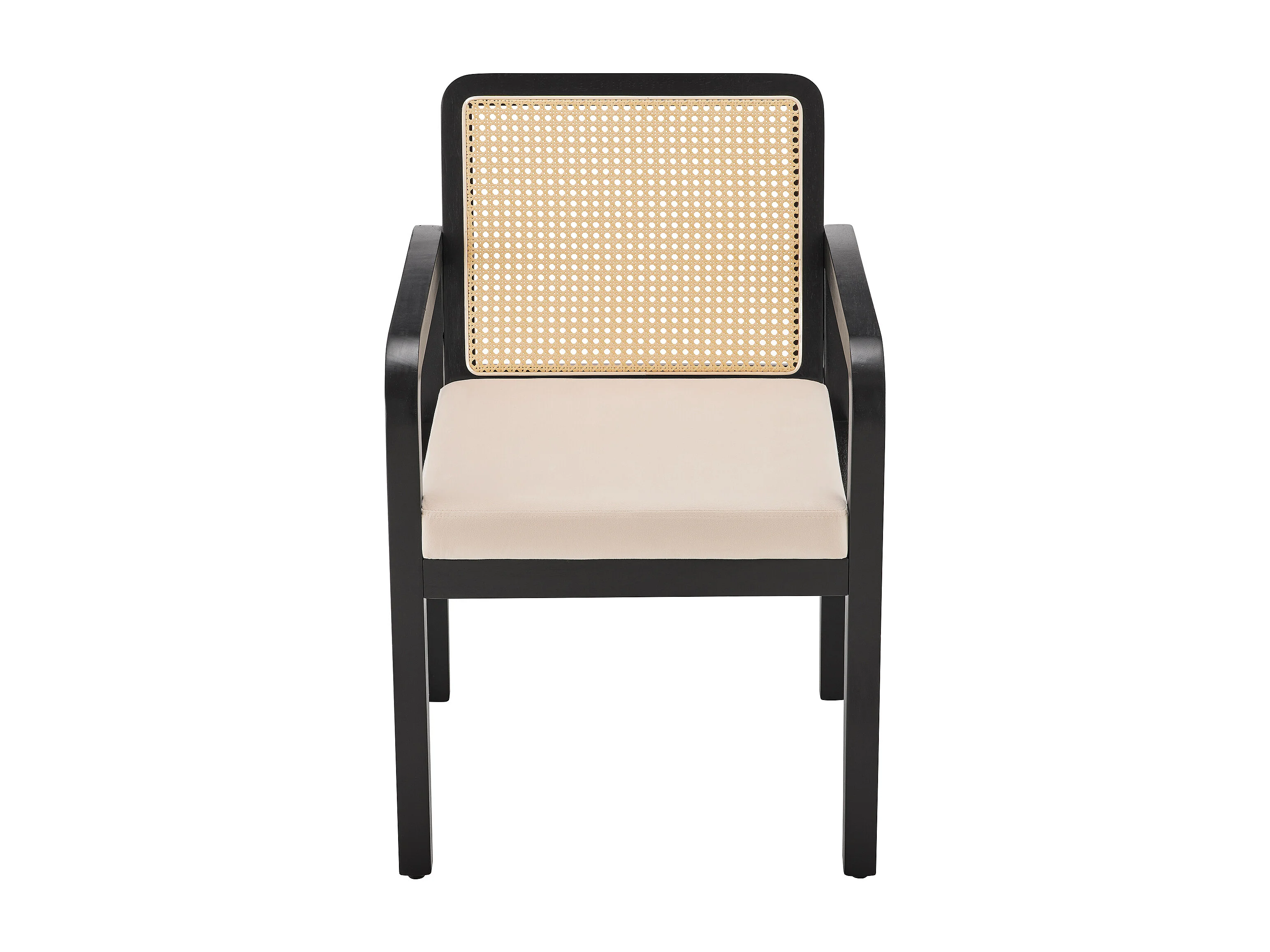 Lot de 2 chaises en velours avec dossier en rotin - Noir et naturel clair