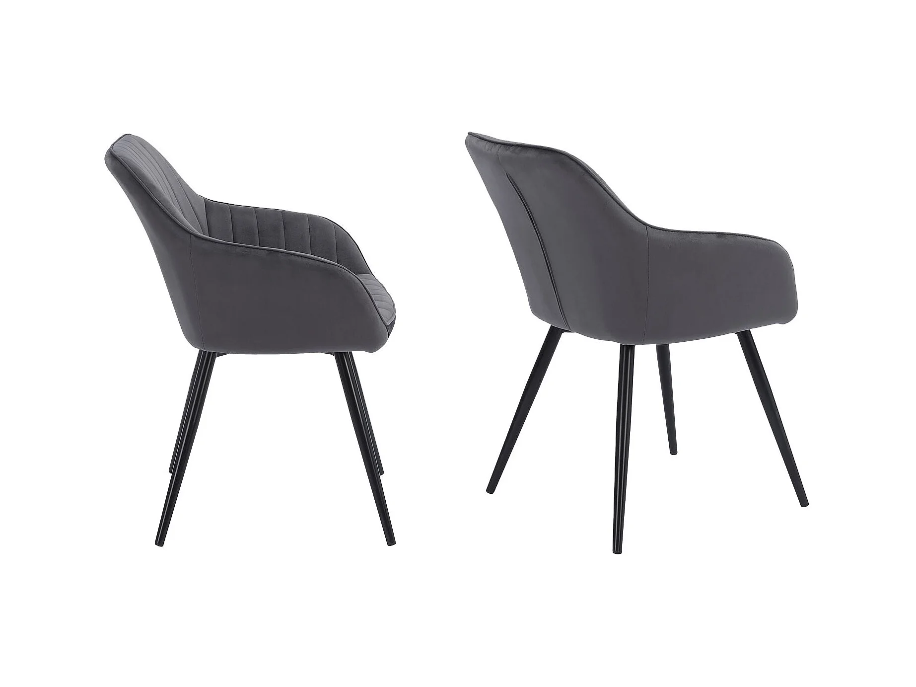 Lot de 2 chaises avec accoudoirs - Velours - Gris foncé - Cassis
