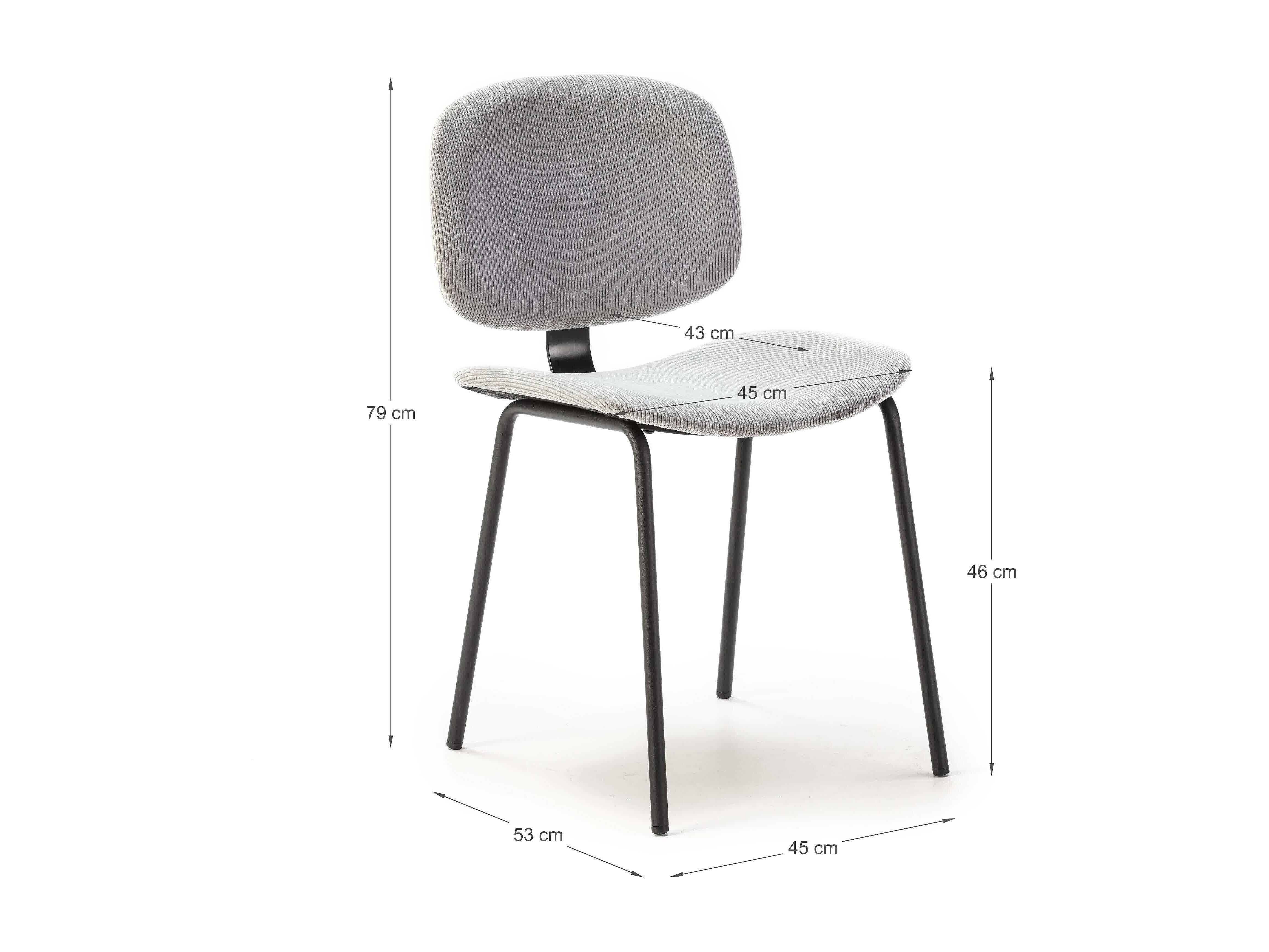 Lot de 2 chaises en velours côtelé et métal noir 45x53 h79 cm