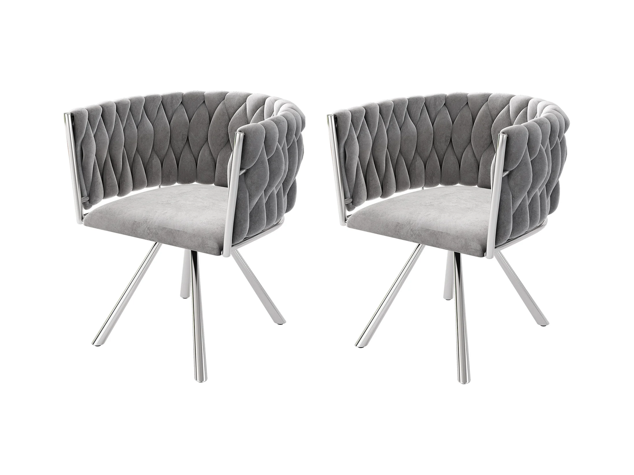 Lot de 2 chaises en velours gris, dossier rembourré, pieds en métal argenté - pour salle à manger et salon