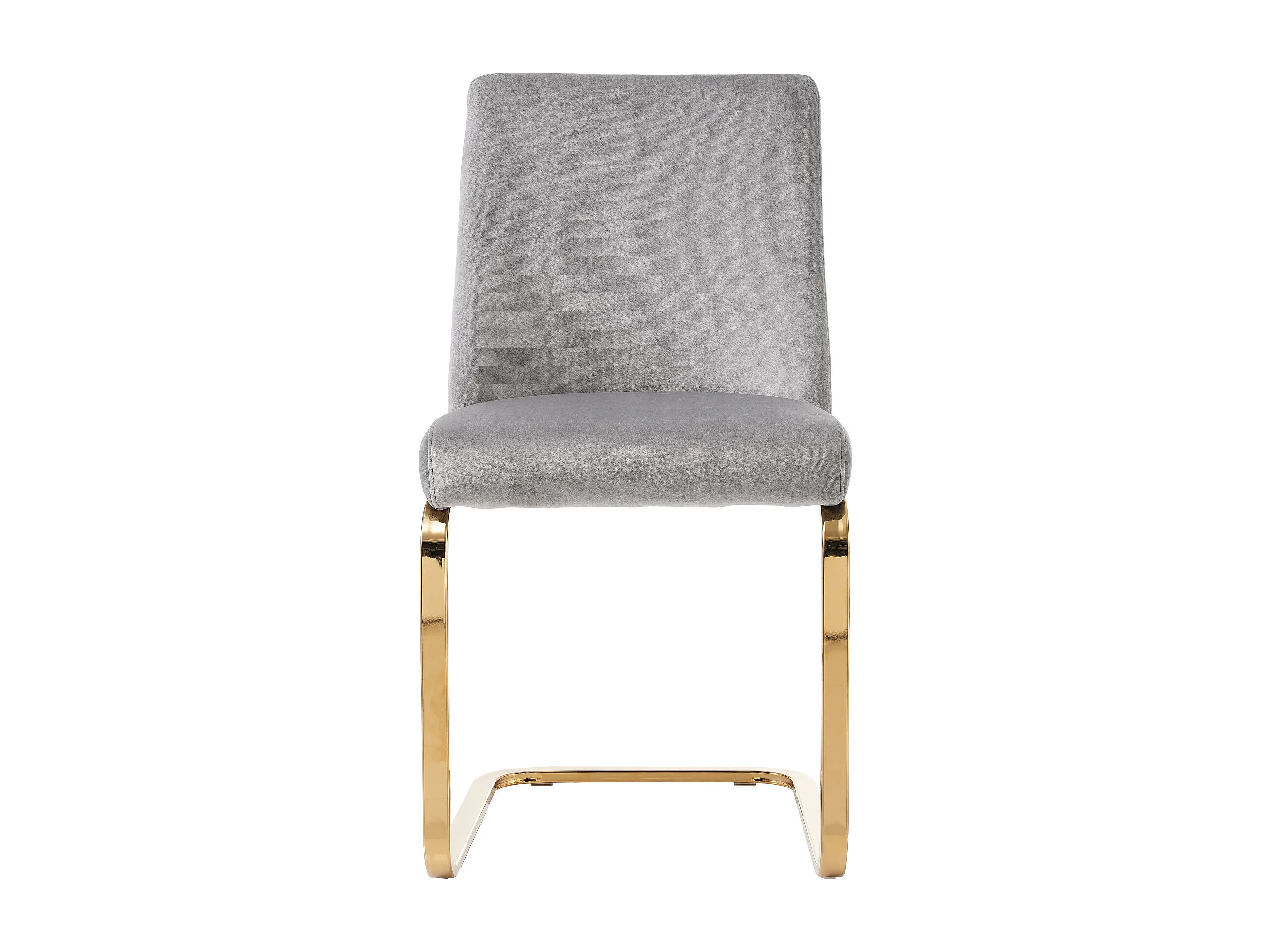 Lot de 2 chaises en velours gris - Pieds en métal doré - Dossier à motif losanges