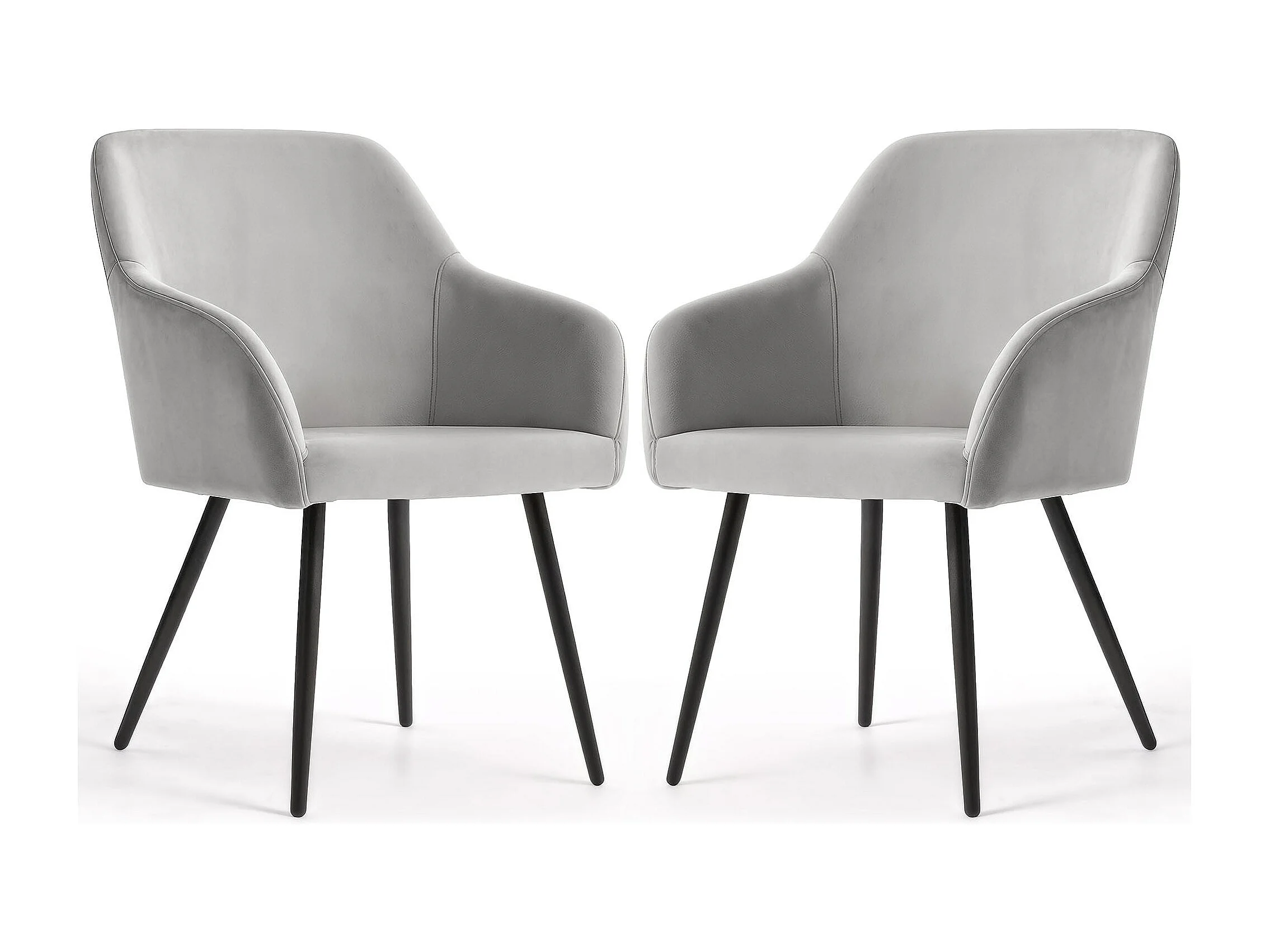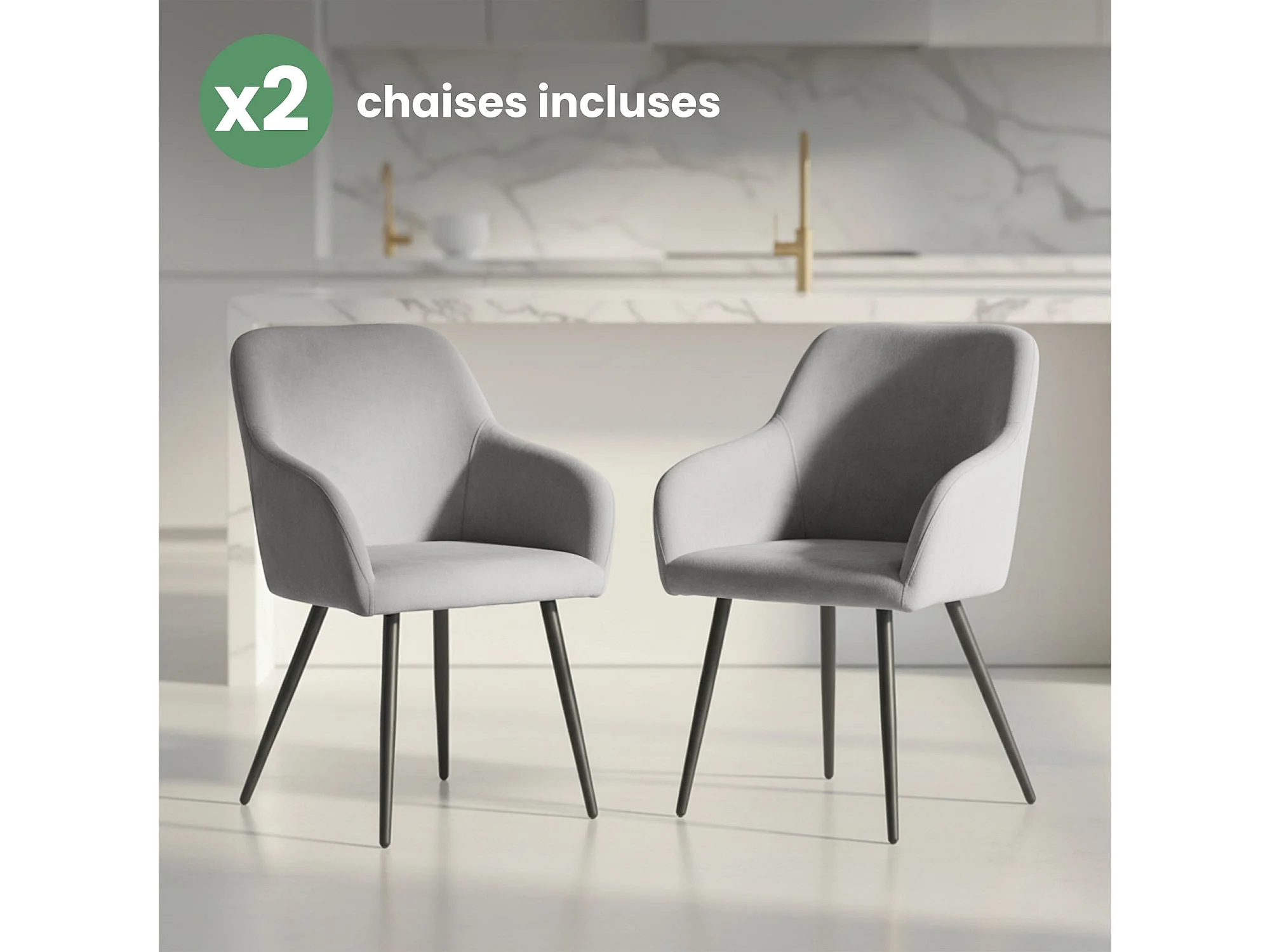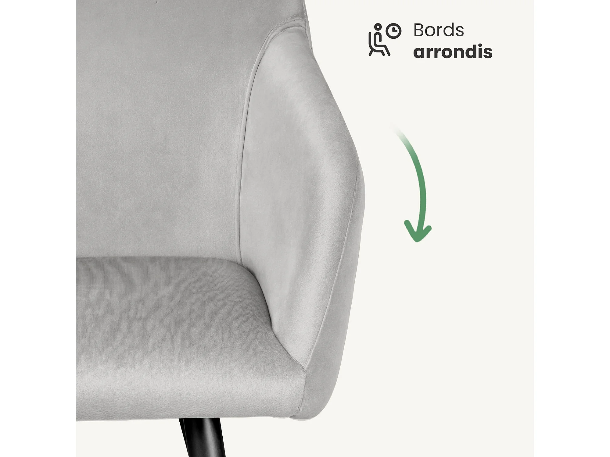 Lot de 2 Chaises en velours lisses ESTELLE Gris pieds noirs