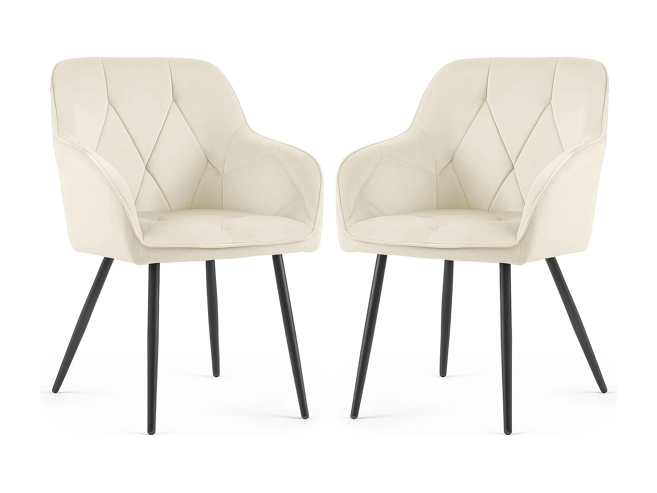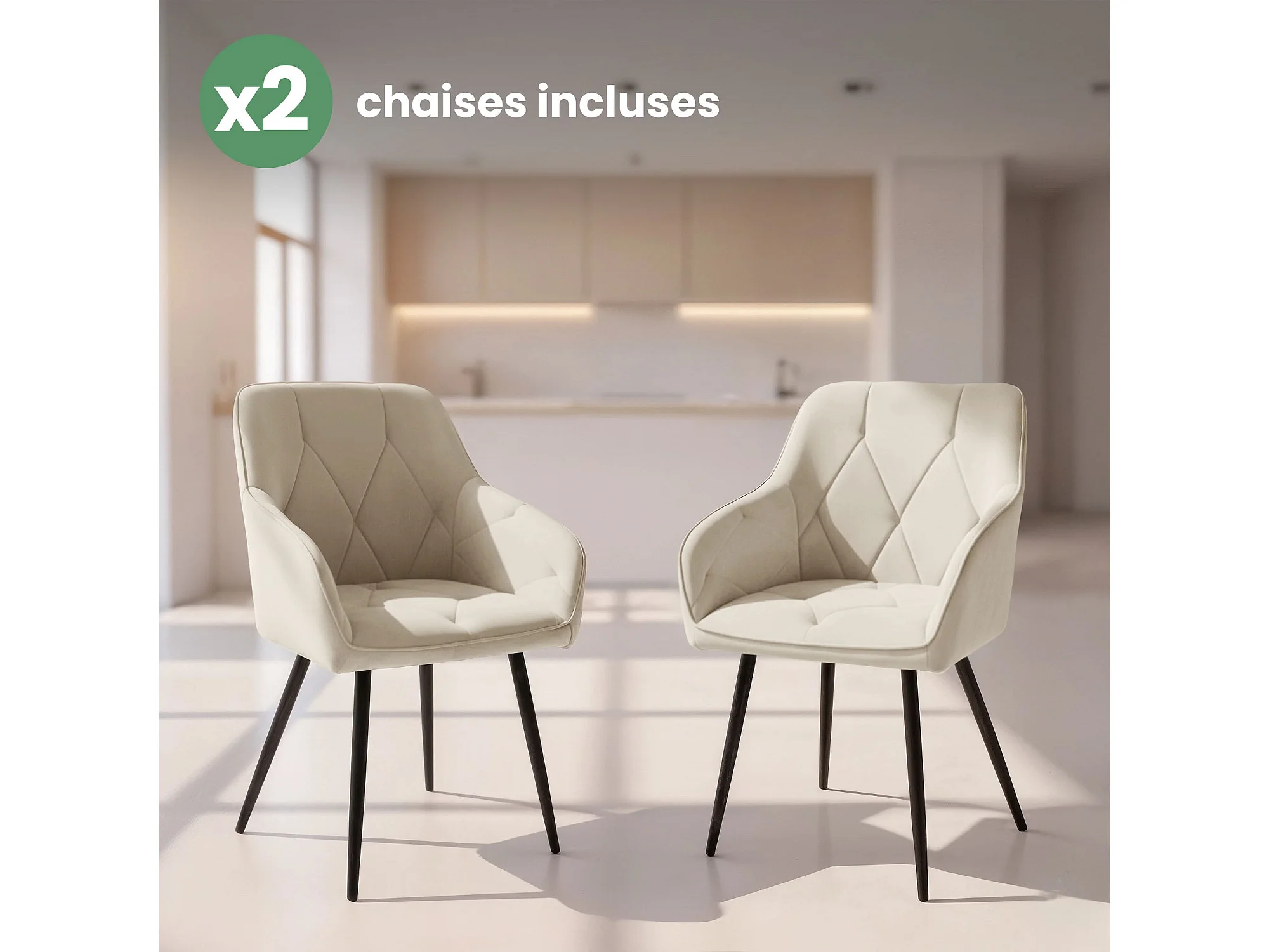 Lot de 2 Chaises en velours matelassées DIAMANTE Crème pieds noirs